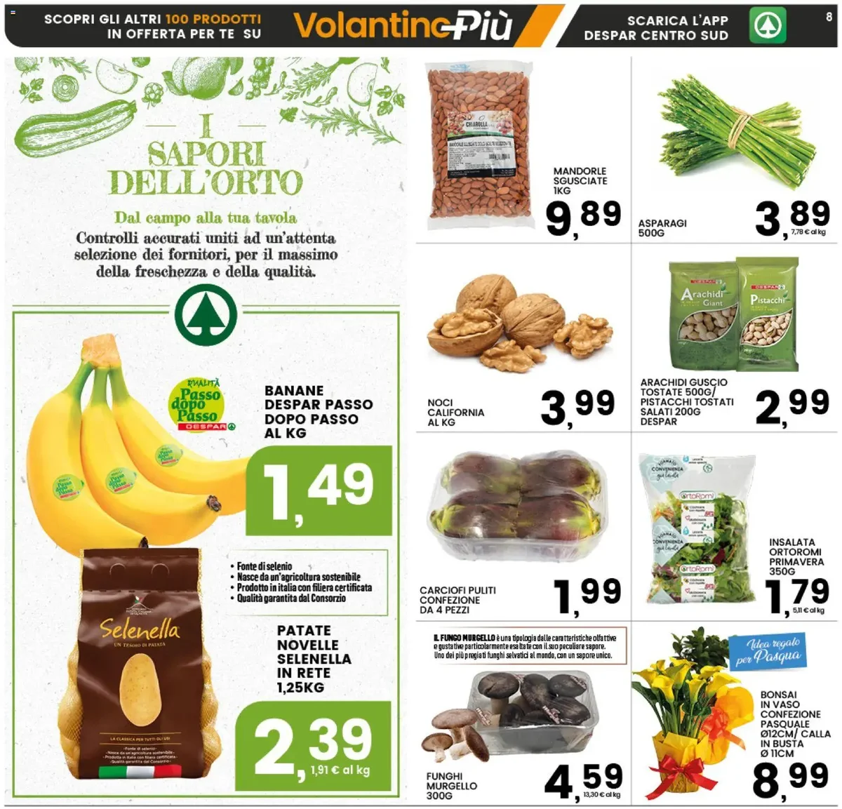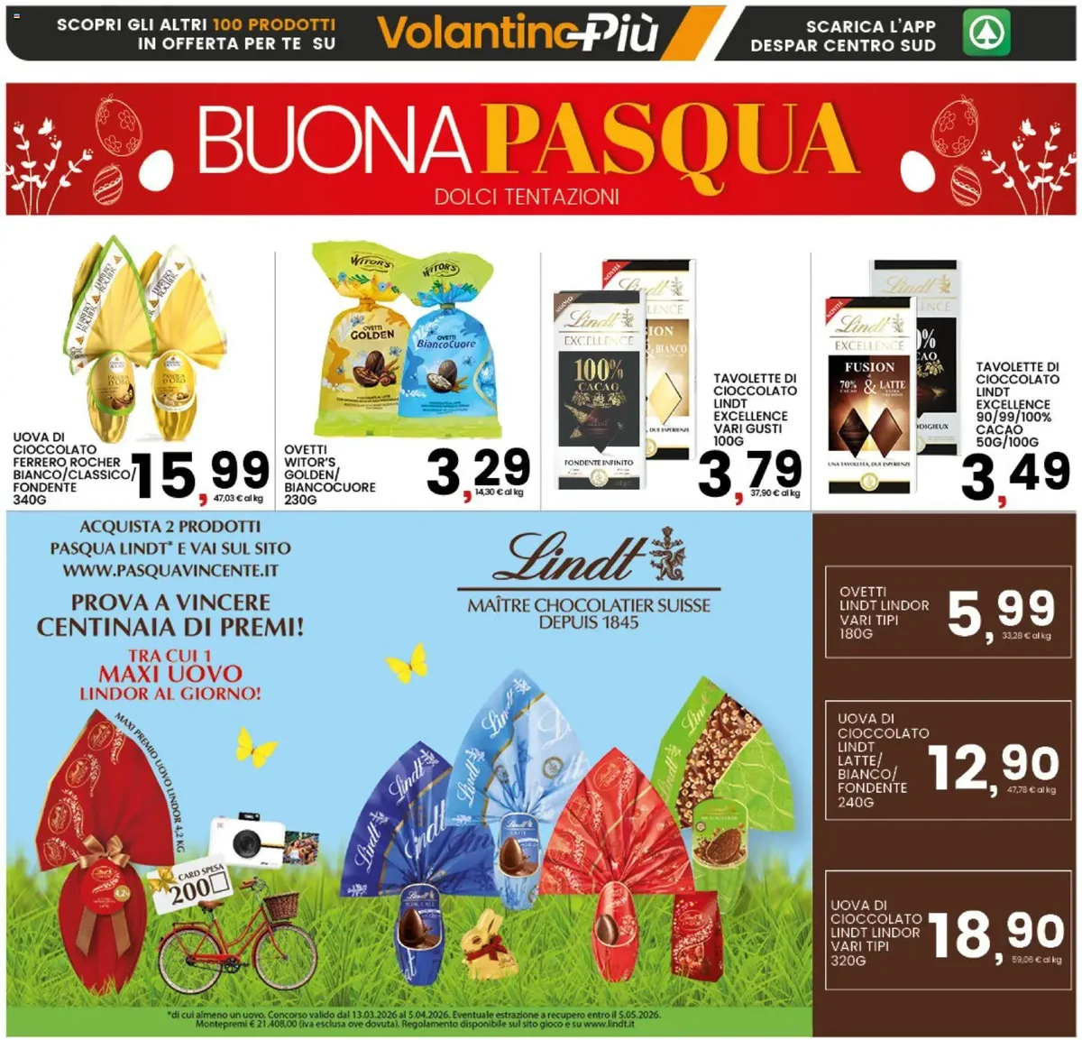Tra le proposte più allettanti, spicca l'AGNELLO INTERO/METÀ CON TESTA E CORATA AL KG a soli 10,90 €, un classico irrinunciabile per il pranzo pasquale. Non mancano le dolci tentazioni con le UOVA DI CIOCCOLATO ERNST KNAM DOLCI PREZIOSI FONDENTE/LATTE/BIANCO 240G a 9,90 €, perfette per grandi e piccini, e la GRAN COLOMBA MAINA CLASSICA 1KG a 3,99 €. Per la spesa di tutti i giorni, troviamo offerte imperdibili come il GRANA PADANO DOP RISERVA 700G a 7,90 €, il TONNO NOSTROMO ALL'OLIO DI OLIVA 60G X6 a 3,59 € e l'OLIO EXTRA VERGINE DI OLIVA CLASSICO DESANTIS 1L a 5,39 €. Non dimenticare la PASTA DI SEMOLA BARILLA FORMATI CLASSICI 500G a soli 0,59 € e le MELE GOLDEN DELICIOUS PASSO DOPO PASSO DESPAR 2,3KG a 2,99 €, ideali per la spesa.