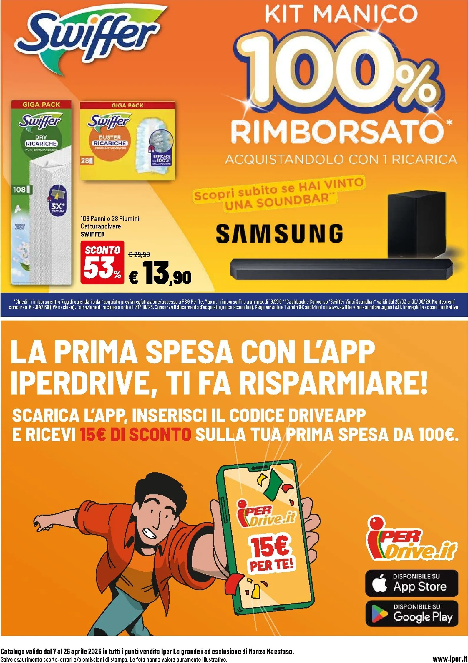 Le anteprima catalogo non si fermano qui. Un’offerta da non perdere è quella sul kit Swiffer, con un rimborso del 100% sull’acquisto di una ricarica, una soluzione pratica per pavimenti sempre splendenti. Inoltre, utilizzando l’app Iperdrive è possibile ottenere un ulteriore sconto di 15€ su una spesa di 100€. Per scoprire tutti i dettagli di queste e altre incredibili opportunità, è fondamentale consultare l’intero Iper Volantino. Approfittare di Iper Volantino dal 07/04/2026 significa garantirsi la massima qualità e risparmio per la cura della propria casa durante la stagione primaverile.
