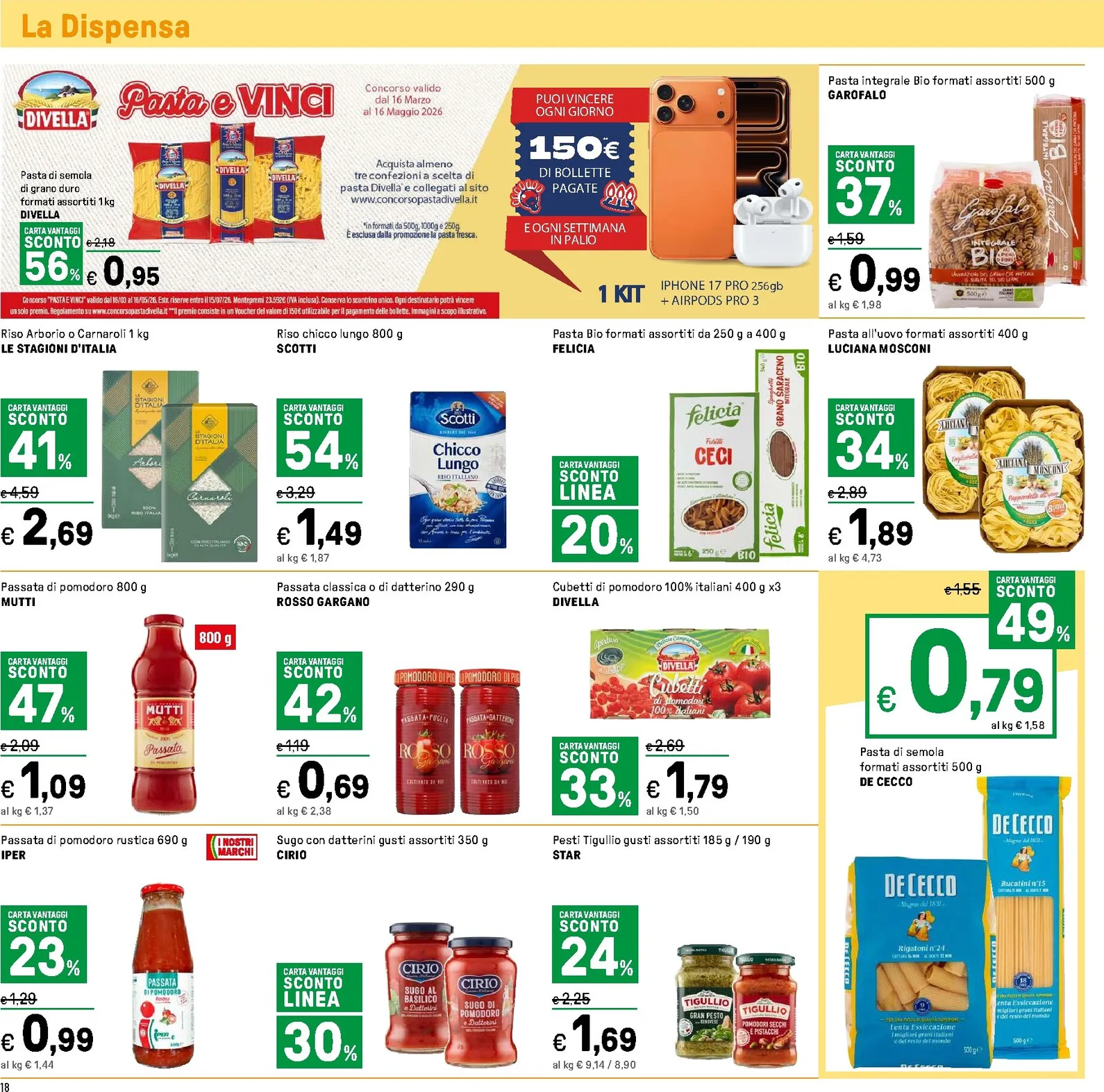 Le nuove offerte Iper, valide dal 16 al 26 aprile, sono un’occasione unica per una spesa ricca di convenienza. Il volantino si apre con nuovo offerte eccezionali: la pizza Italpizza è scontata del 58% a soli 1,99€ e le Gocciole Pavesi da un chilo costano 2,89€. La confezione di Coca-Cola è disponibile a 4,49€. Scoprire il Iper Volantino dal 16/04/2026 è il modo migliore per approfittare di questi prezzi imbattibili.