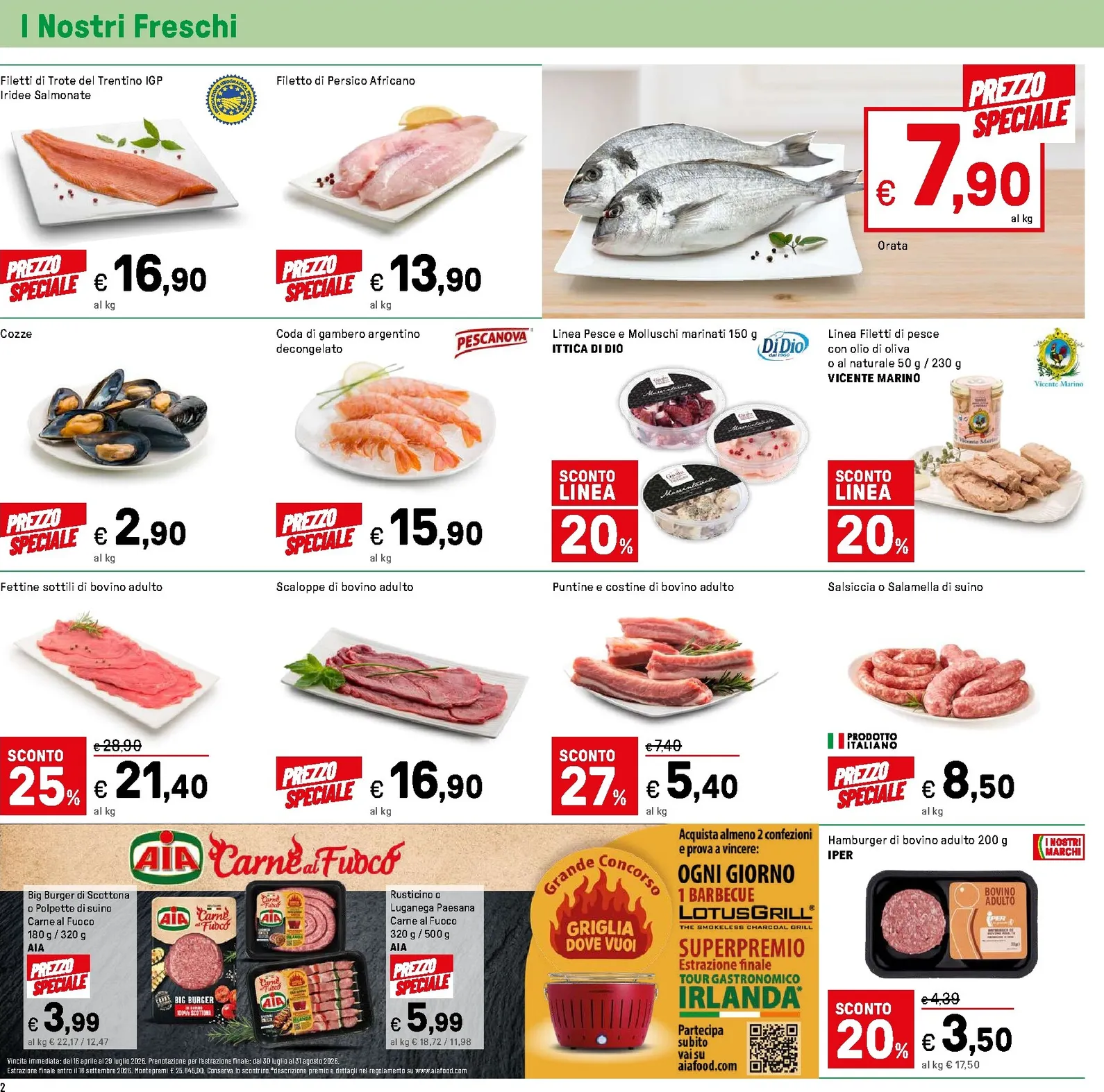 Il reparto dei freschi garantisce qualità e risparmio. La pescheria propone l’orata a 7,90€ al kg, mentre la macelleria offre le fettine di bovino con il 25% di sconto. Per le grigliate, le gustose salsicce sono a 8,50€ al kg. Anche il pollame è in promozione, con il petto di pollo a 8,99€ al kg e il galletto a 4,79€, per portare in tavola solo il meglio della freschezza.
