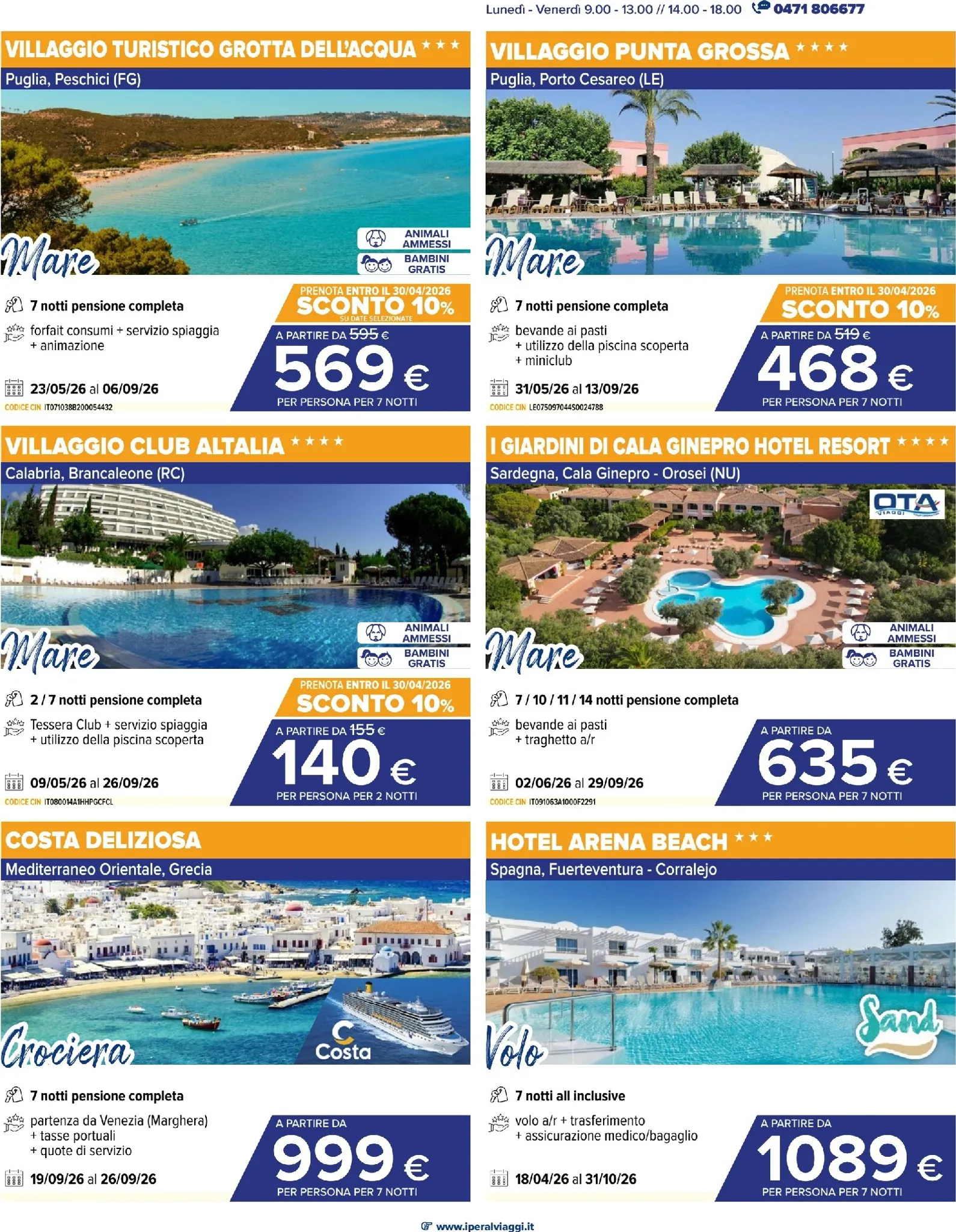 Il nuovo catalogo Iperal Viaggi è arrivato per trasformare i tuoi sogni di evasione in realtà. Che tu desideri il relax assoluto in riva al mare o l’avventura tra le vette, le nuove proposte sono pensate per ogni tipo di viaggiatore. Sfogliando queste pagine troverai incredibili offerte per pianificare la tua estate e non solo. Con il Iperal Volantino dal 08/04/2026 potrai scoprire destinazioni magnifiche a prezzi davvero competitivi, prenotando soggiorni indimenticabili per te e la tua famiglia. Lasciati ispirare dalle mete più belle e preparati a partire per un’esperienza unica, costruita su misura per le tue esigenze e i tuoi desideri di scoperta.