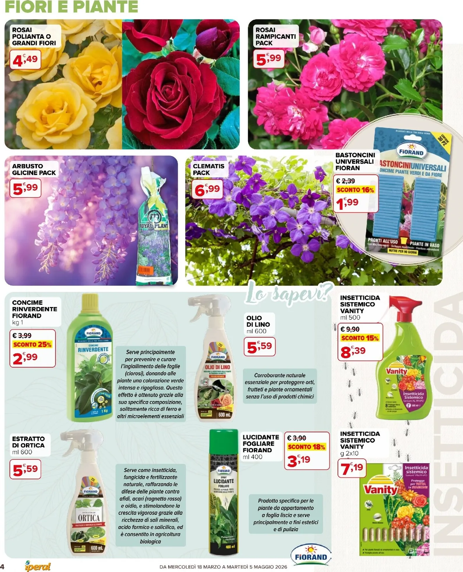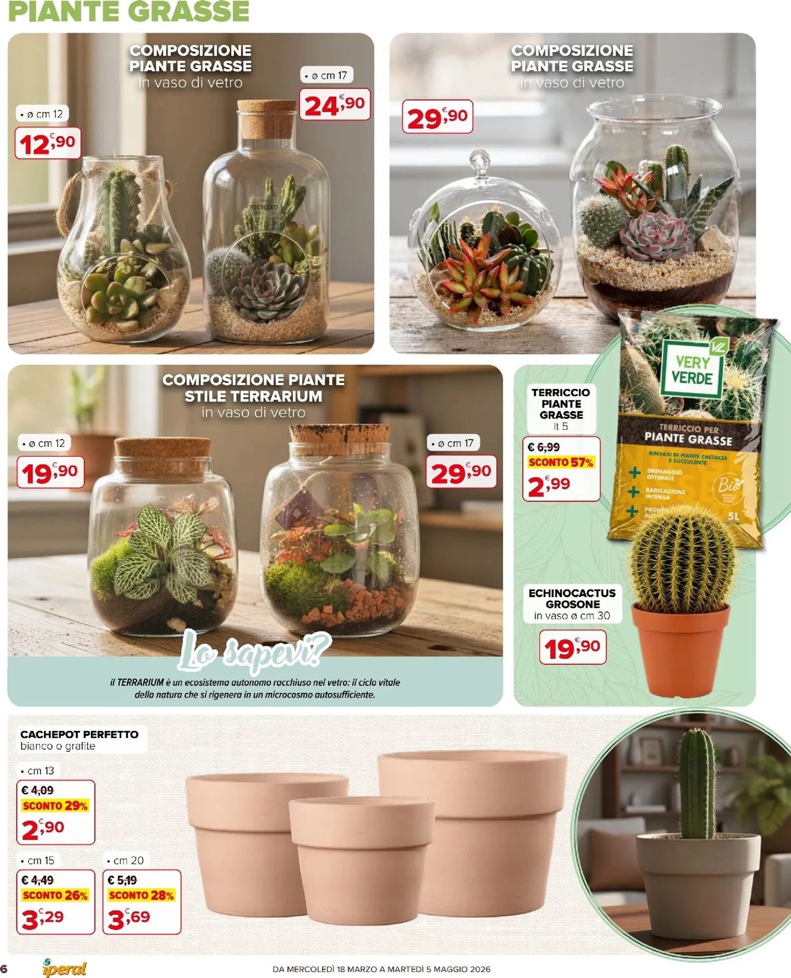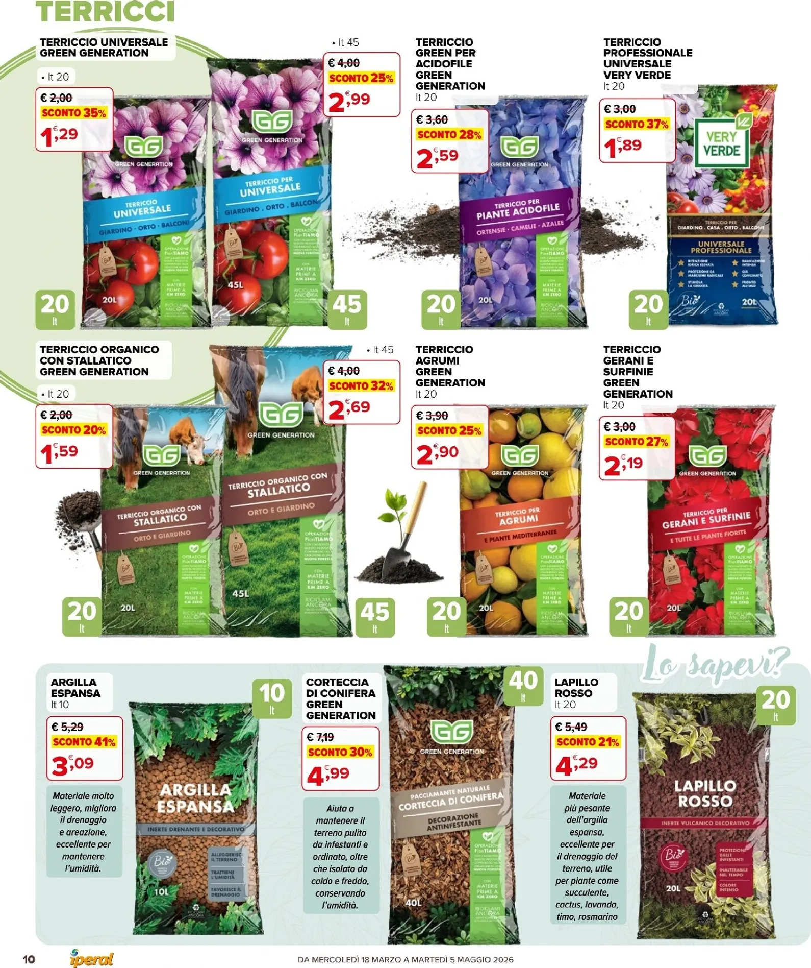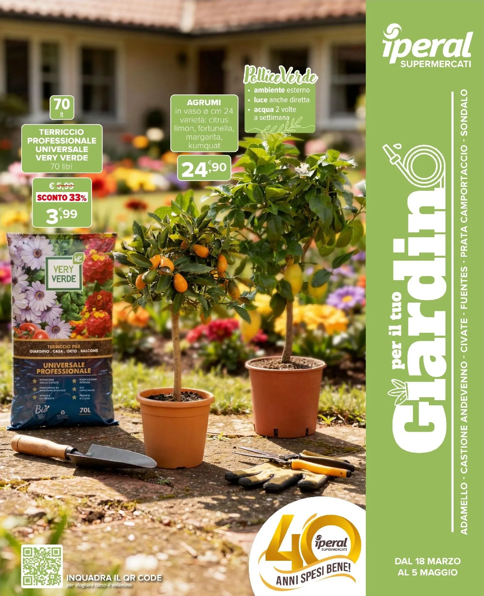 La primavera sboccia con le imperdibili offerte Iperal dedicate al giardinaggio. Questa settimana il volantino presenta offerte della settimana eccezionali per trasformare ogni spazio verde. In primo piano, il Terriccio Universale Very Verde da 70 litri è scontato del 33% a soli 3,99 €. Per un tocco di colore, le piante di agrumi come limone e kumquat sono disponibili a 24,90 €. Queste Iperal Volantino dal 18/03/2026 sono l’ideale per rinnovare il giardino con prodotti di qualità a prezzi convenienti.