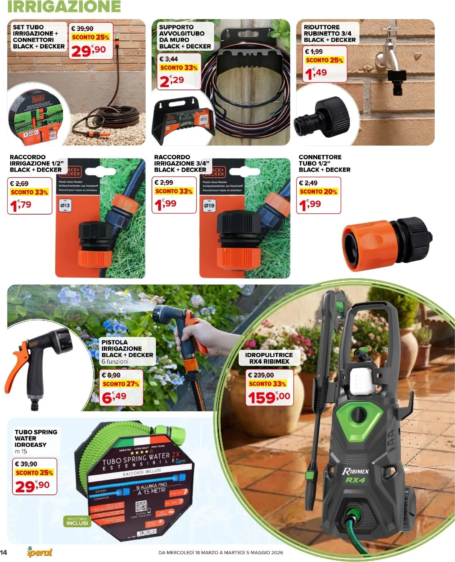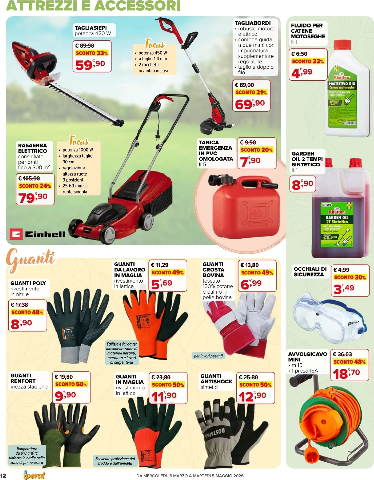 Il volantino pensa anche al lavoro all’aperto con una sezione dedicata all’abbigliamento tecnico. La felpa in micropolar a 15,90 € e il gilet multitasche a 12,90 € sono entrambi scontati del 30%. Disponibili anche pantaloni e calzature resistenti. Per scoprire tutte le Iperal Volantino dal 18/03/2026, consulta l’ultimo Iperal Volantino. Le offerte sono valide fino al 5 maggio, un’occasione della settimana da non perdere.