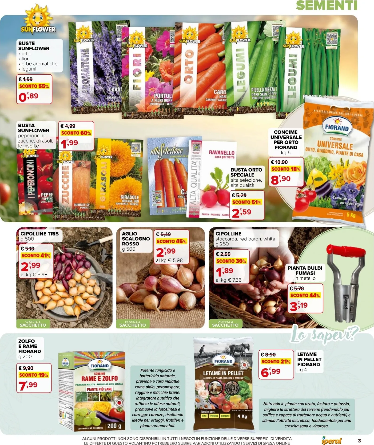 L’orto diventa protagonista grazie a una vasta gamma di sementi. Le buste di semi Sunflower partono da 0,89 € con sconti fino al 55%. Bulbi come le cipolline tris e l’aglio scalogno sono in offerta per un raccolto di qualità. Per nutrire le piante, il concime Gesal per agrumi è scontato del 40% a 5,90 €, mentre il concime universale Fiorand da 5 kg è disponibile a 8,90 €, ideale per la crescita sana.