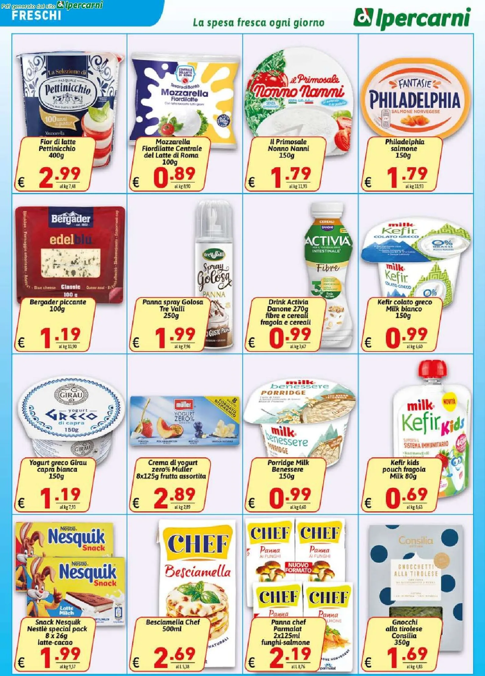 Le offerte Ipercarni si estendono a tutta la spesa. Per la dispensa, la pasta De Cecco è proposta a 0,89 €, l’olio extra vergine Clemente a 4,79 € e il tonno As do Mar in formato scorta a 5,99 €. Nel banco frigo, la mozzarella Valcolatte in confezione doppia è a 1,99 €, mentre il Philadelphia Vegetale è in offerta a 1,49 €, ideale per ricette creative.