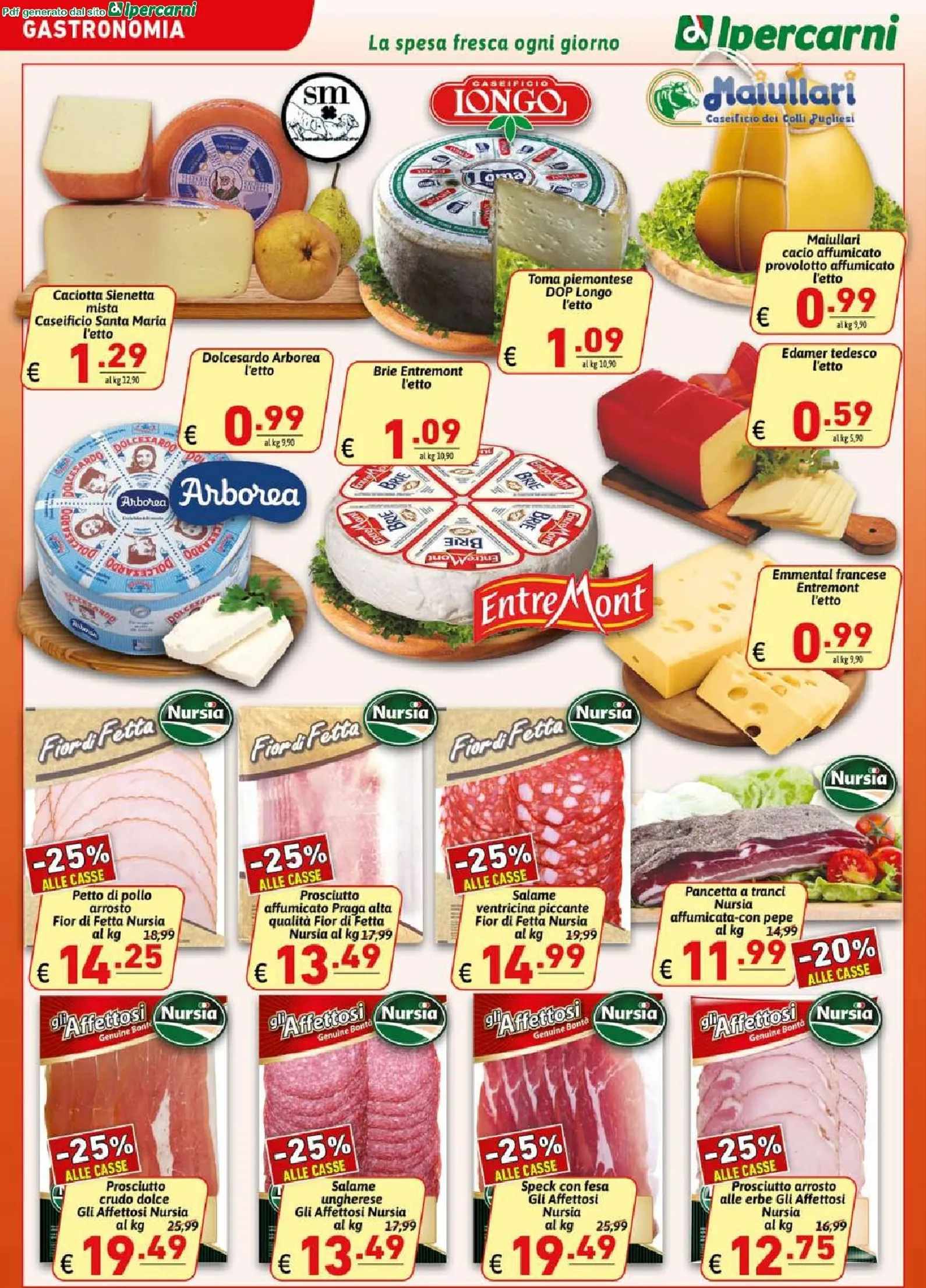 La convenienza prosegue con tagli pregiati come la tagliata di manzo a 17,99 €/kg e il carpaccio a 19,79 €/kg, entrambi scontati del 10%. Per gli amanti della scottona, le fettine di coscia sono a 17,99 €/kg. La linea “Presto Pronto” offre soluzioni veloci come le polpette alla romana a 9,74 €/kg (-25%) e le fettine di prosciutto panate a 7,19 €/kg.
