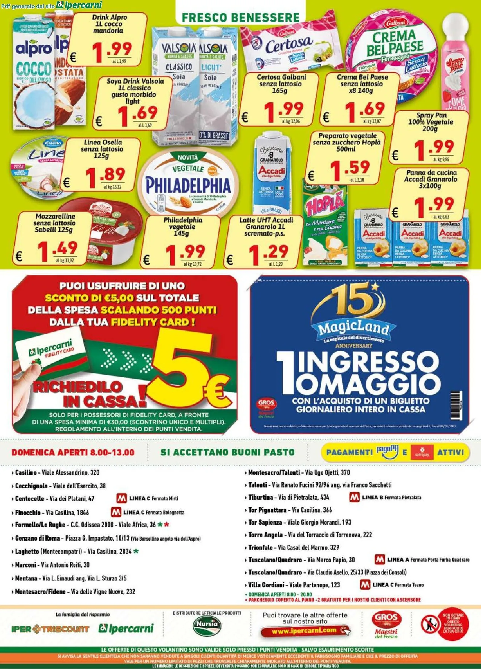 La convenienza continua con le soluzioni pratiche della linea “Presto Pronto”, come le cotolette di pollo a 7,99€ e le polpette a 9,74€ al kg. Nella sezione “Fresco Benessere” troviamo il drink vegetale Alpro a 1,99€ e la nuova Philadelphia vegetale a 1,49€. Queste offerte sono pensate per chi cerca un’alimentazione varia, unendo gusto, salute e risparmio in ogni pasto.