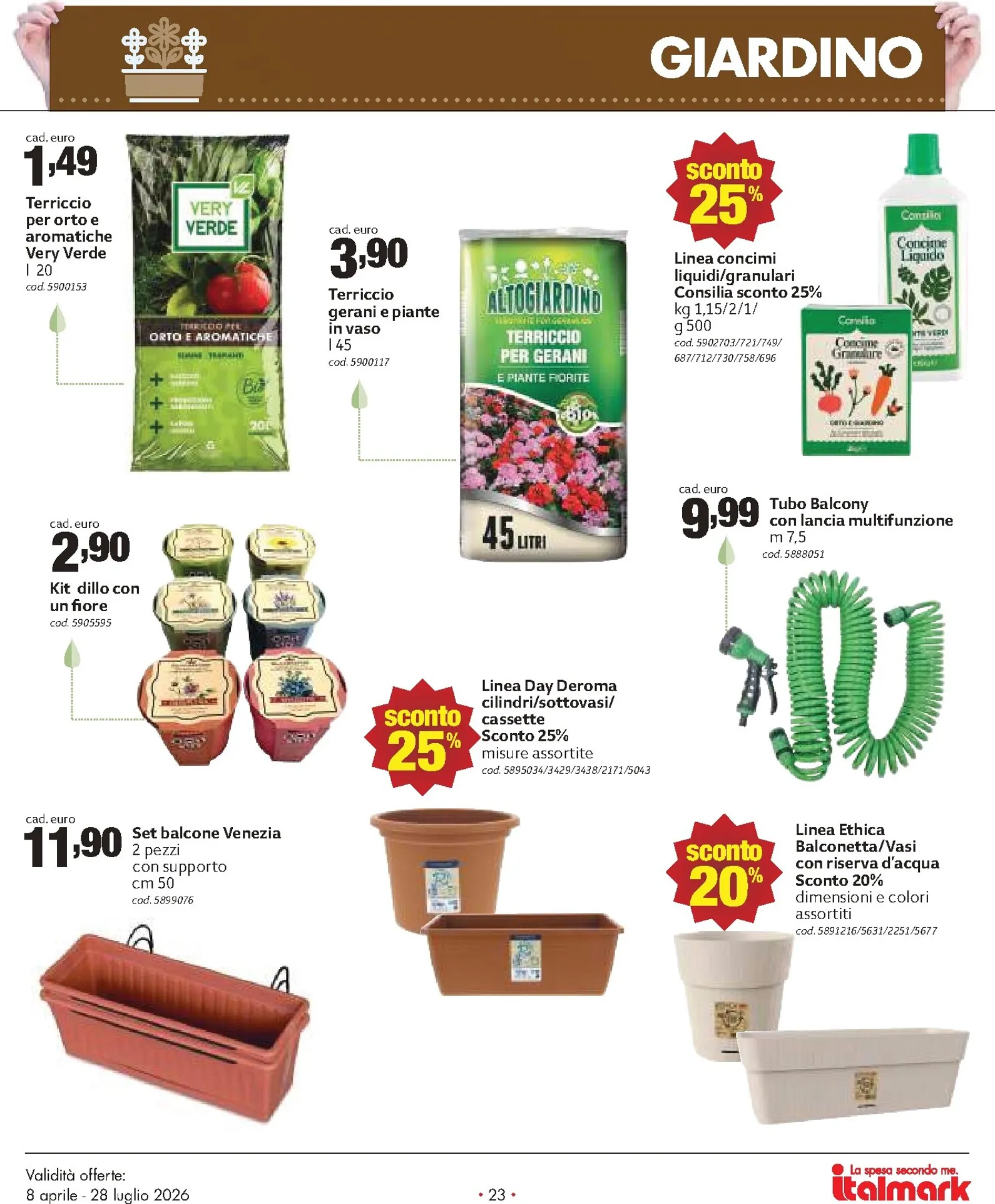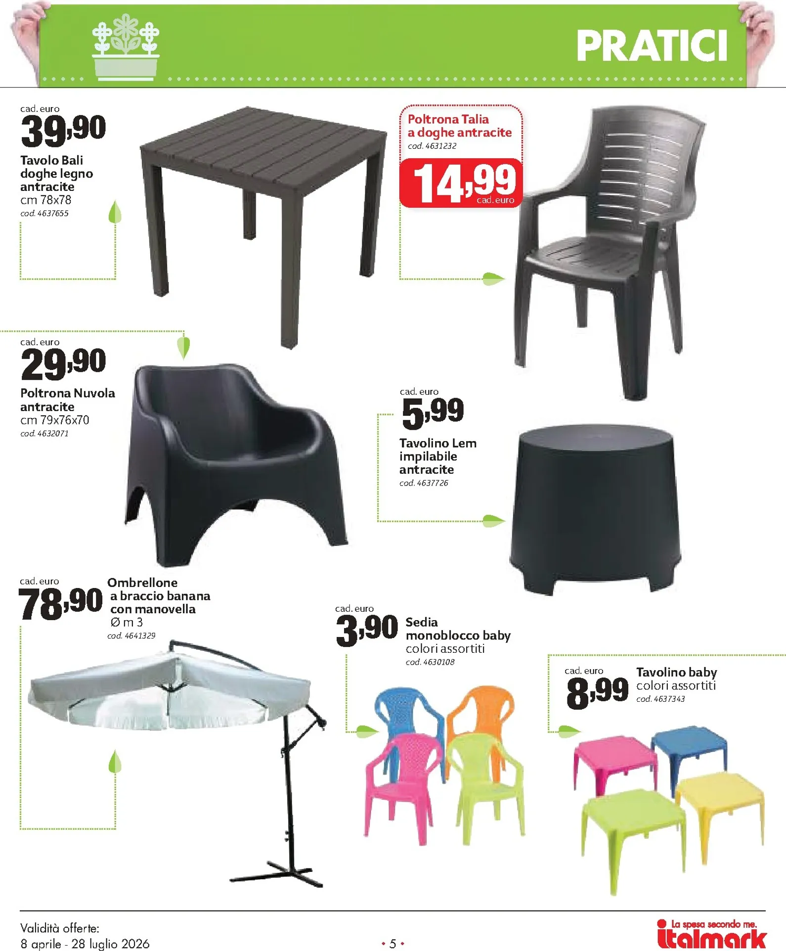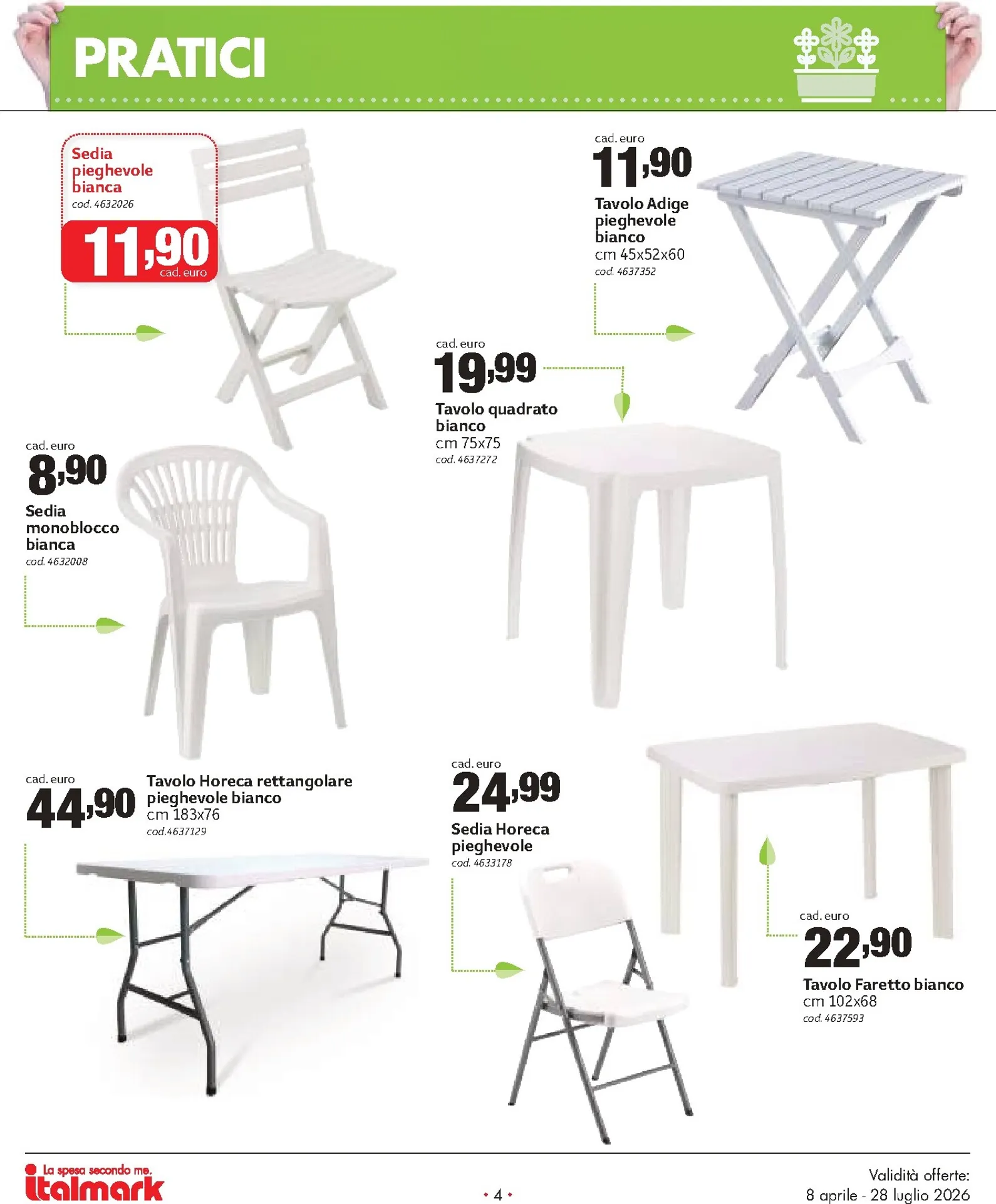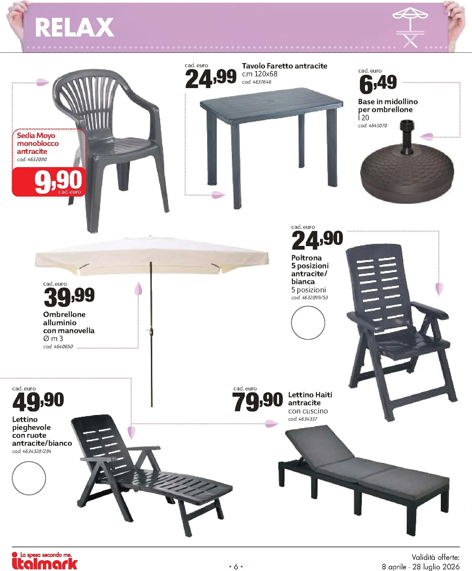 Questo speciale catalogo è un concentrato di opportunità per la stagione calda, con la comoda opzione di prenotazione online. Non lasciarti sfuggire queste catalogo e offerte. Per tutti i dettagli, consulta l’intero Italmark Volantino e trova l’ispirazione giusta. È il momento di rinnovare i tuoi spazi esterni con il Italmark Volantino dal 08/04/2026 che hai sempre desiderato, approfittando di queste occasioni uniche.