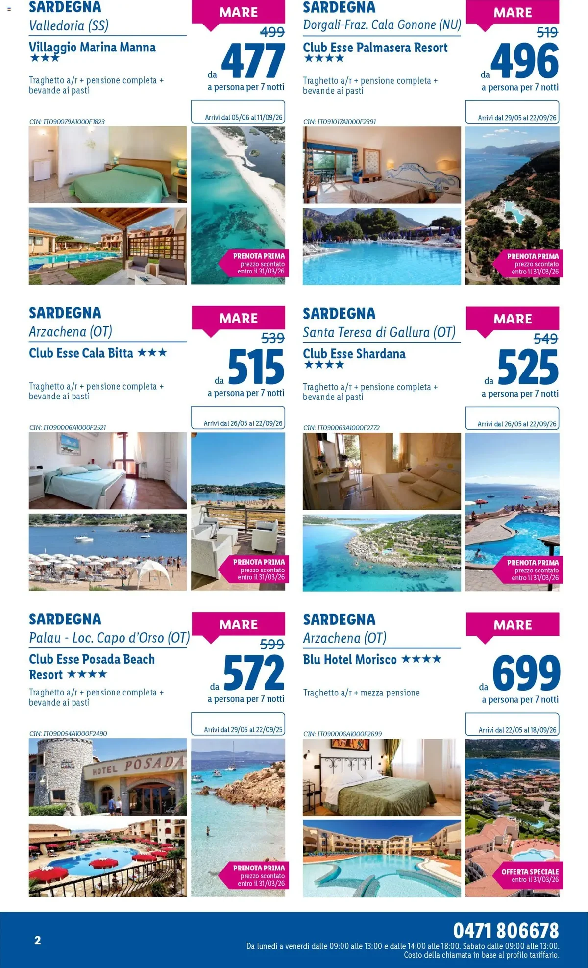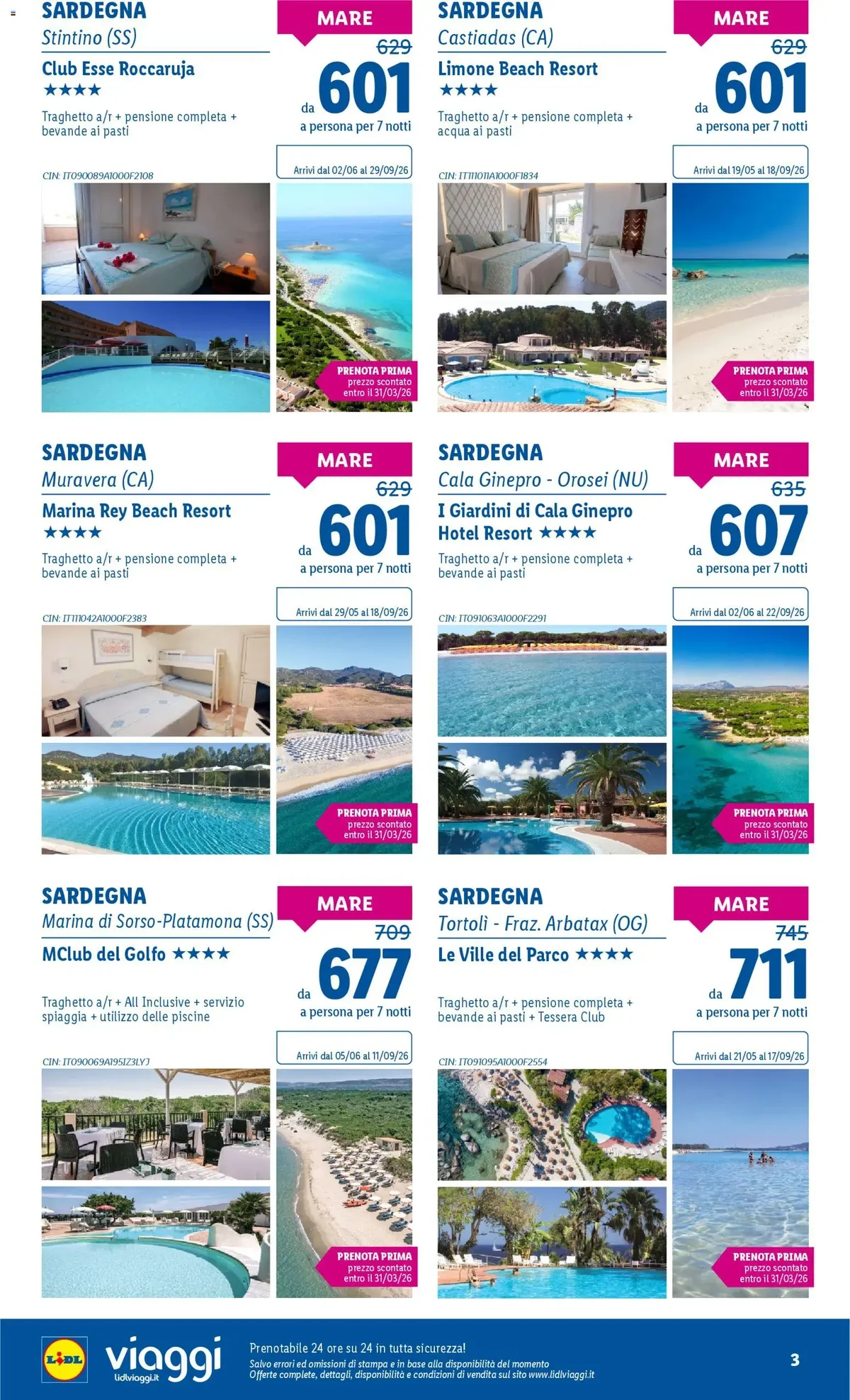 Il volantino Lidl "Offerte Speciali Viaggi Marzo" è qui, con incredibili opportunità per le tue vacanze. A partire dal Volantino Lidl dal 01.03.2026, scopri pacchetti viaggio imperdibili per esplorare le meraviglie d'Italia. Per chi sogna il Sud, un soggiorno di 7 notti in Salento è disponibile a soli €468 a persona, con €51 di sconto. La Sardegna domina le proposte, con numerose opzioni. Inizia la tua avventura sull'isola con un pacchetto a Valledoria (SS) presso il Villaggio Marina Manna per 7 notti a €477, con €22 di sconto.