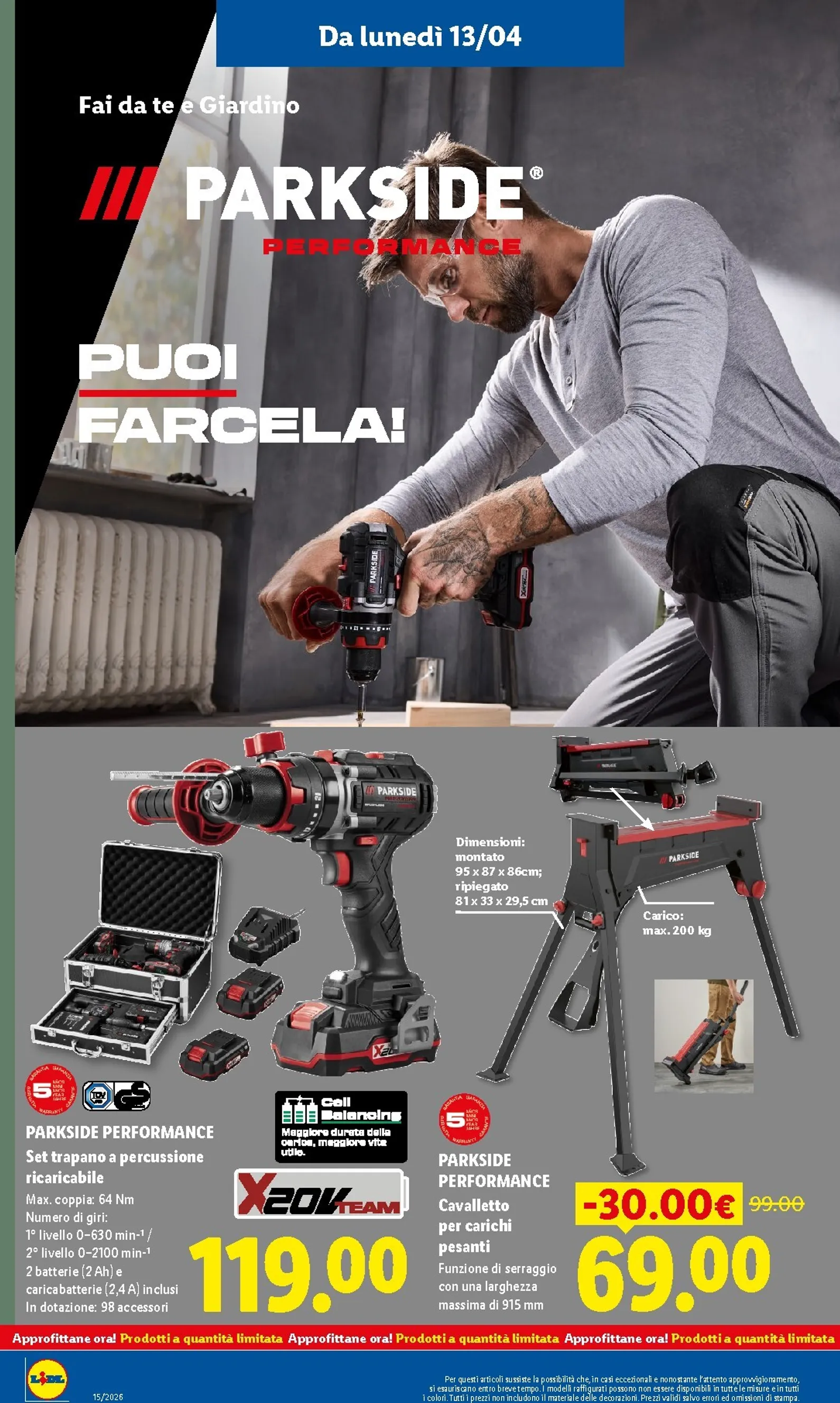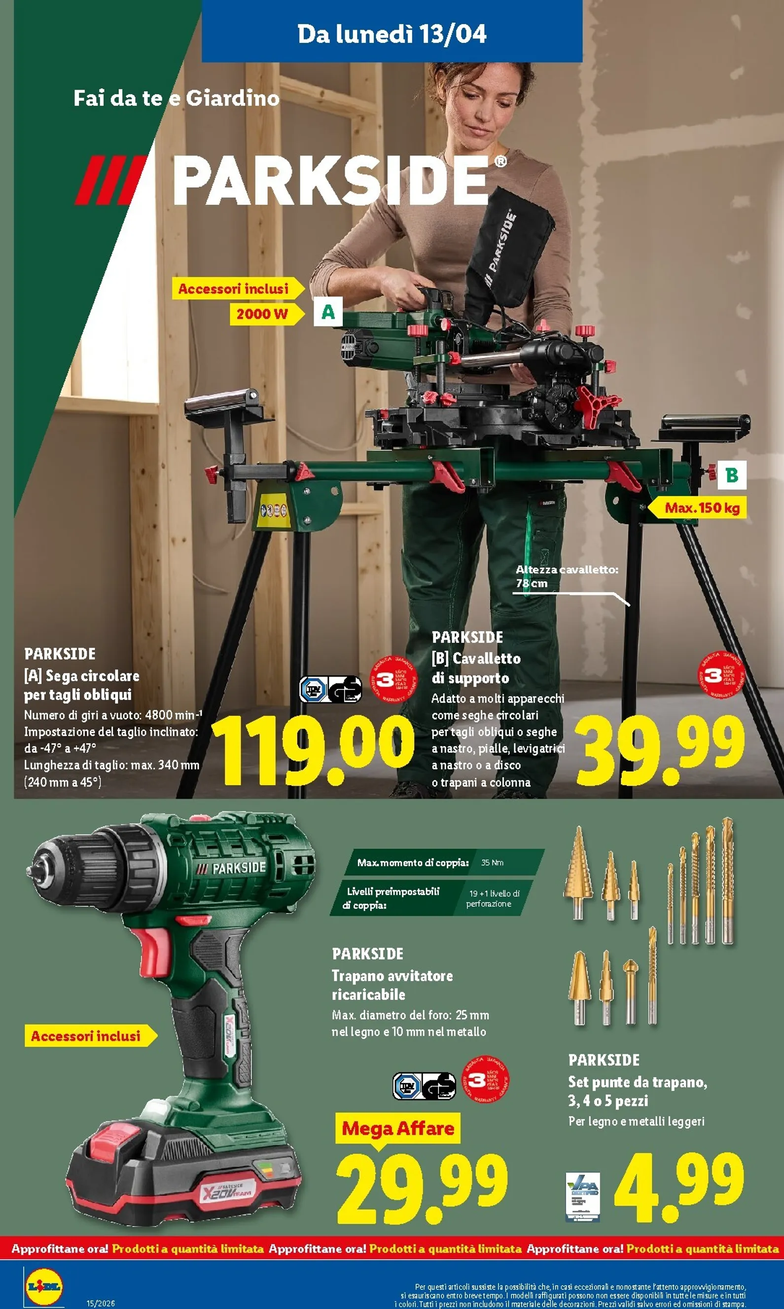La settimana si conclude con altre imperdibili occasioni. Per il bricolage, Parkside offre la smerigliatrice angolare ricaricabile a 39,99€. Per preparare il giardino alla bella stagione, la tenda a vela parasole Livarno è disponibile a 19,99€. Non dimenticate le offerte sulla dispensa, come il tonno Nixe. Per non perdere nessuna promozione, consultate il Lidl Volantino dal 09/04/2026 per pianificare i vostri acquisti. Trovate sempre l’ultimo Lidl Volantino aggiornato con tutte le novità.