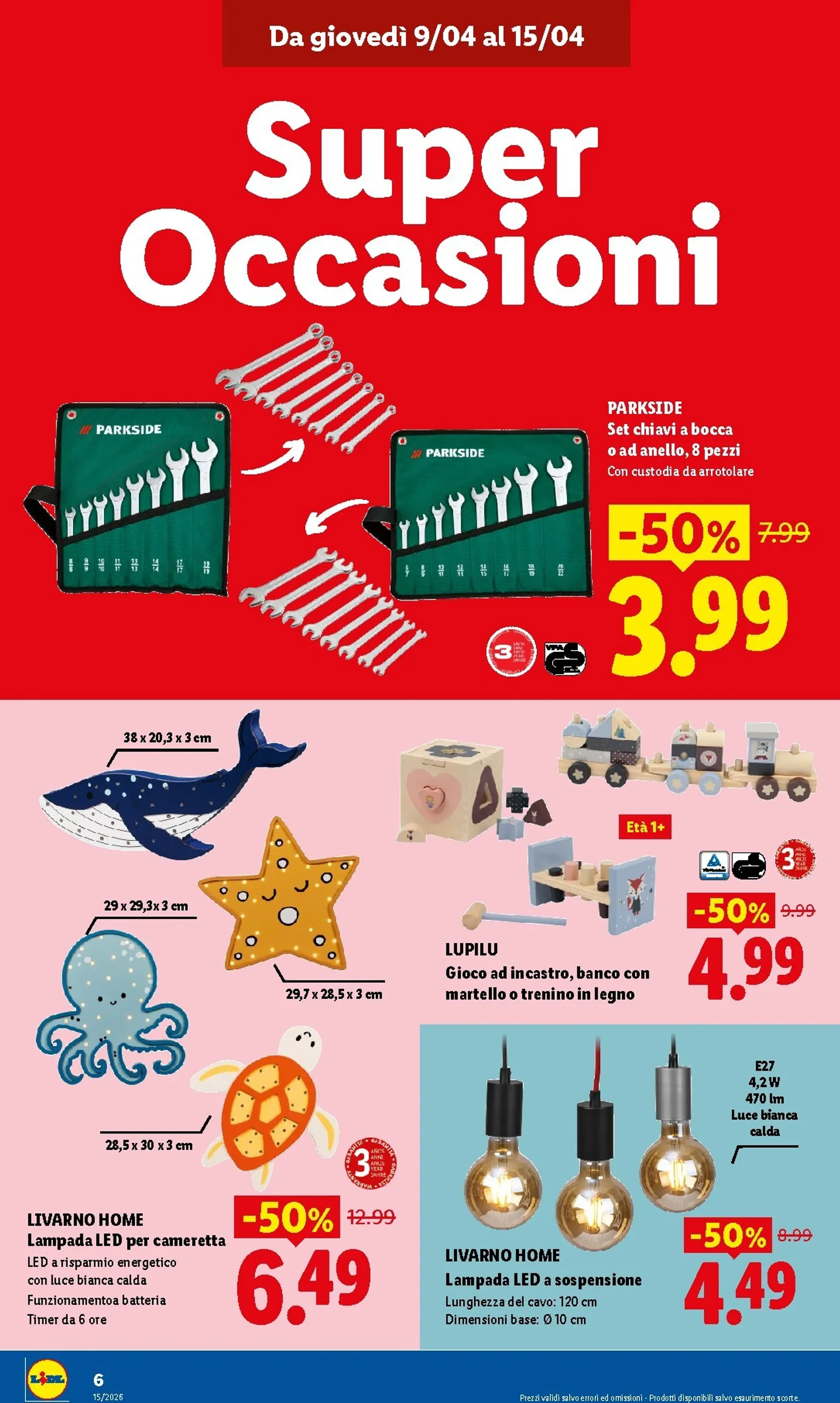 Le “Super Offerte” completano il quadro con prodotti come il cheeseburger Chef Select a 1,69€ e il Kefir Milbona a 0,69€. Per uno snack sano, le mandorle Alesto sono in promozione a 1,99€. Per non perdere nessuna di queste promozioni, consultate attentamente il Lidl Volantino dal 09/04/2026 di questa settimana. Tutte le informazioni e le altre occasioni sono disponibili visitando la pagina del Lidl Volantino.