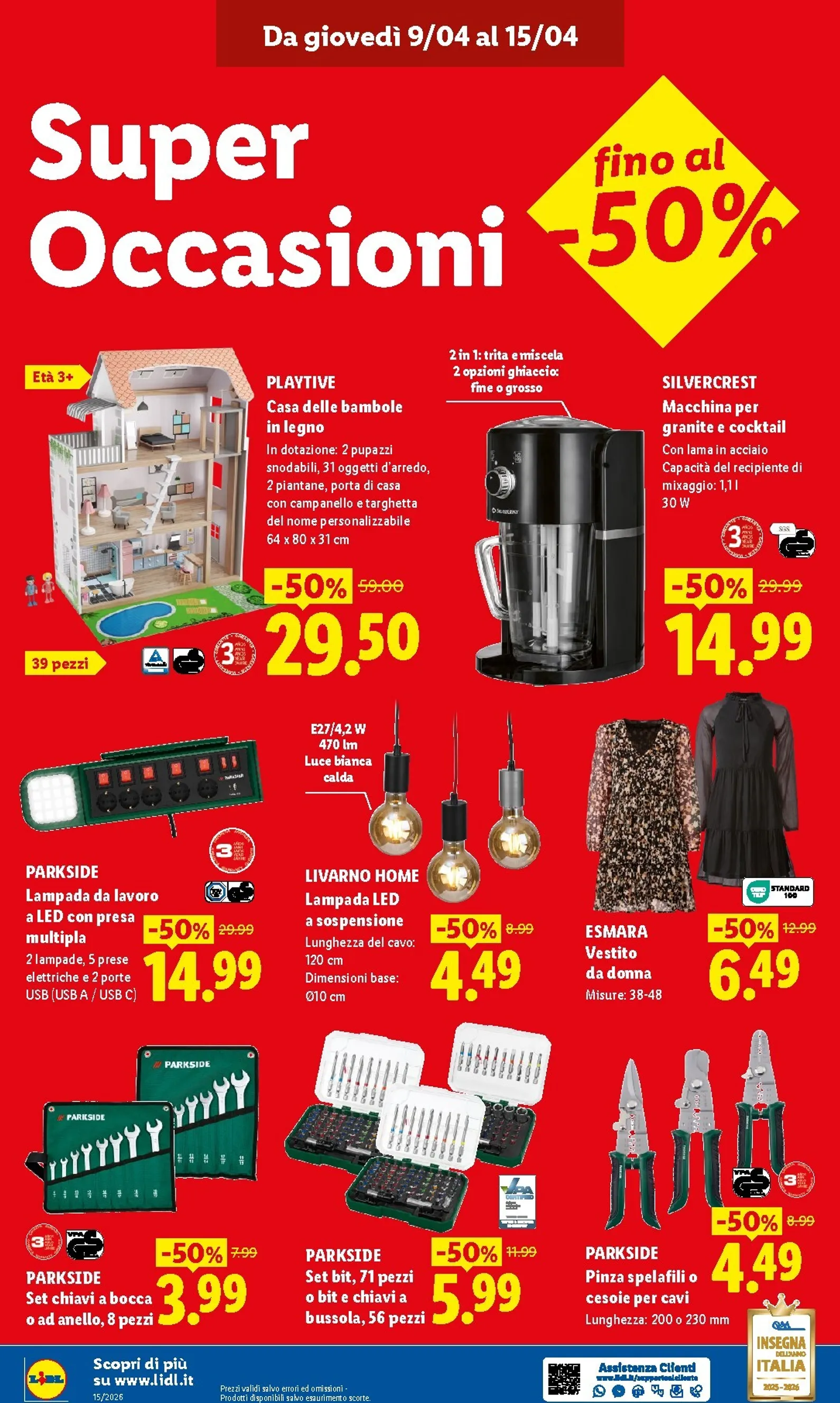 Le catalogo e offerte non si limitano al settore alimentare. Questo catalogo include fantastiche occasioni per la casa, come la macchina per granite Silvercrest a 14,99€. Per gli amanti del bricolage, Parkside propone un set da 71 pezzi di bit e chiavi a soli 5,99€ e una lampada da lavoro a LED a 14,99€. L’abbigliamento è protagonista con un vestito da donna Esmara a soli 6,49€.