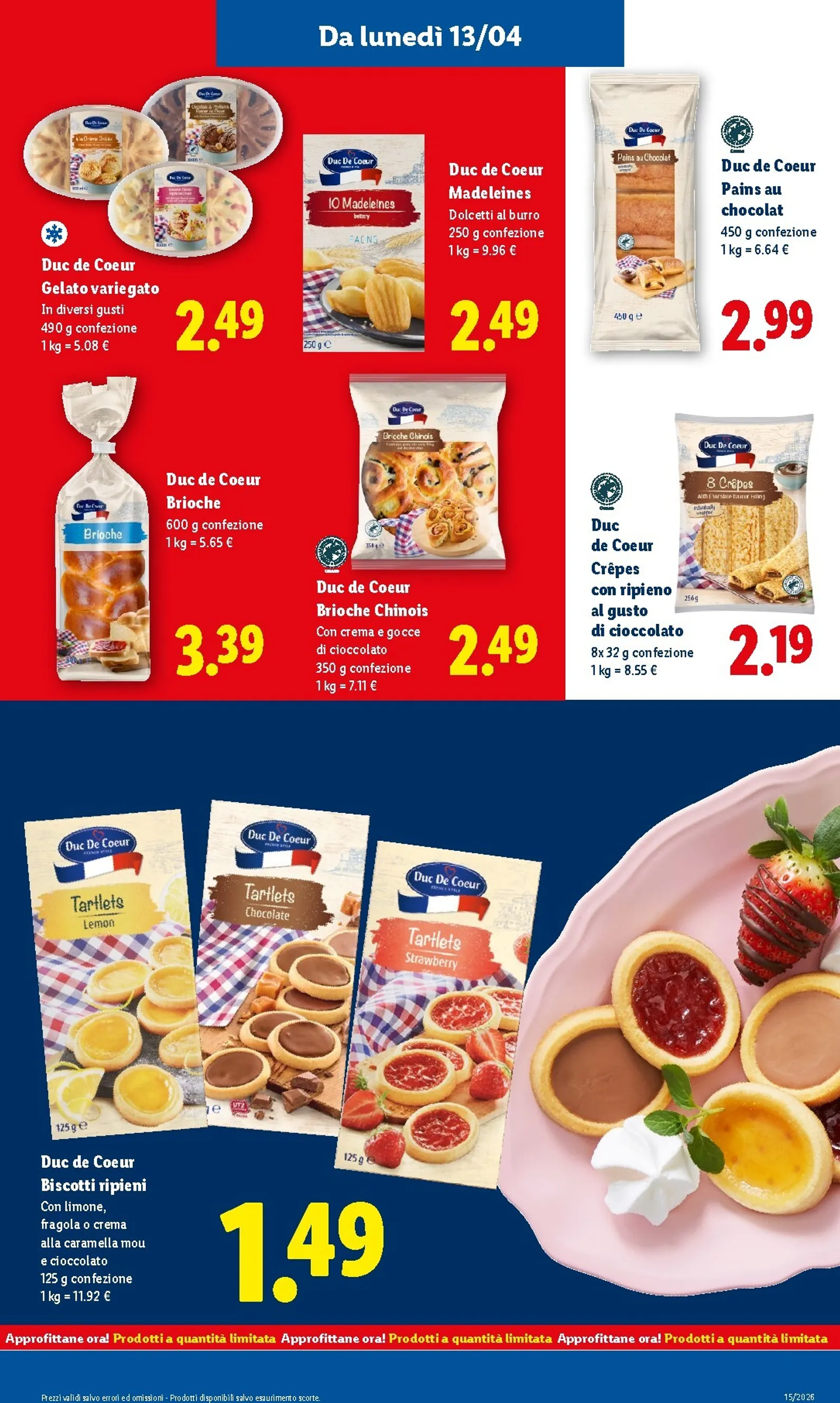 La convenienza prosegue da lunedì 13 aprile con un’attenzione particolare alla freschezza. Nel reparto ortofrutta troviamo i limoni in rete a 1,69€, i cuori di carciofo a 1,99€ e gli asparagi verdi a 3,49€. Per una pausa dolce, i biscotti ripieni Duc de Coeur sono proposti a 1,49€. Queste proposte sono ideali per portare in tavola i sapori della primavera, combinando qualità e un grande risparmio.