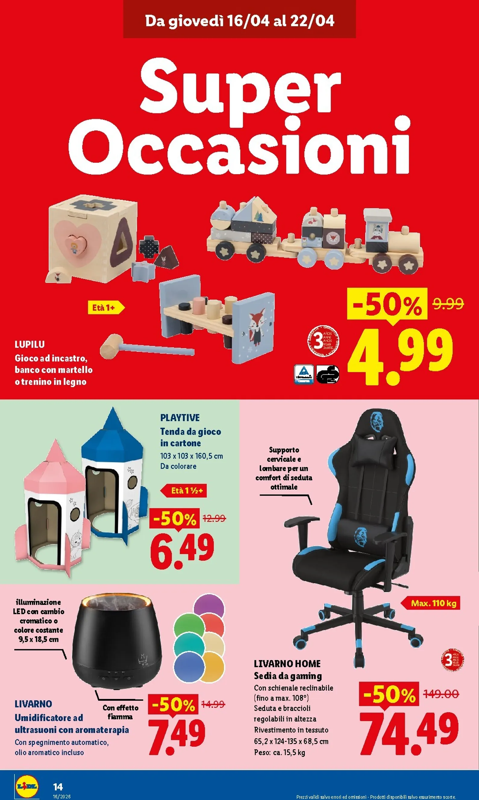 I clienti fedeli possono approfittare di un Buono Sconto di 5 € tramite l’app Lidl Plus, valido nel nuovo punto vendita su una spesa di almeno 30 €. Anche i più piccoli sono festeggiati con il gioco in legno Lupilu scontato del 50% a 4,99 €. Per scoprire tutte le offerte della settimana della settimana, consultate il Lidl Volantino dal 16/04/2026 completo. Troverete tutte le informazioni e altre offerte sfogliando il nuovo Lidl Volantino digitale.