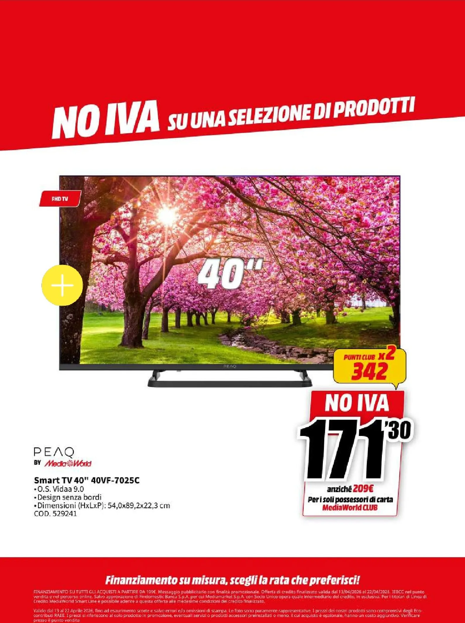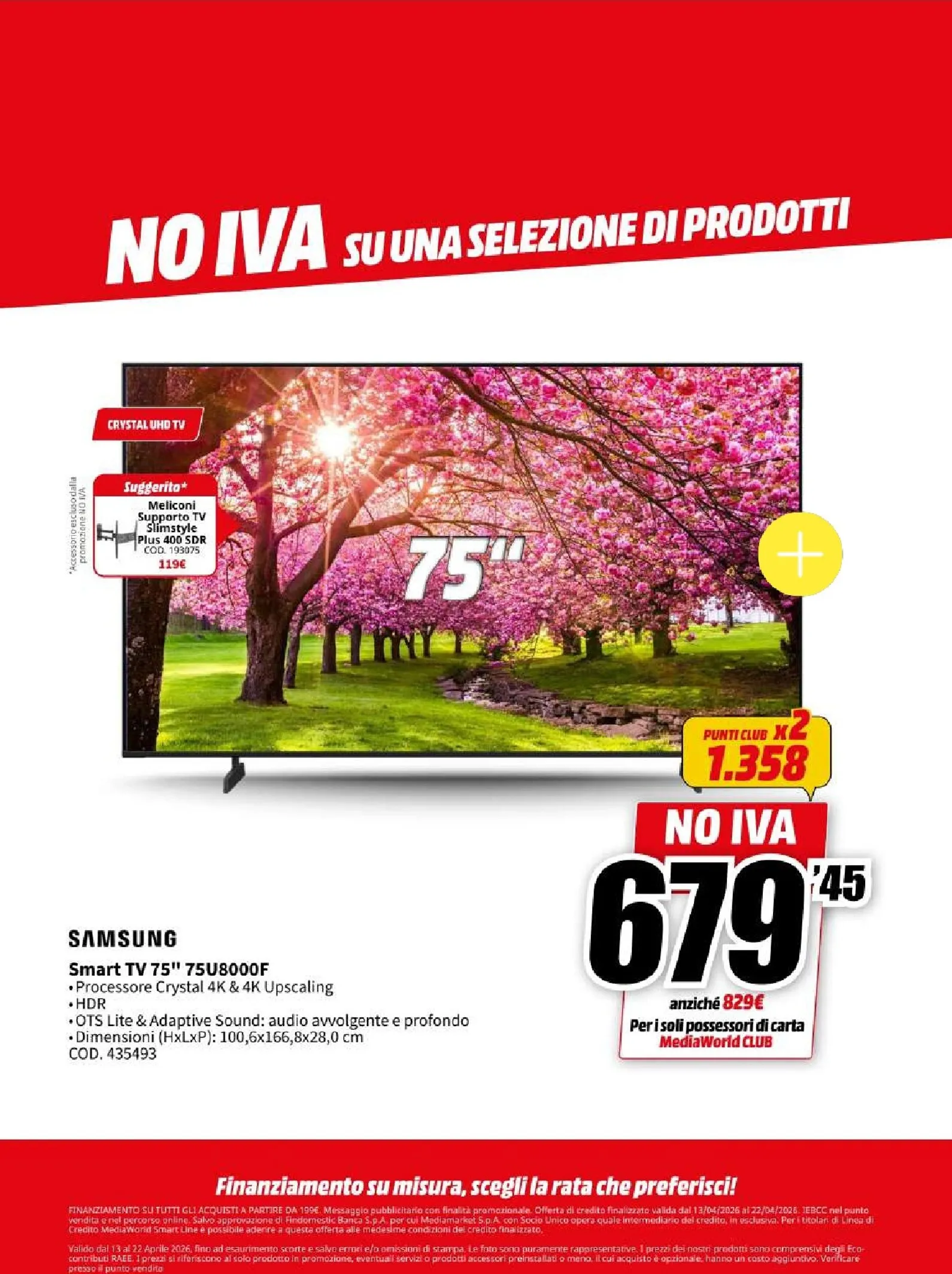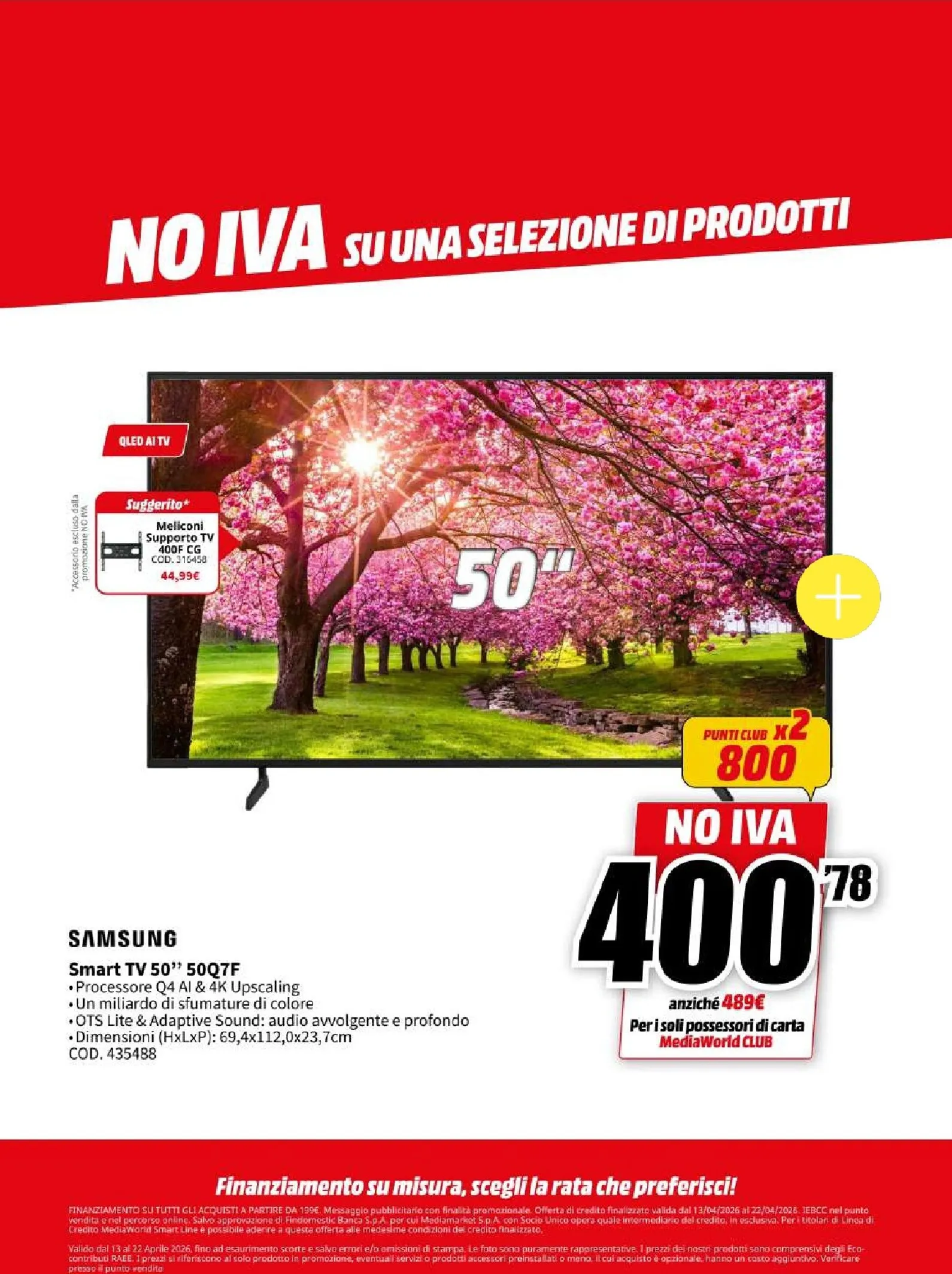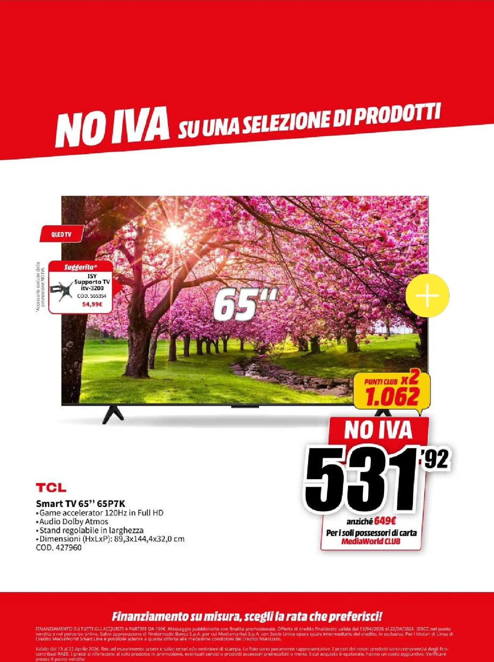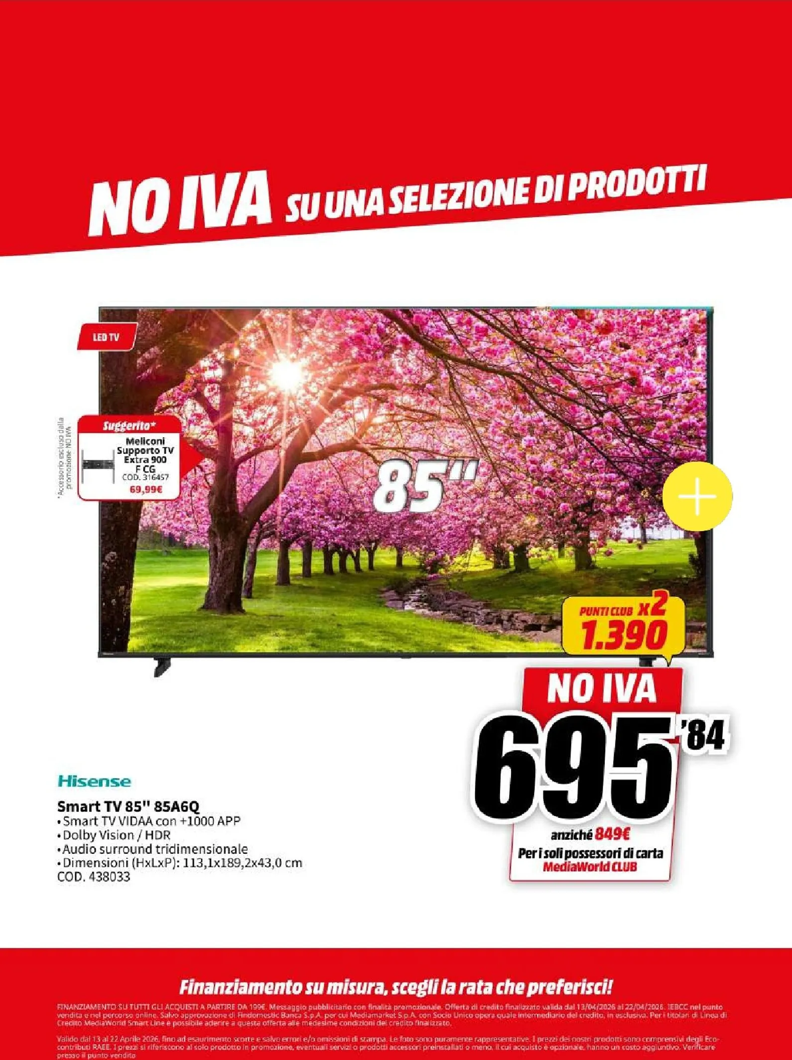 La nuova campagna promozionale Mediaworld, valida dal 13 al 22 aprile, lancia l’operazione “NO IVA” su una vasta selezione di prodotti. Questo si traduce in sconti eccezionali su tecnologia di ultima generazione. Le migliori offerte del momento vi attendono, con prezzi ribassati che rendono l’acquisto ancora più conveniente. Per chi cerca di aggiornare il proprio salotto, questo Mediaworld Volantino dal 13/04/2026 rappresenta un’opportunità da cogliere al volo per garantirsi il massimo della qualità.