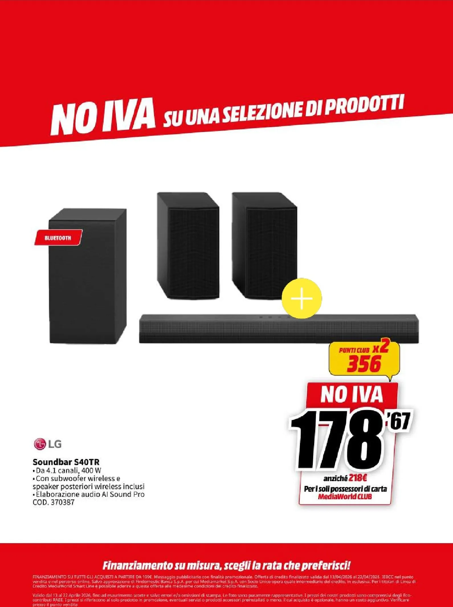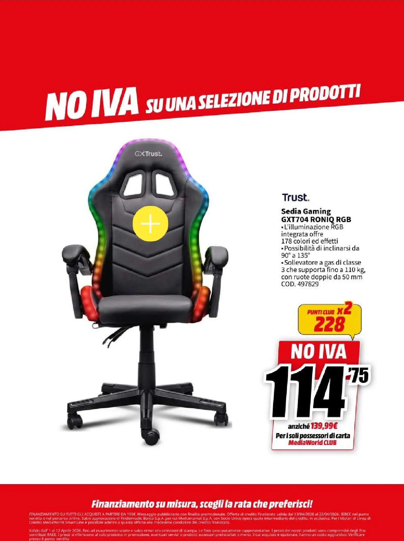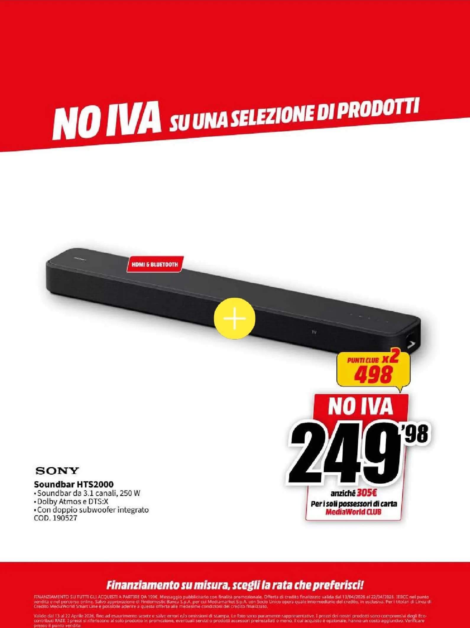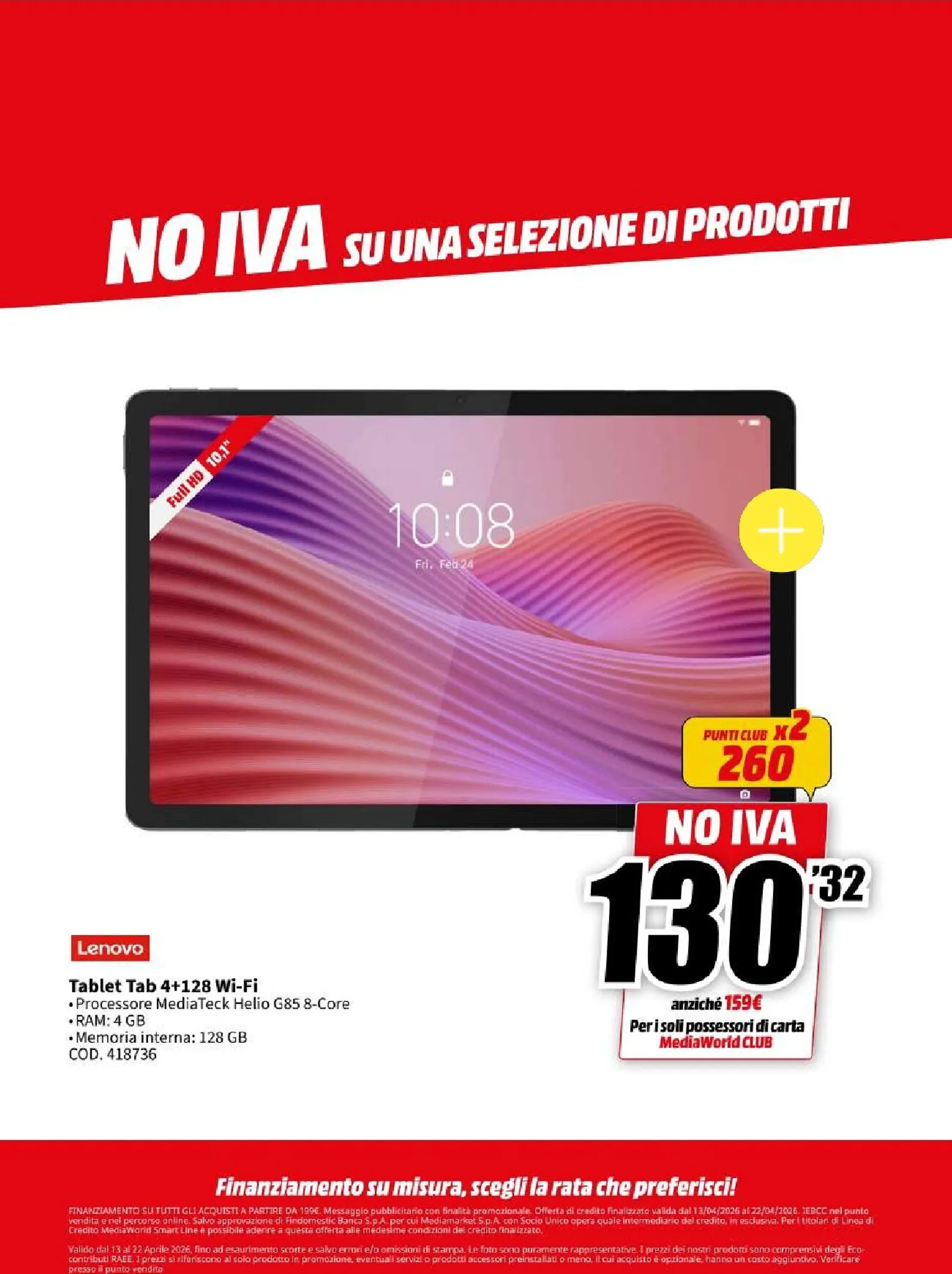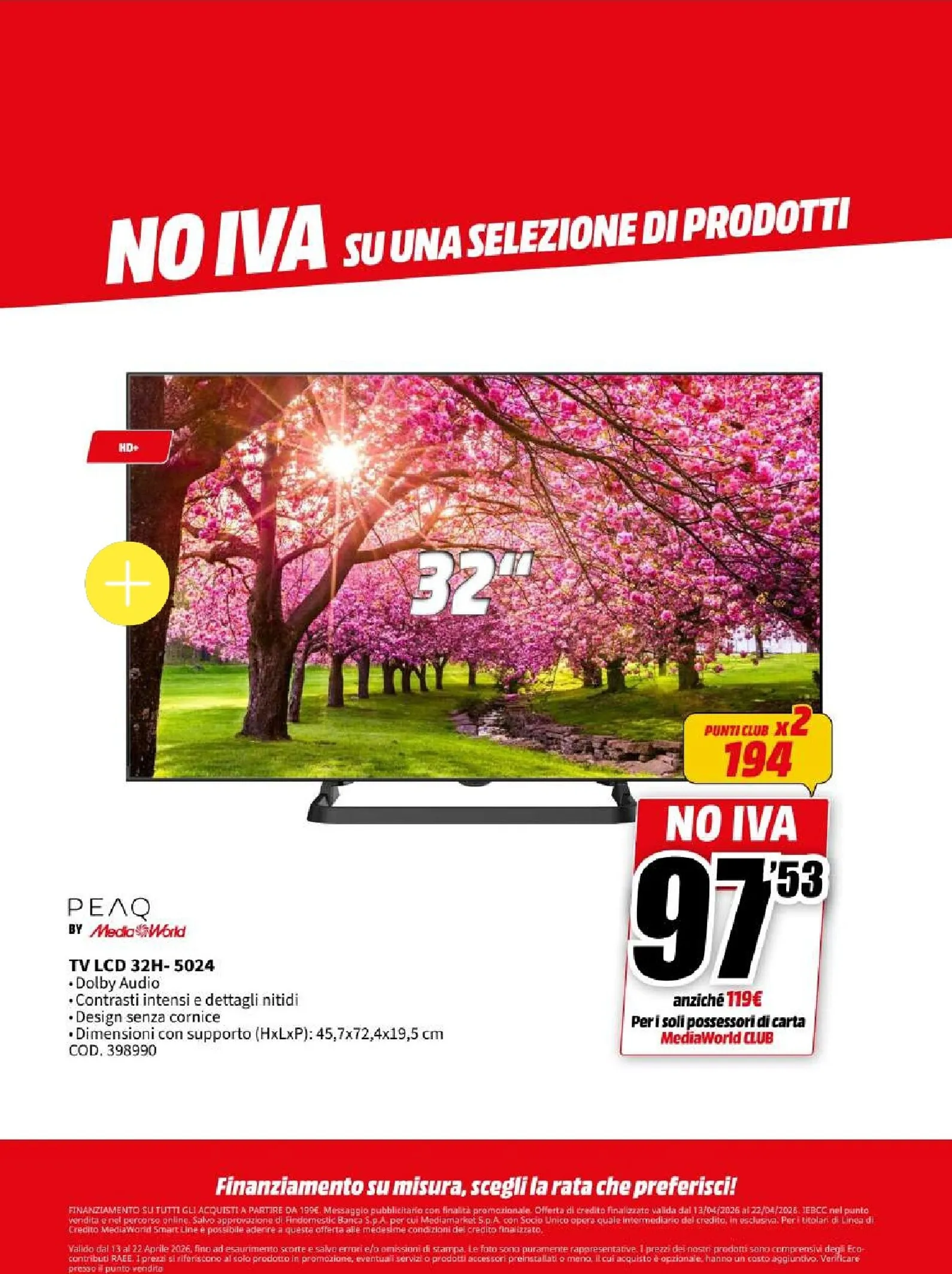 La nuova campagna promozionale Mediaworld, valida dal 13 al 22 aprile, lancia l’operazione “NO IVA” su una vasta selezione di prodotti. Questo si traduce in sconti eccezionali su tecnologia di ultima generazione. Le migliori offerte del momento vi attendono, con prezzi ribassati che rendono l’acquisto ancora più conveniente. Per chi cerca di aggiornare il proprio salotto, questo Mediaworld Volantino dal 13/04/2026 rappresenta un’opportunità da cogliere al volo per garantirsi il massimo della qualità.