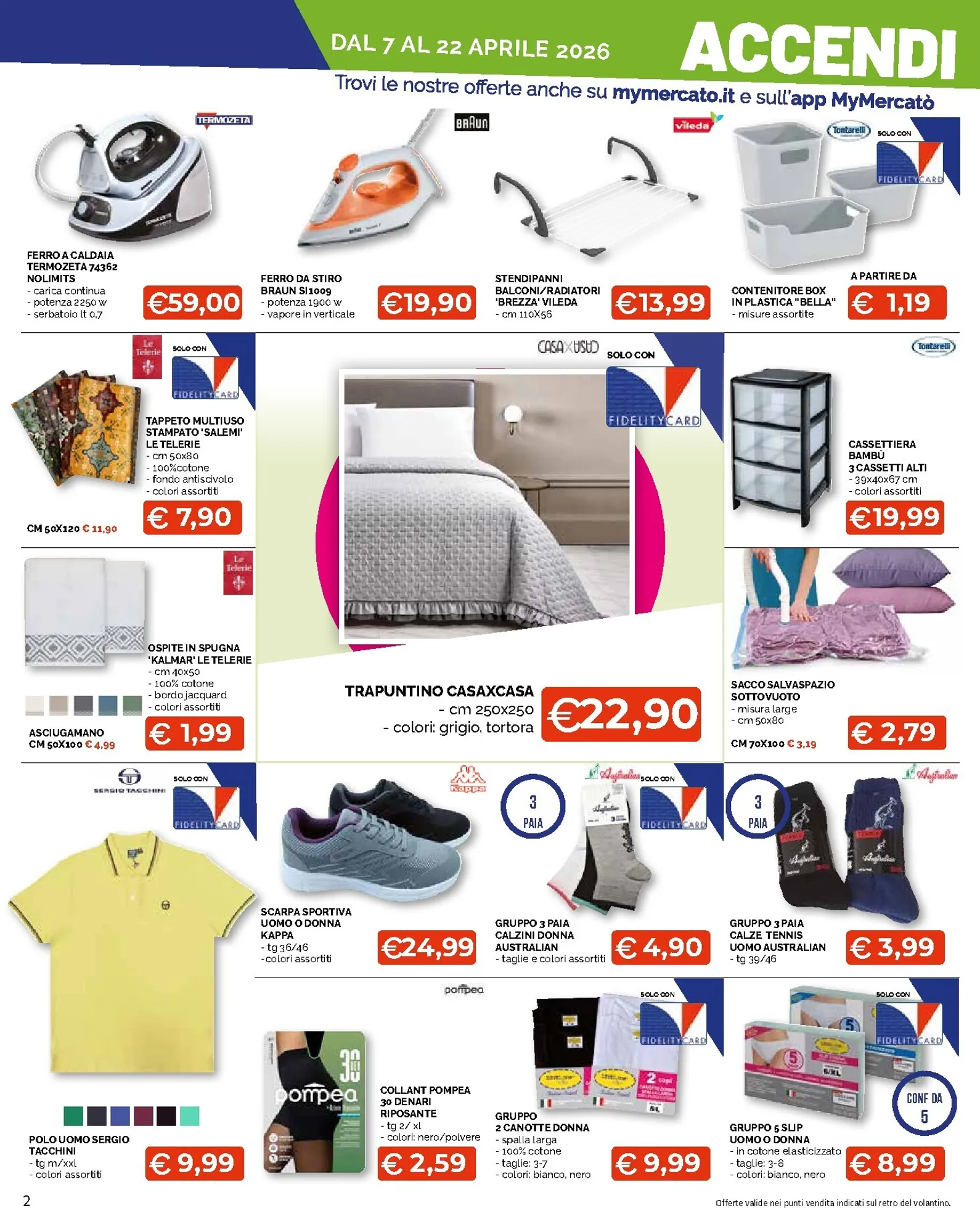Il risparmio si estende all’abbigliamento, con la polo da uomo Sergio Tacchini a soli 9,99€ e le scarpe sportive Kappa a 24,99€. Sono disponibili anche convenienti offerte sull’intimo Pompea e multipack di calze. Per una visione completa di tutte le nuovo offerte, è essenziale consultare il Mercatò Big Volantino dal 07/04/2026 visitando la pagina aggiornata del Mercatò Big Volantino, dove ogni nuovo sconto è a portata di click.