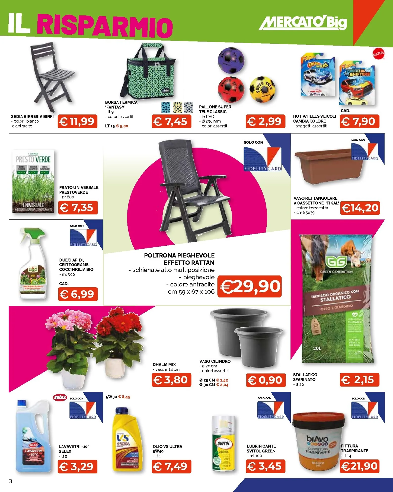 Mercatò Big pensa anche al comfort e allo stile di ogni ambiente. È possibile dare un tocco nuovo alla camera con il trapuntino CasaxCasa a 22,90€, o preparare il giardino con la poltrona pieghevole effetto rattan a 29,90€. Non mancano soluzioni pratiche come il ferro da stiro a vapore Braun a 19,90€ e articoli per il fai-da-te, come la pittura traspirante Bravo a 21,90€.