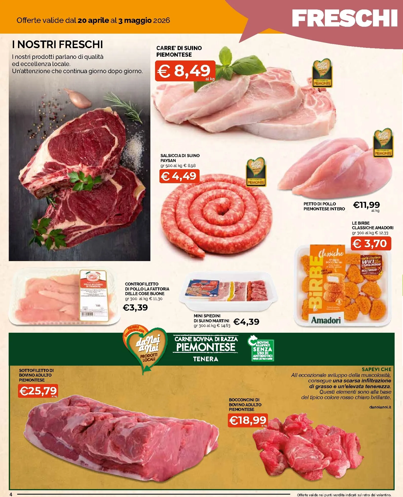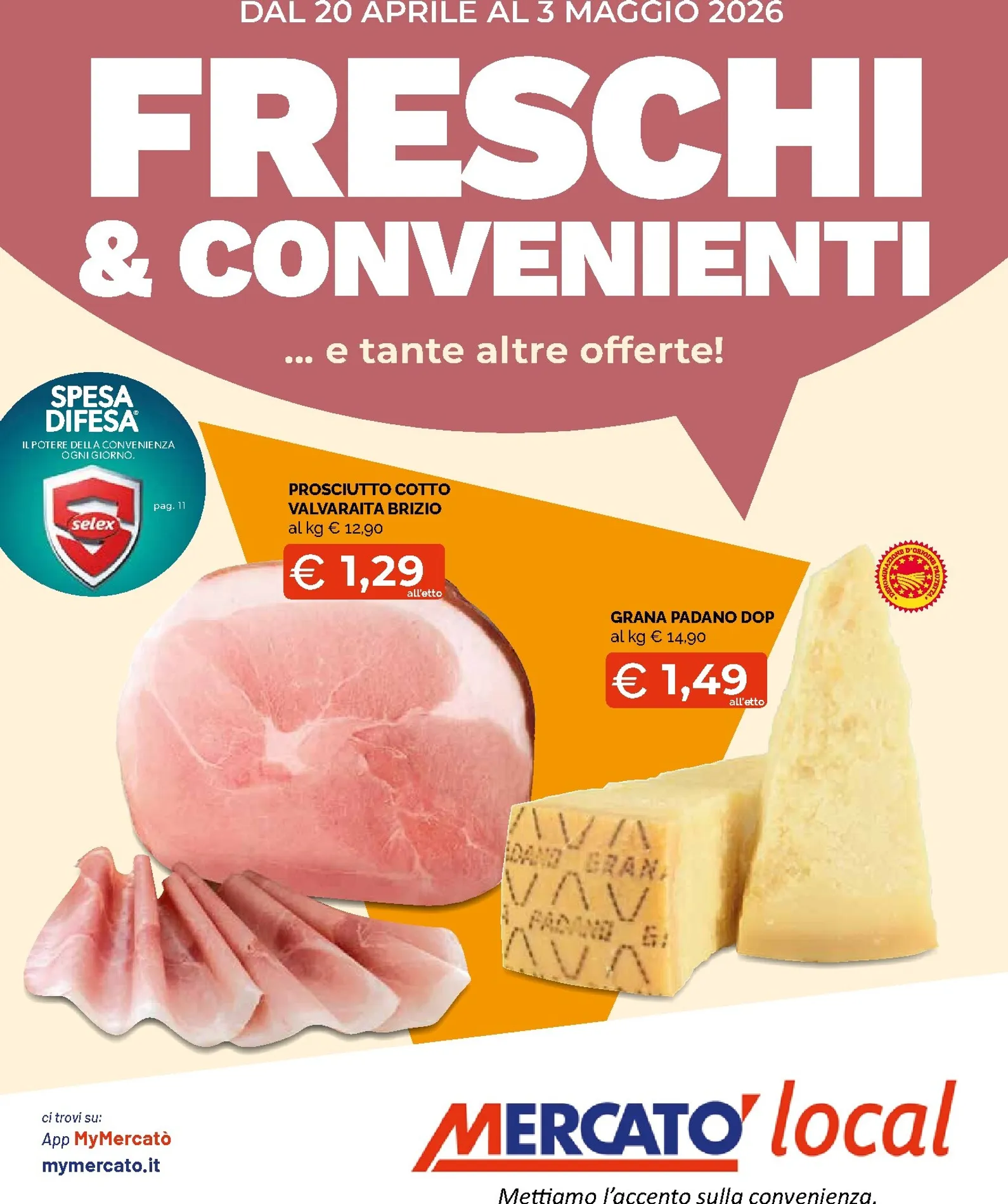 Completano le proposte soluzioni per pasti veloci come la Fesa di Tacchino arrosto a 1,49 € l’etto e gli Involtini Tonnati a 1,09 € l’etto. Questo volantino è ricco di opportunità per una spesa completa e vantaggiosa. Per esplorare ogni dettaglio, Mercatò Local Volantino dal 20/04/2026 è lo strumento perfetto da consultare. Scopri tutte le occasioni sfogliando il Mercatò Local Volantino ufficiale.