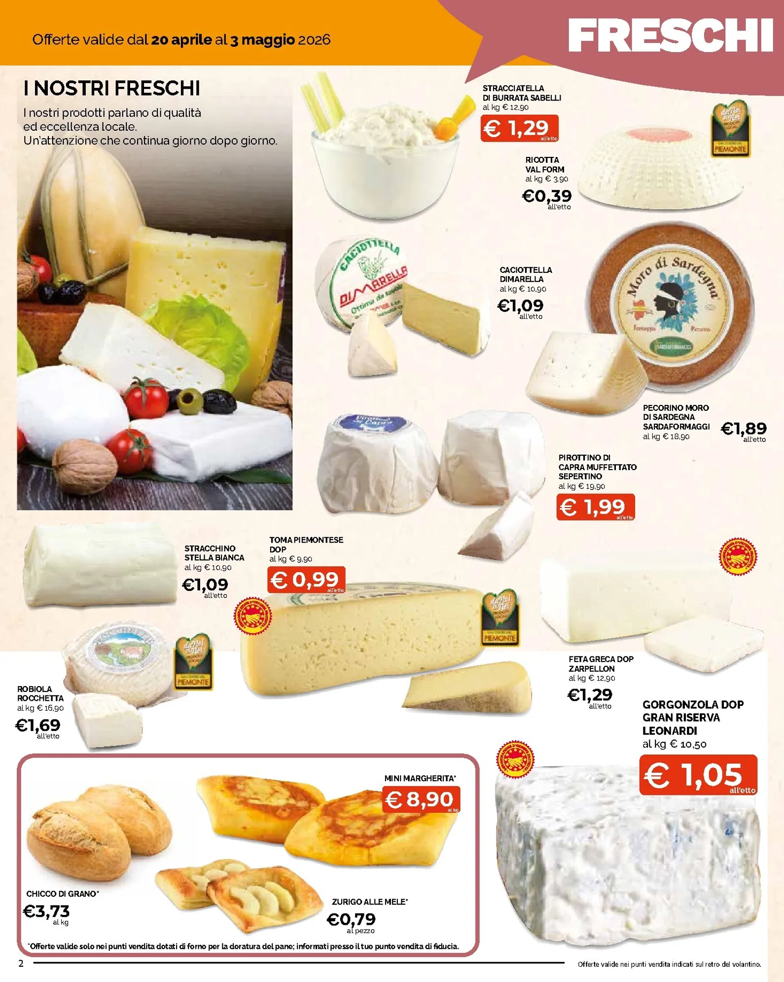 Il viaggio nel gusto prosegue con formaggi imperdibili come la Toma Piemontese a 0,99 € l’etto e il Gorgonzola DOP Gran Riserva a 1,05 € l’etto. Anche il reparto salumi offre eccellenze come il Prosciutto Crudo San Daniele DOP a 2,69 € l’etto e la Mortadella IGP Granducato all’incredibile prezzo di 0,89 € l’etto. Tante offerte per arricchire la tavola con prodotti genuini.