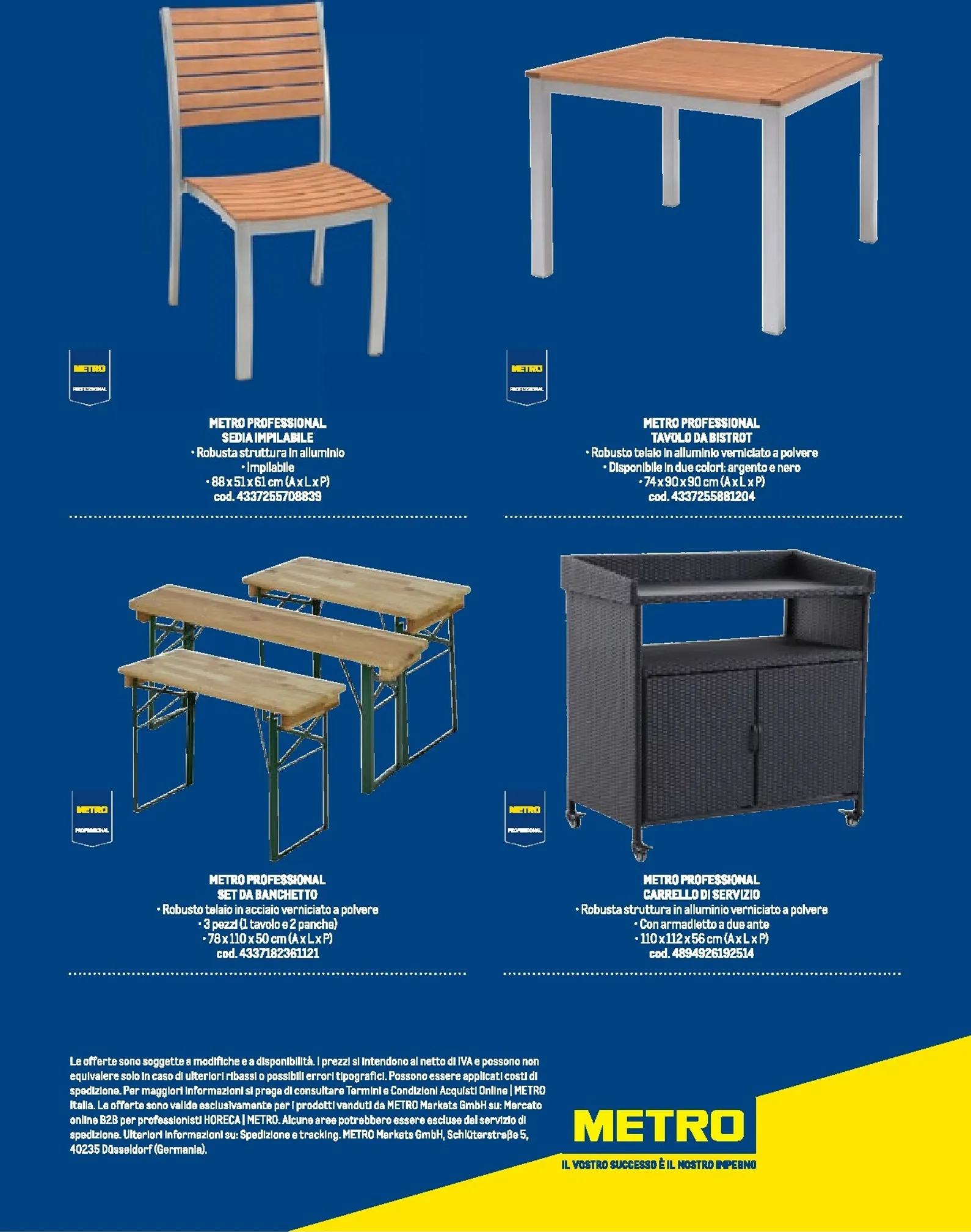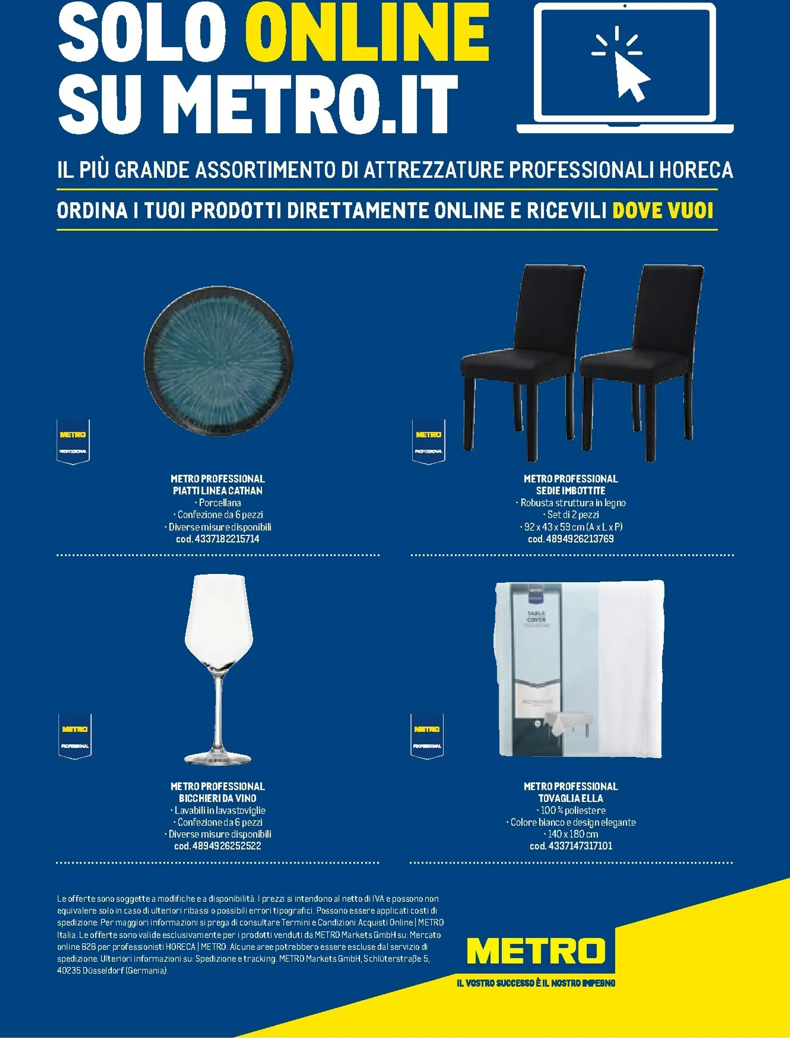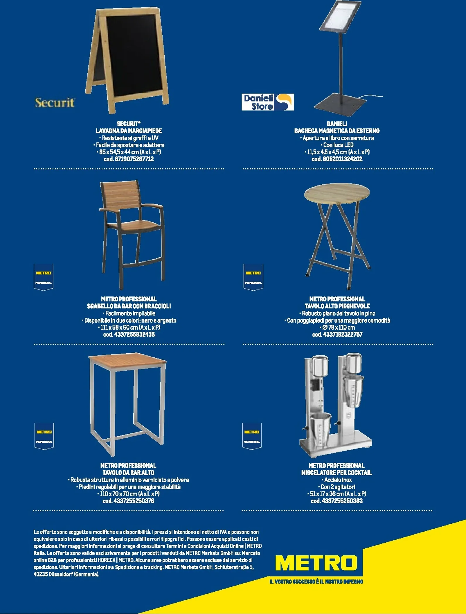 Questo catalogo è uno strumento completo, che estende la sua offerta ad arredi, attrezzature e accessori. È una guida preziosa per professionisti in cerca di qualità e convenienza. Sfruttare al meglio Metro Volantino dal 01/01/2026 significa accedere a un mondo di soluzioni per il proprio business. Per non perdere le ultime catalogo e offerte, visitate la nostra sezione dedicata al Metro Volantino, dove troverete sempre le migliori opportunità.