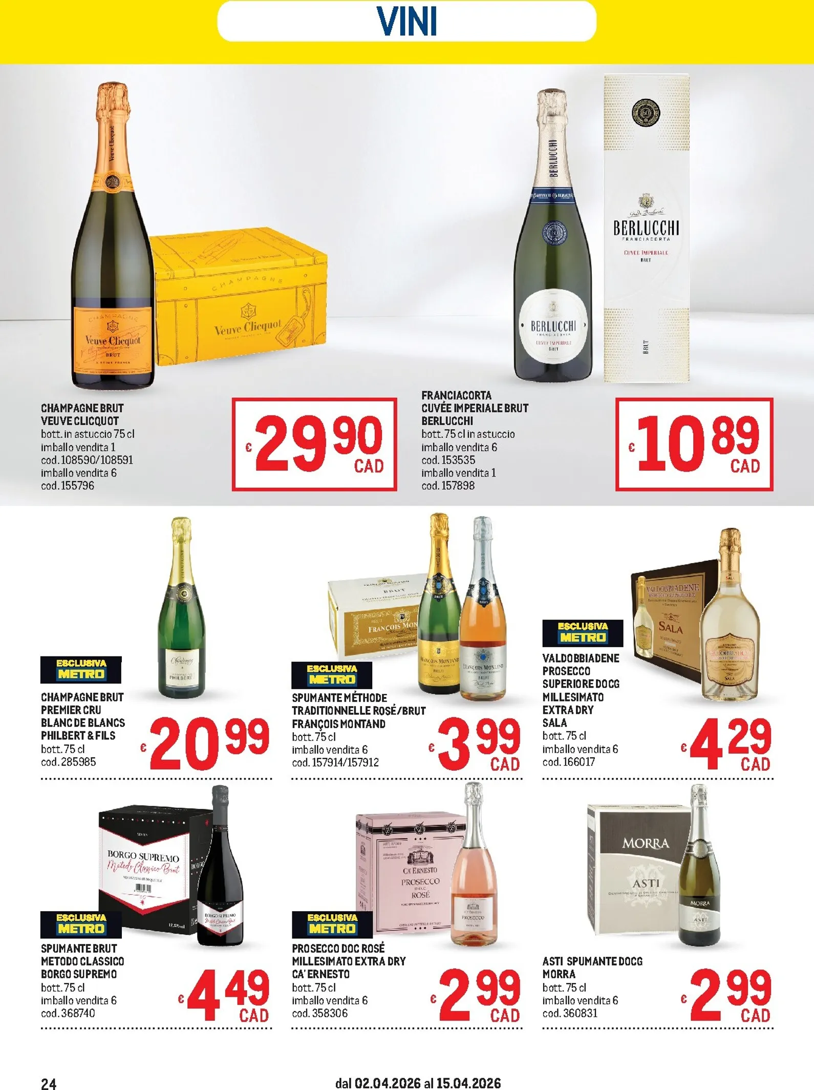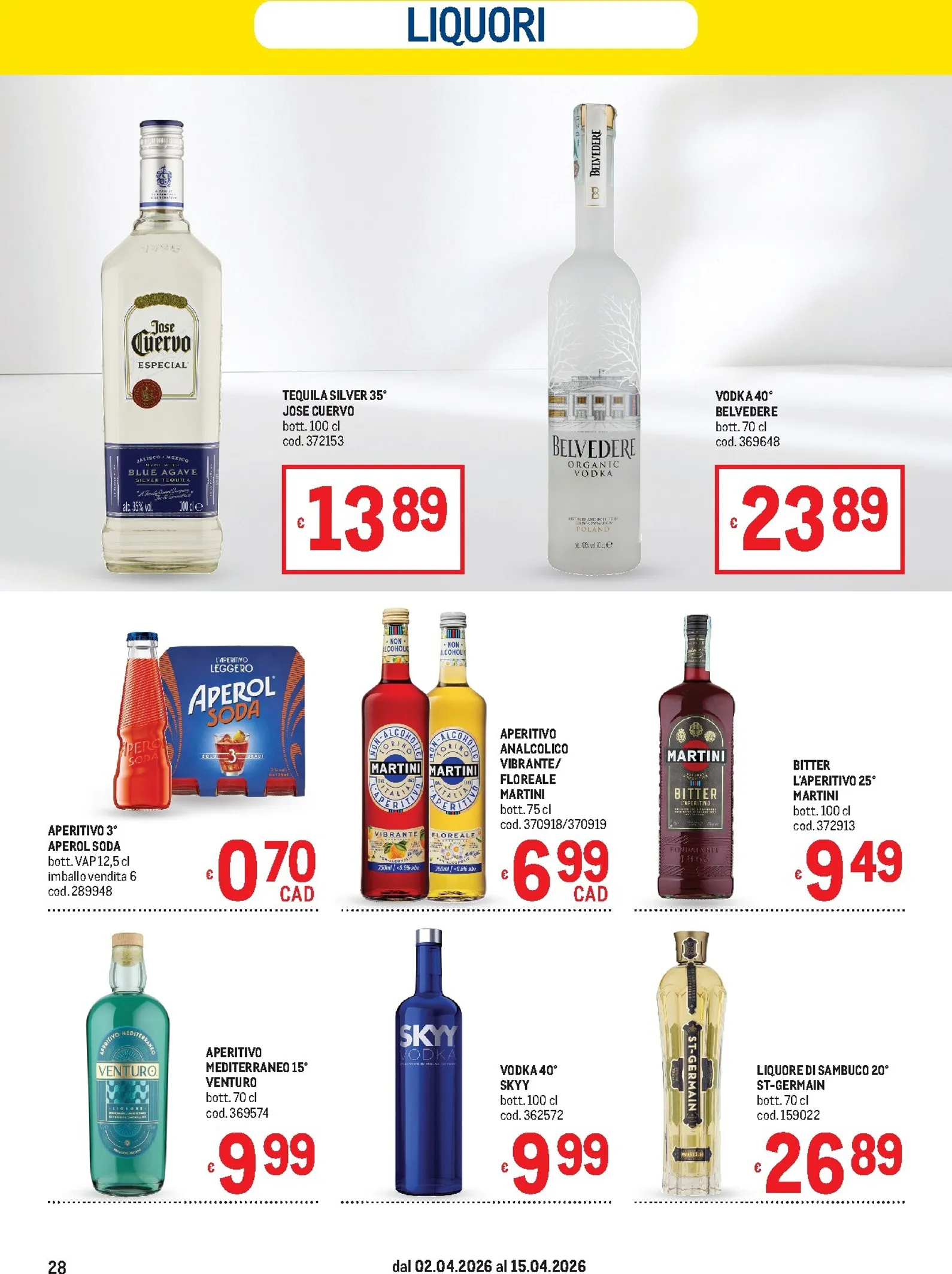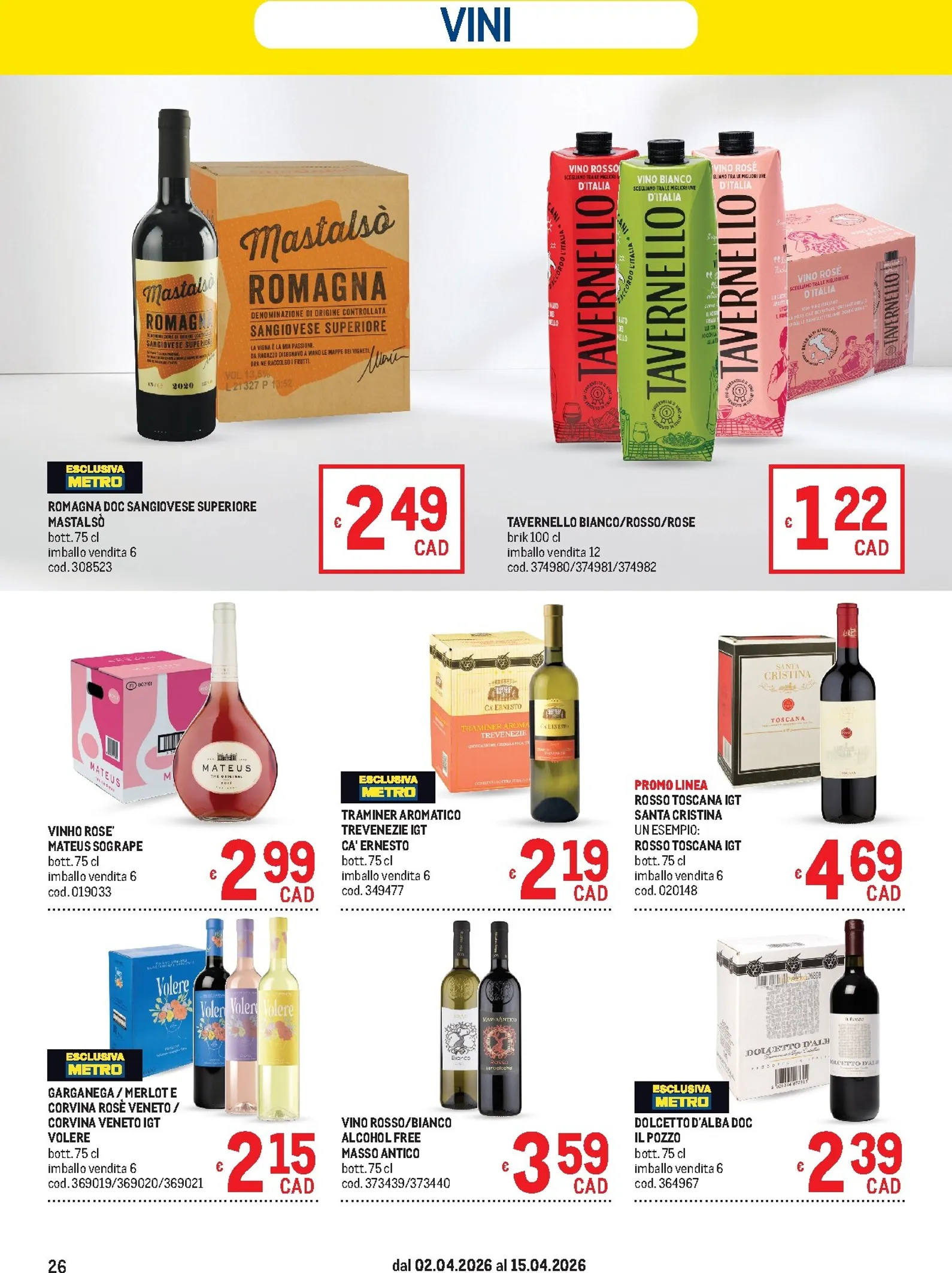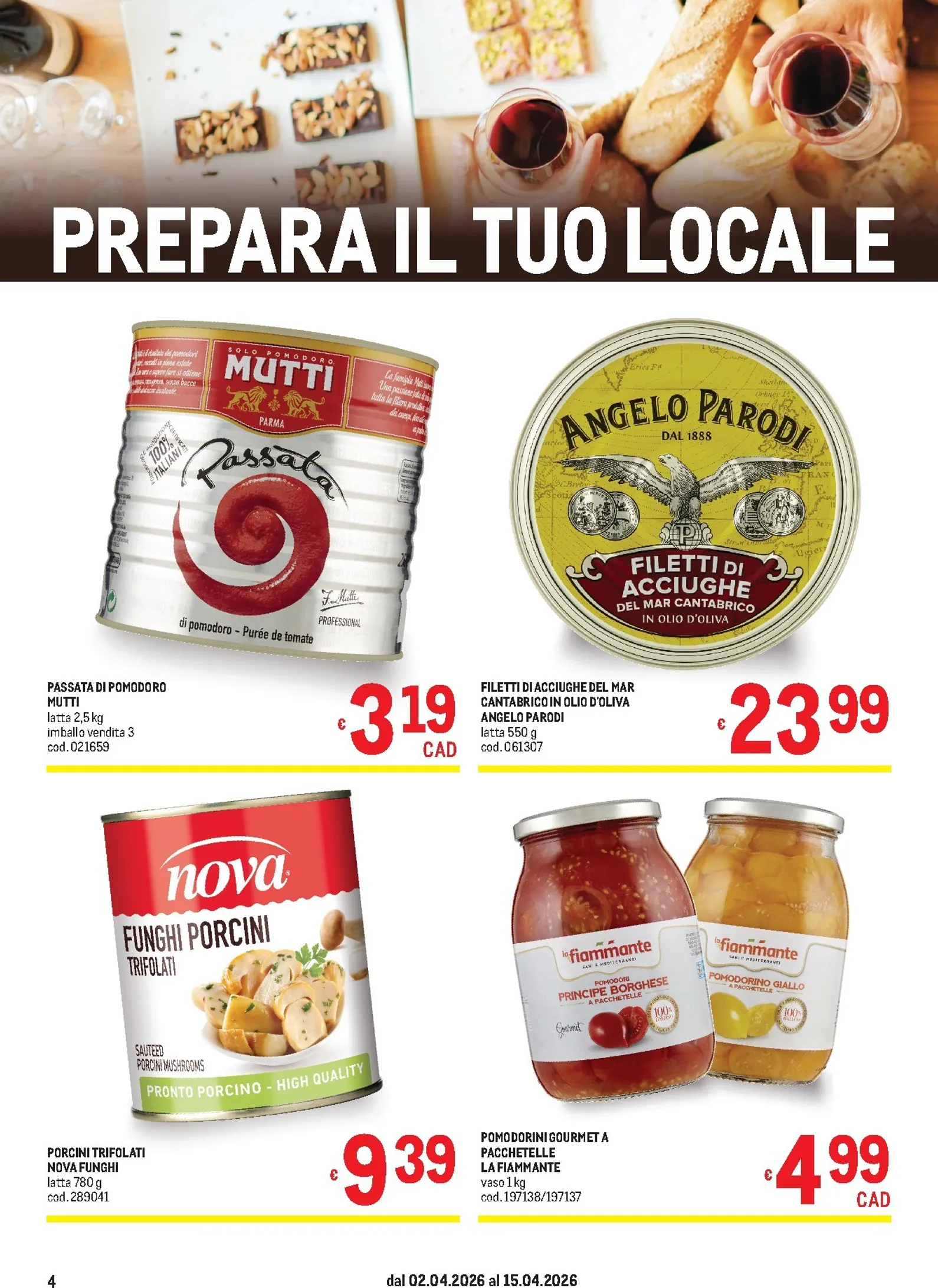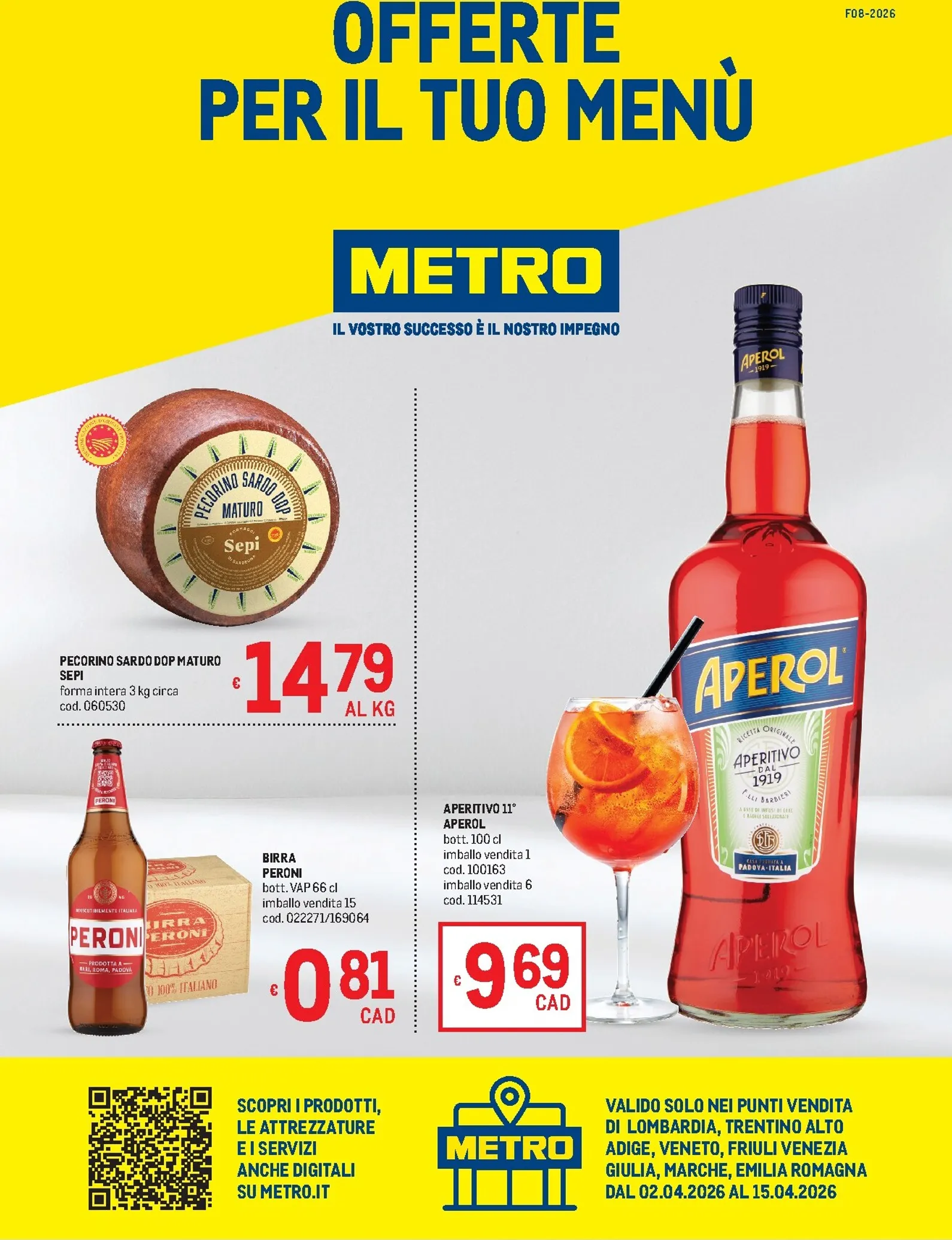 Scopri le nuove offerte del volantino Metro, valide dal 2 al 15 aprile 2026, pensate per i professionisti Horeca. È l’occasione perfetta per arricchire il menù. In primo piano, il Pecorino Sardo DOP a 14,79€ al kg e l’intramontabile Aperol a 9,69€. Queste Metro Volantino dal 02/04/2026 sono state selezionate per supportare il tuo successo, garantendo ingredienti eccellenti a prezzi vantaggiosi come la birra Peroni a 0,81€.