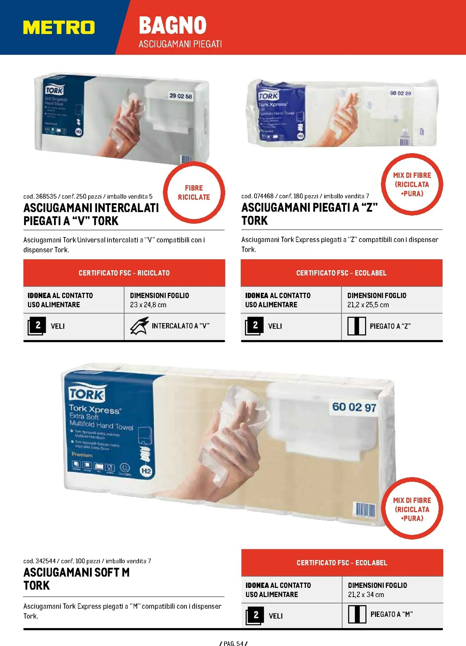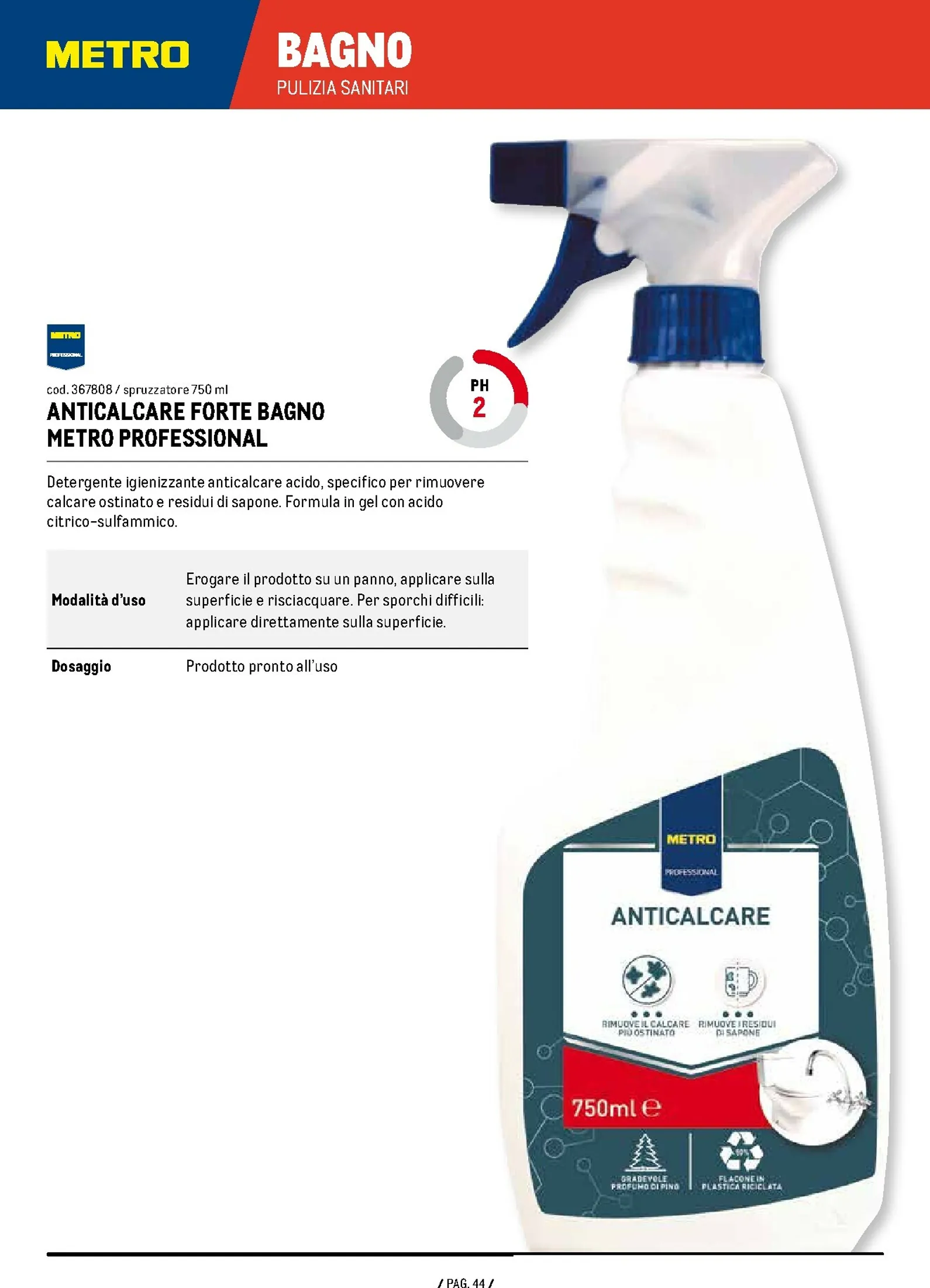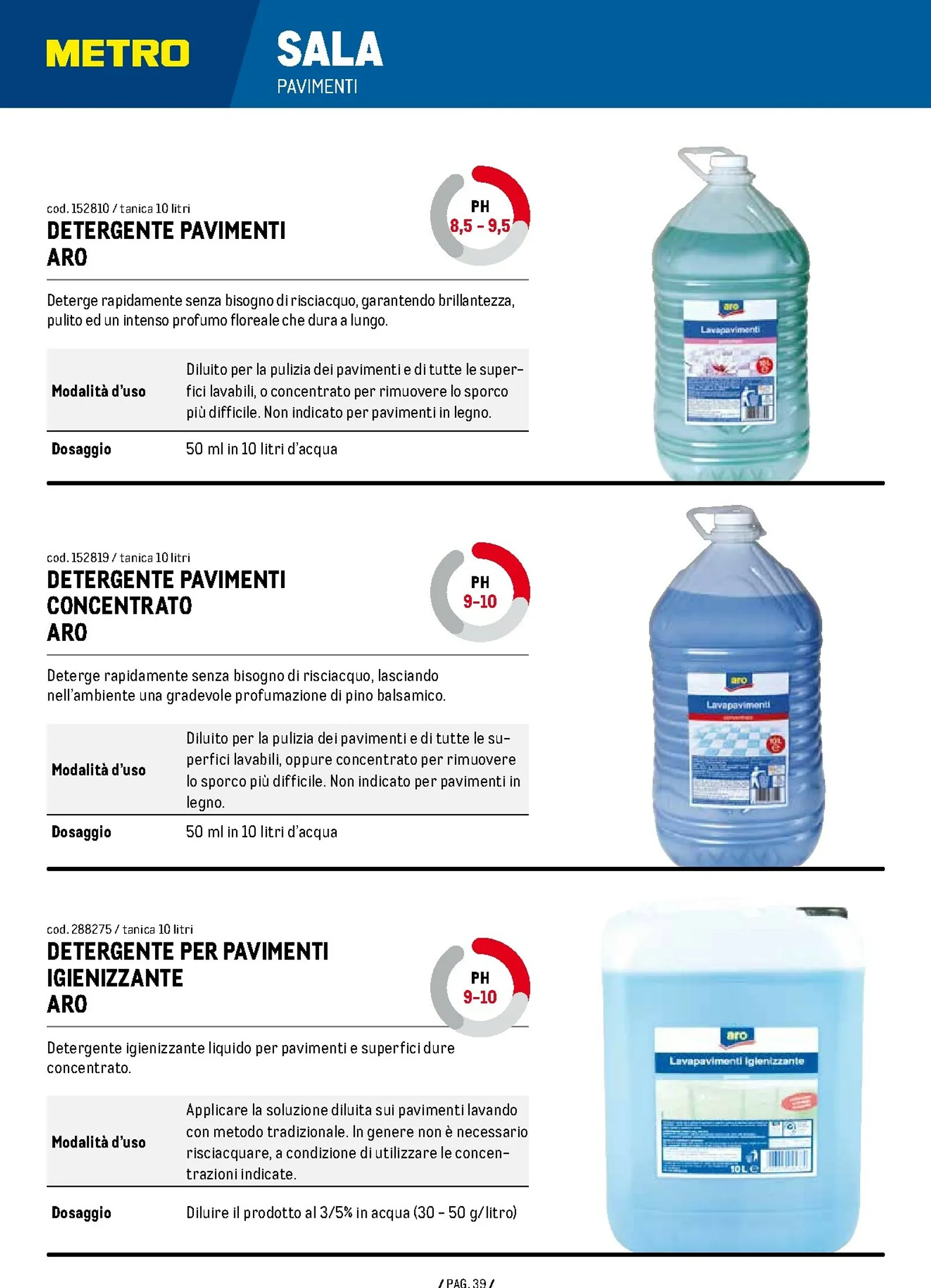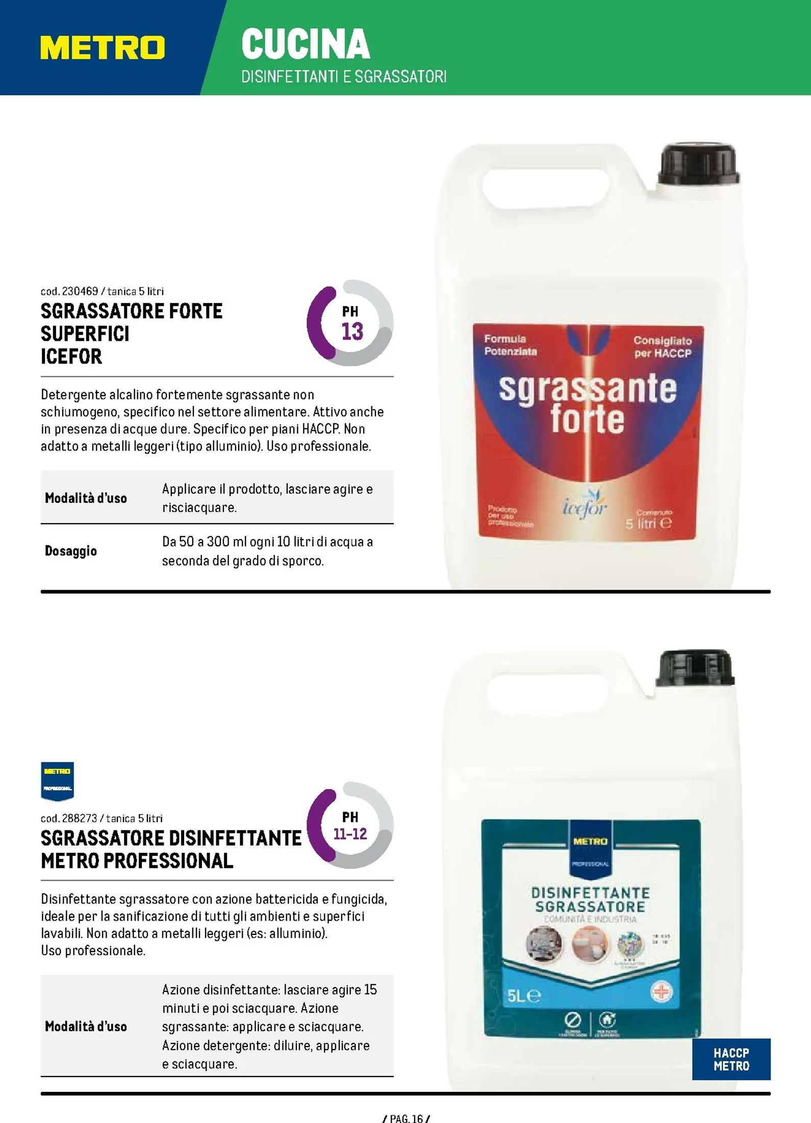 Tra le pagine si trovano offerte su prodotti ad alte prestazioni, come il Detergente Lavastoviglie ARO con pH 13, perfetto contro lo sporco difficile, e il Cloroattivo Metro Professional. Metro promuove anche la sostenibilità attraverso la linea certificata Ecolabel UE, che unisce efficacia pulente e ridotto impatto ambientale. Queste soluzioni sono ideali per chi cerca performance professionali nel rispetto del pianeta e della salute.