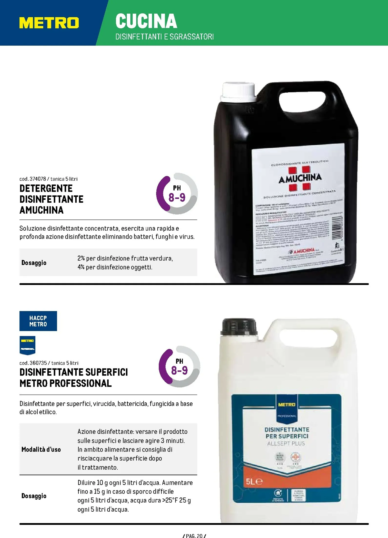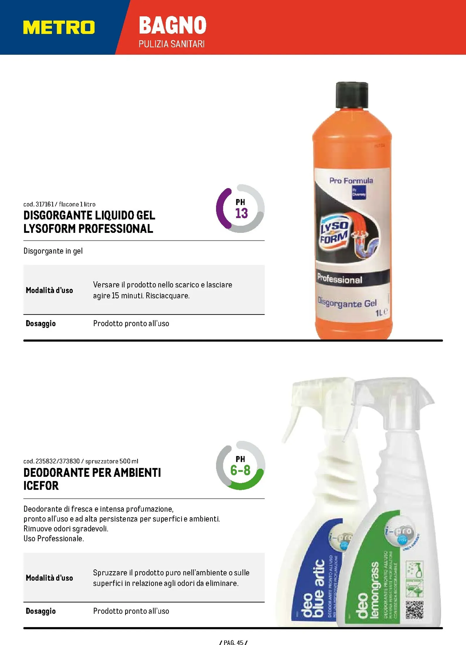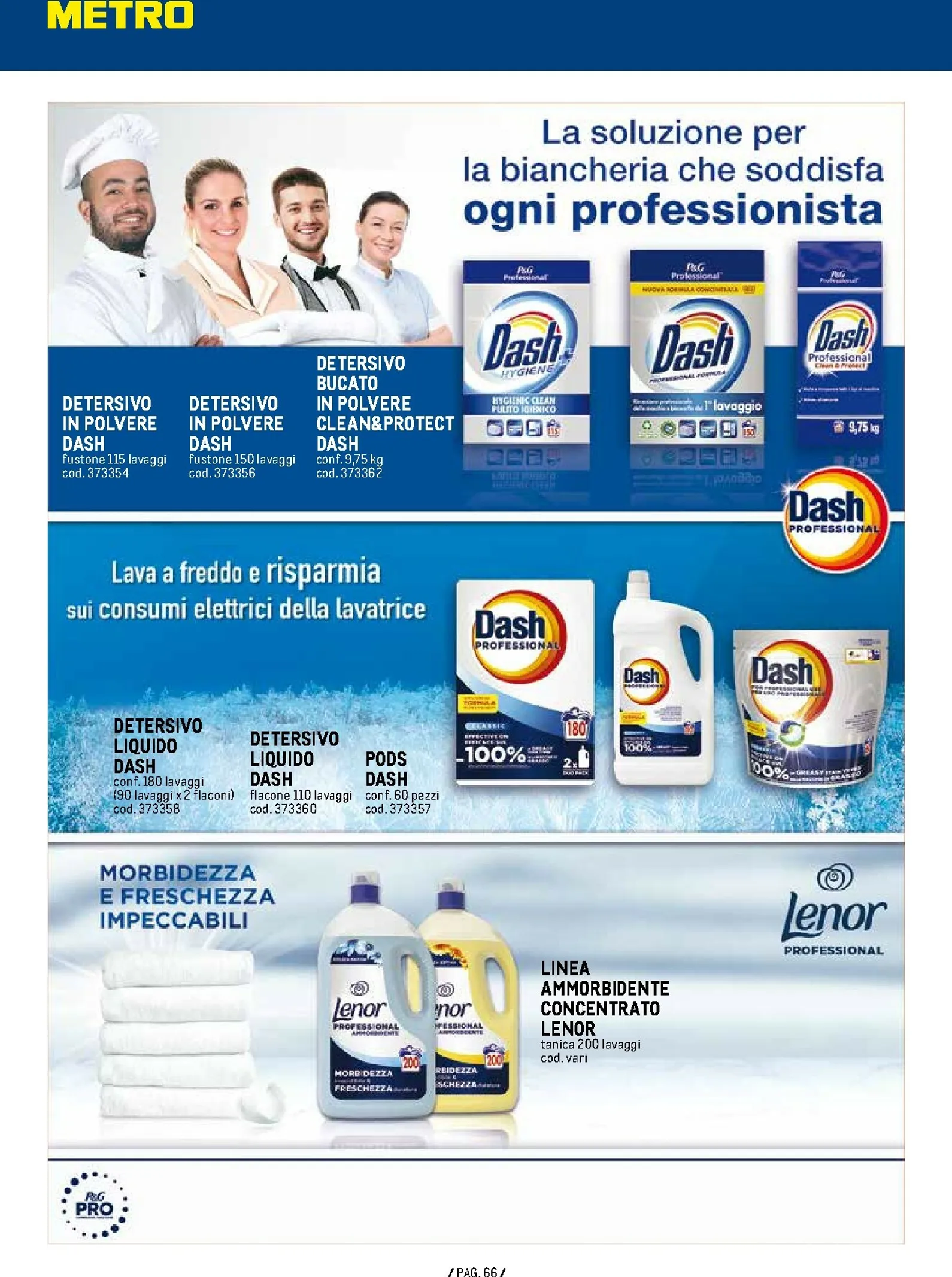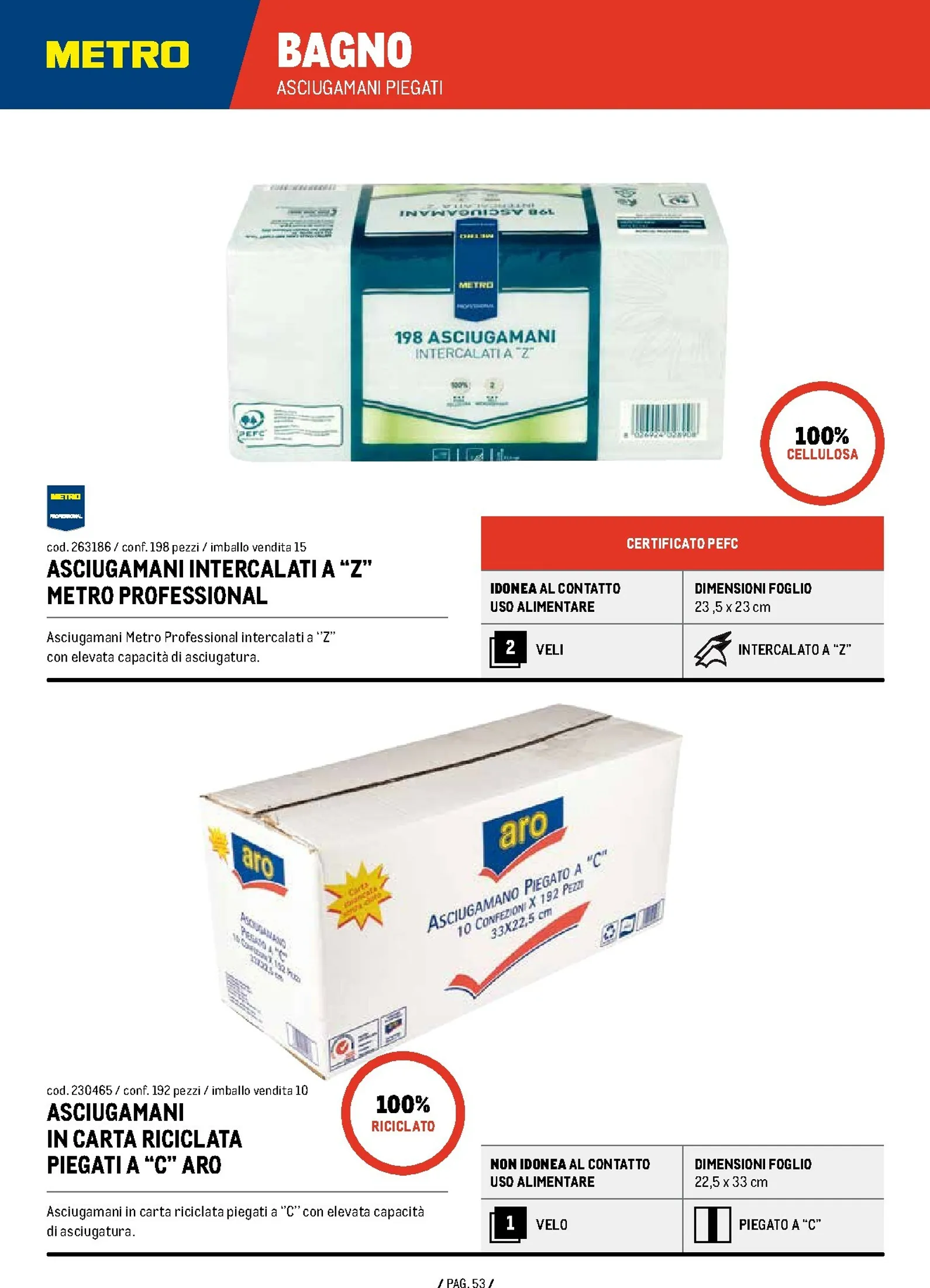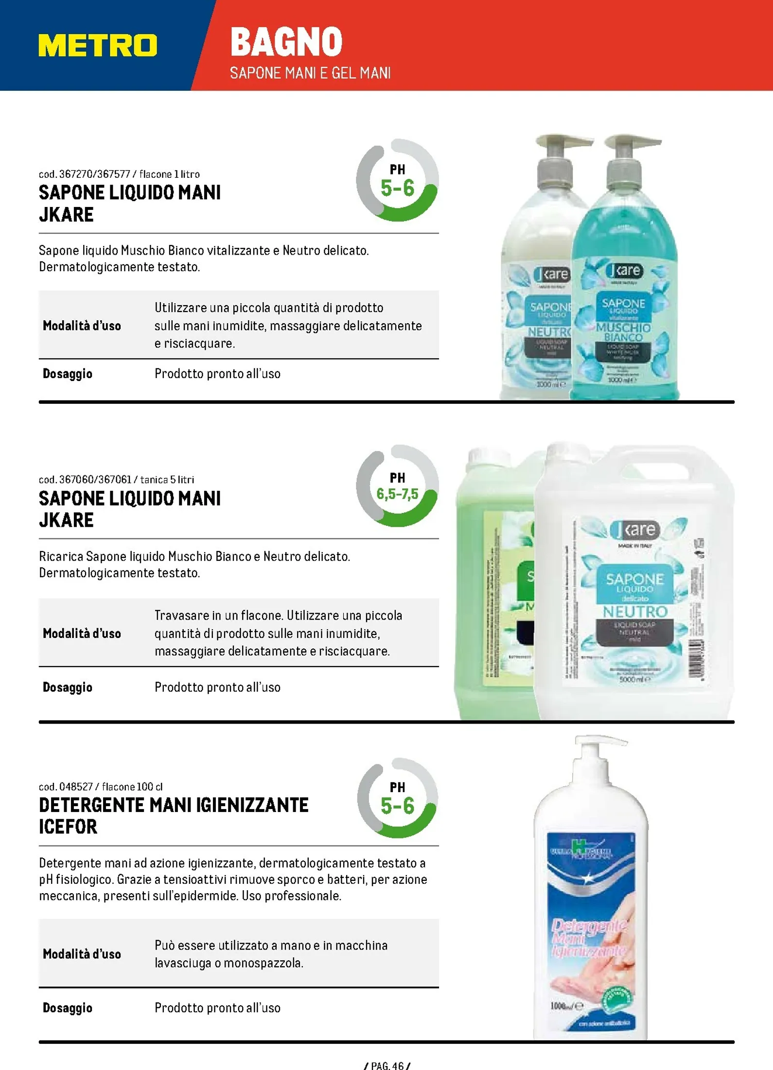 Tra le pagine si trovano offerte su prodotti ad alte prestazioni, come il Detergente Lavastoviglie ARO con pH 13, perfetto contro lo sporco difficile, e il Cloroattivo Metro Professional. Metro promuove anche la sostenibilità attraverso la linea certificata Ecolabel UE, che unisce efficacia pulente e ridotto impatto ambientale. Queste soluzioni sono ideali per chi cerca performance professionali nel rispetto del pianeta e della salute.
