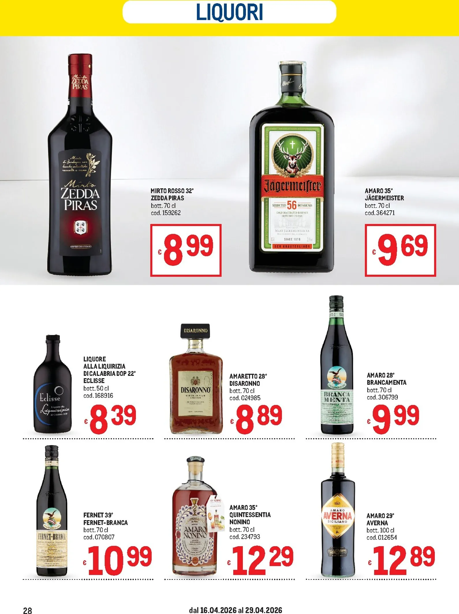 La selezione di bevande è pensata per ogni momento. Per i brindisi più eleganti, lo Champagne Moët & Chandon Brut è in offerta a 26,49 €. Per l’aperitivo, l’iconico Bitter Campari è disponibile a 12,79 €, mentre le lattine di Red Bull a 0,82 € offrono la giusta carica. Non manca il Prosecco Sala Extra Dry a 3,49 €, perfetto per cocktail frizzanti. Queste offerte sono ideali per arricchire la tua carta dei vini e dei drink con prodotti di grande richiamo a prezzi competitivi.