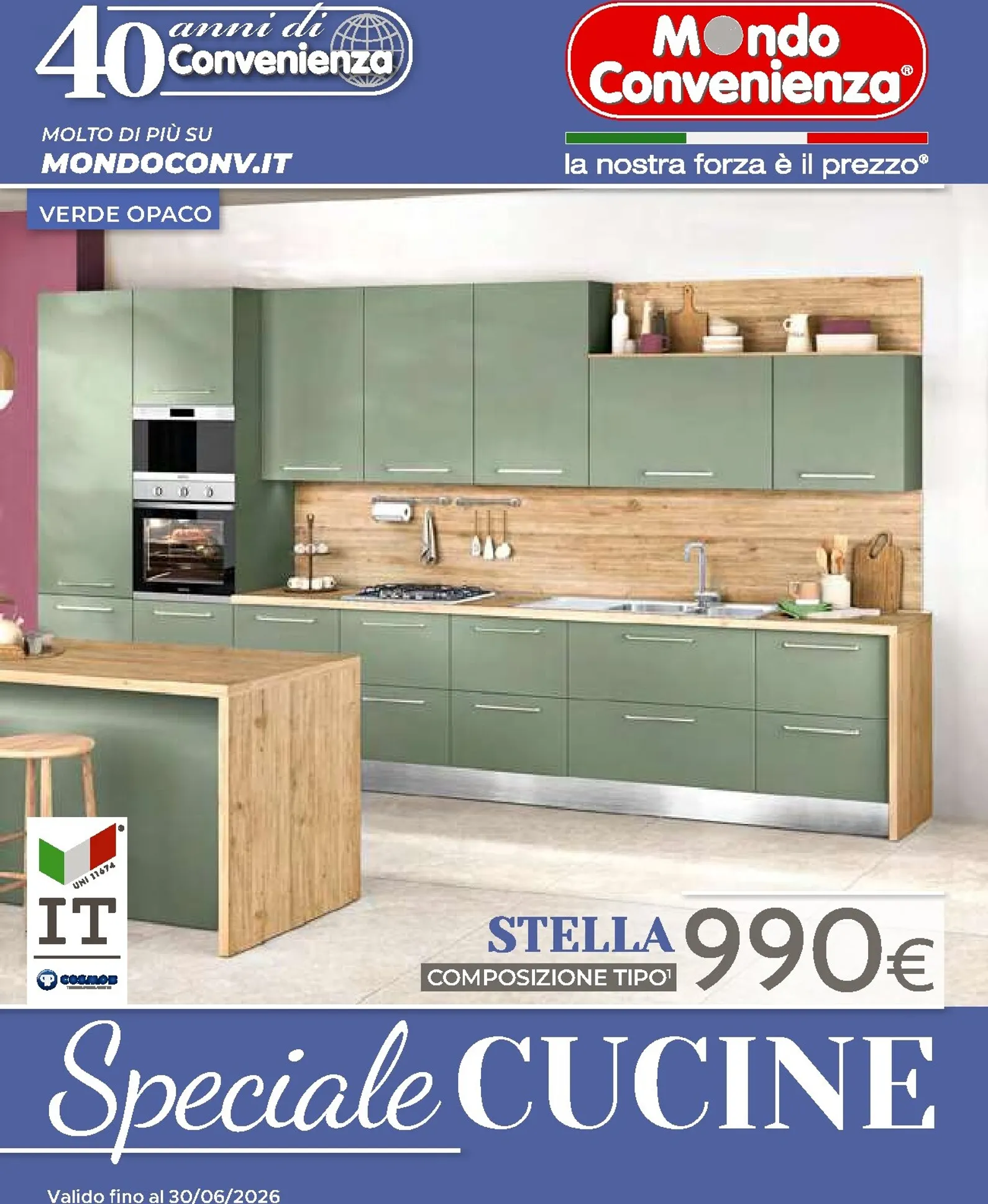 Mondo Convenienza presenta il suo “Speciale Cucine”, un’occasione unica per rinnovare il cuore della casa con stile e convenienza. Le catalogo e offerte, valide dal 1° aprile fino al 30 giugno 2026, sono pensate per trasformare ogni desiderio in realtà. Sfogliando il nuovo catalogo, è facile trovare la soluzione perfetta per i propri spazi, e grazie a Mondo Convenienza Volantino dal 01/04/2026 l’arredamento dei sogni diventa finalmente un progetto concreto e accessibile, unendo qualità e un prezzo imbattibile.