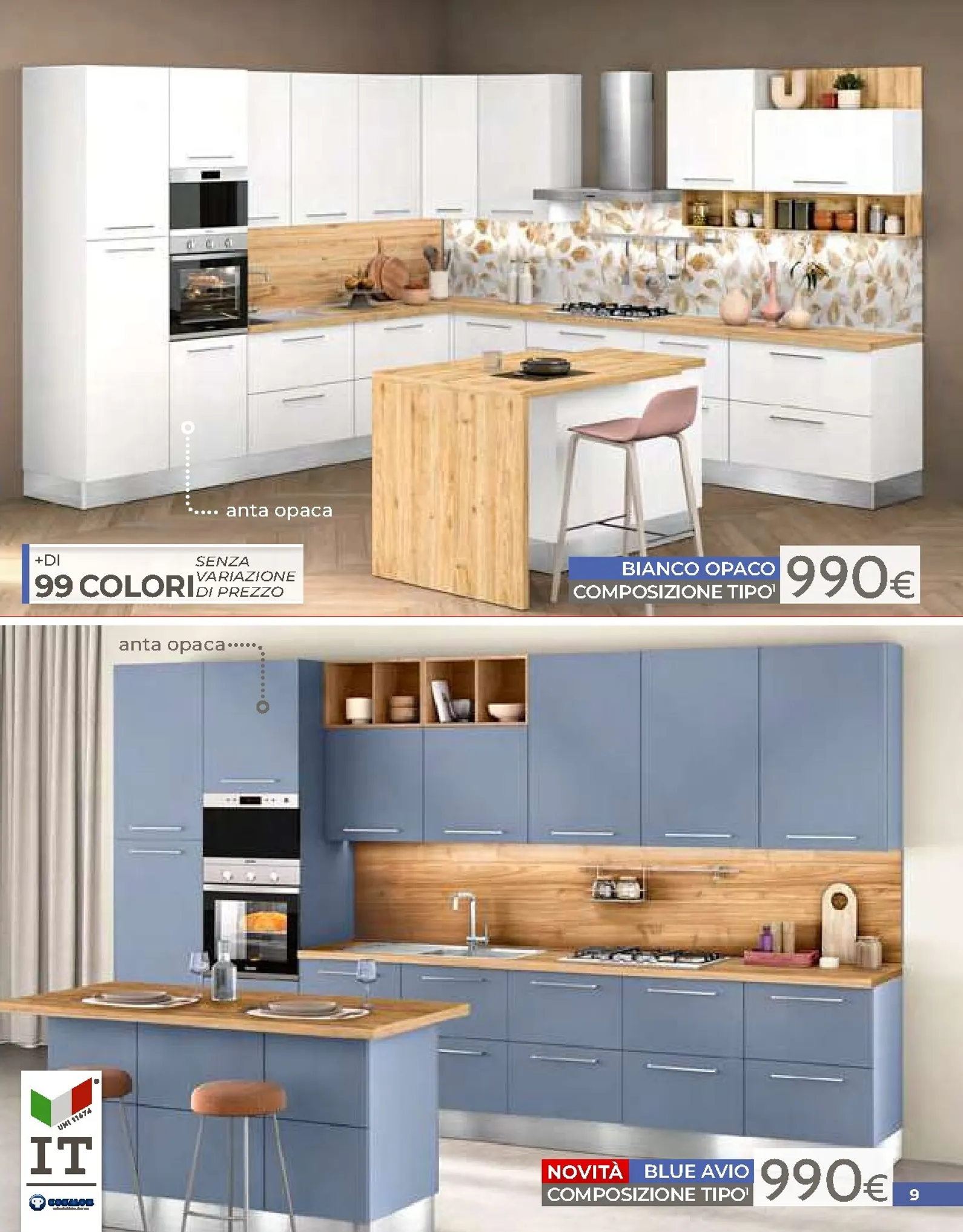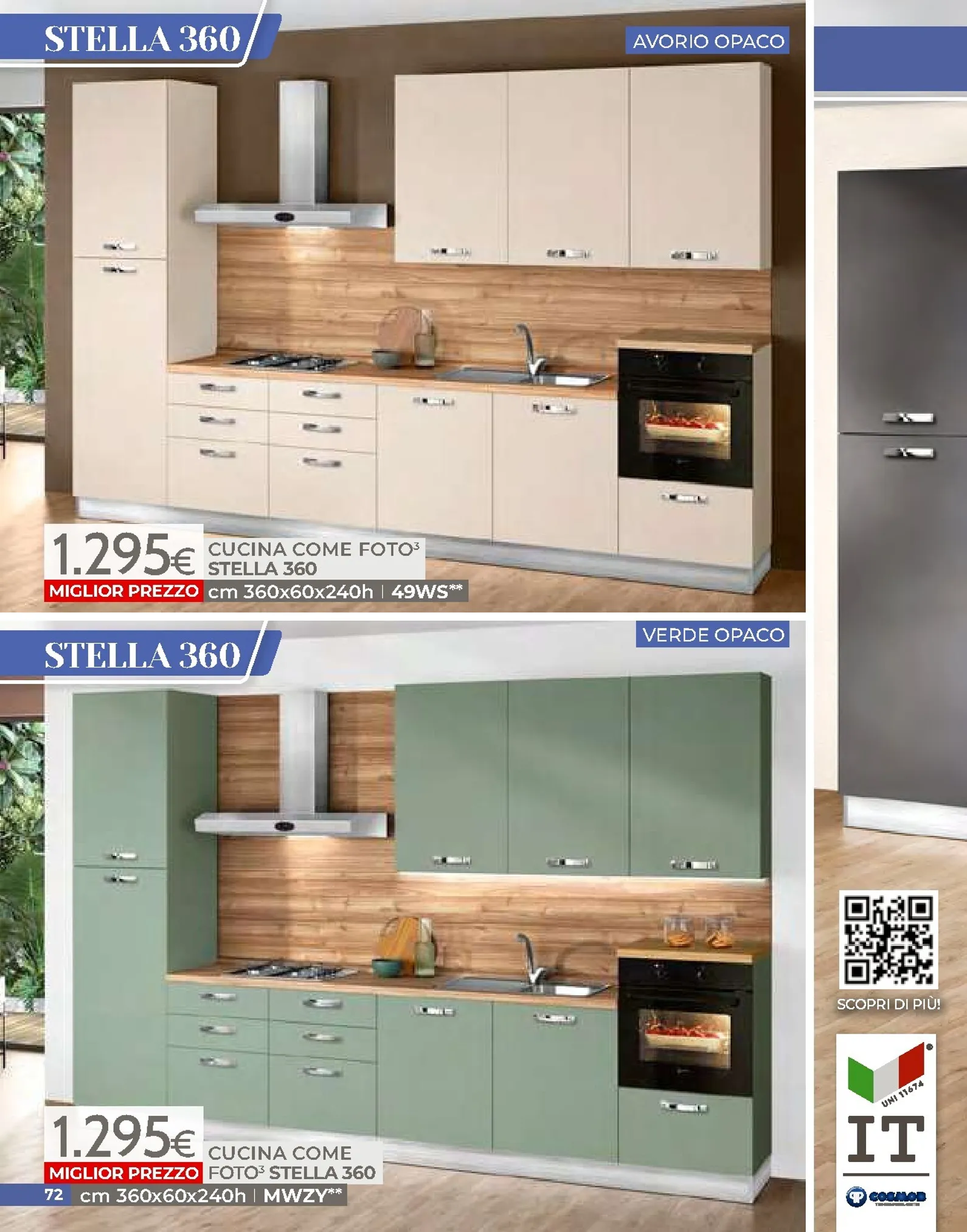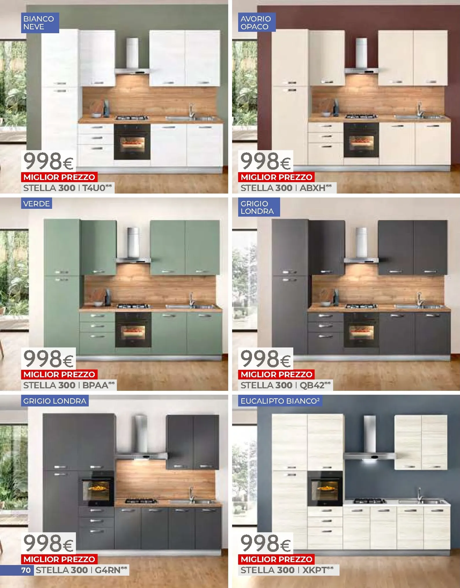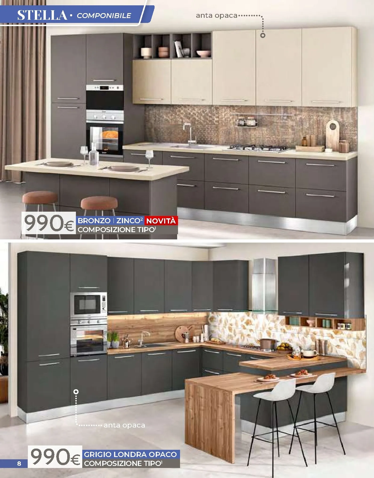 Tra le proposte spiccano modelli dal design contemporaneo e accattivante. La cucina Stella, nella sua elegante finitura Verde Opaco, è disponibile a soli 990€ per la composizione tipo, unendo estetica e funzionalità. Per chi cerca una novità assoluta, la cucina Selly in Rosa Retrò Opaco a 1.070€ offre un tocco di originalità e calore. Entrambe le soluzioni vantano la qualità e lo stile del design italiano, garantendo un ambiente accogliente, moderno e pratico per la vita di tutti i giorni.