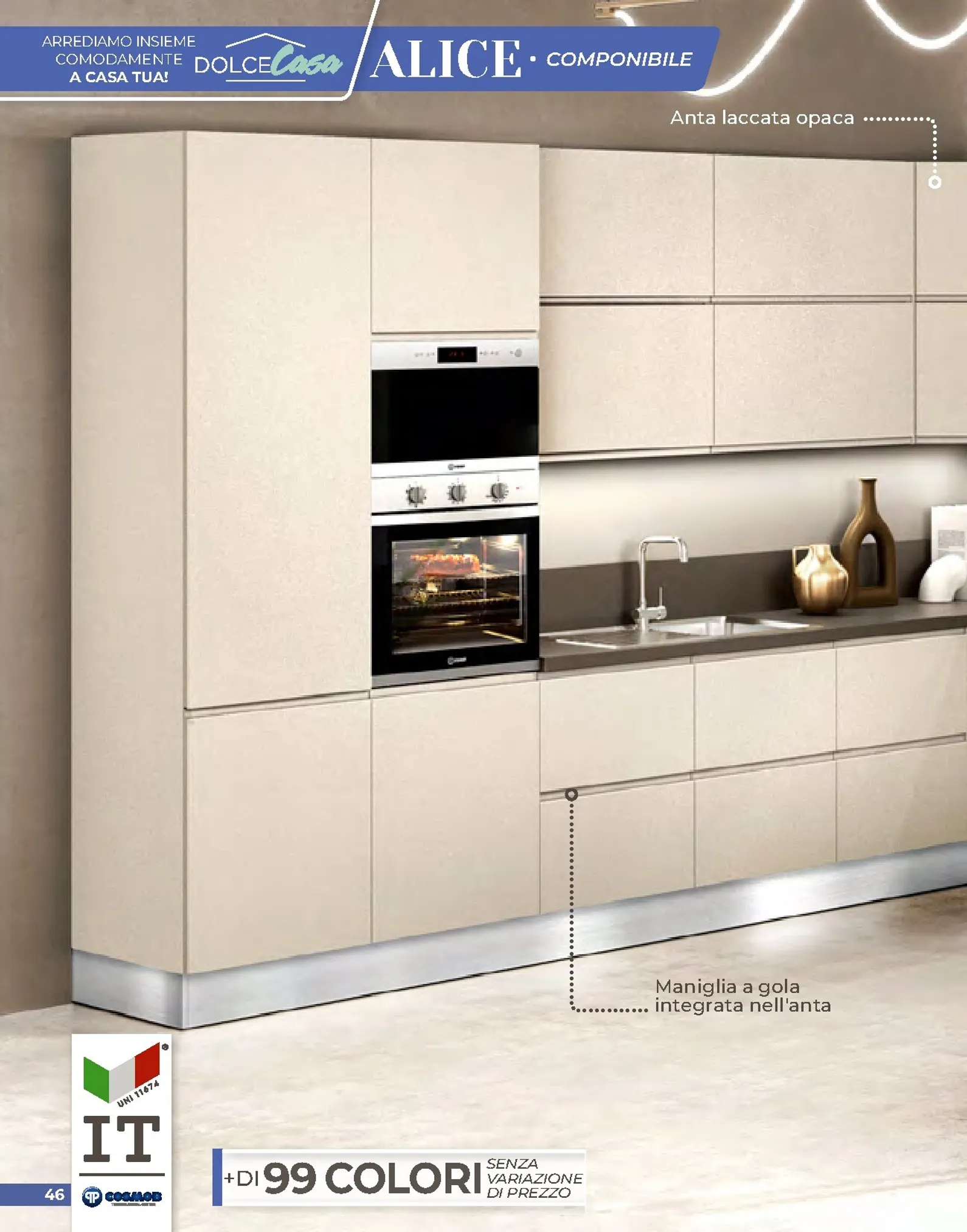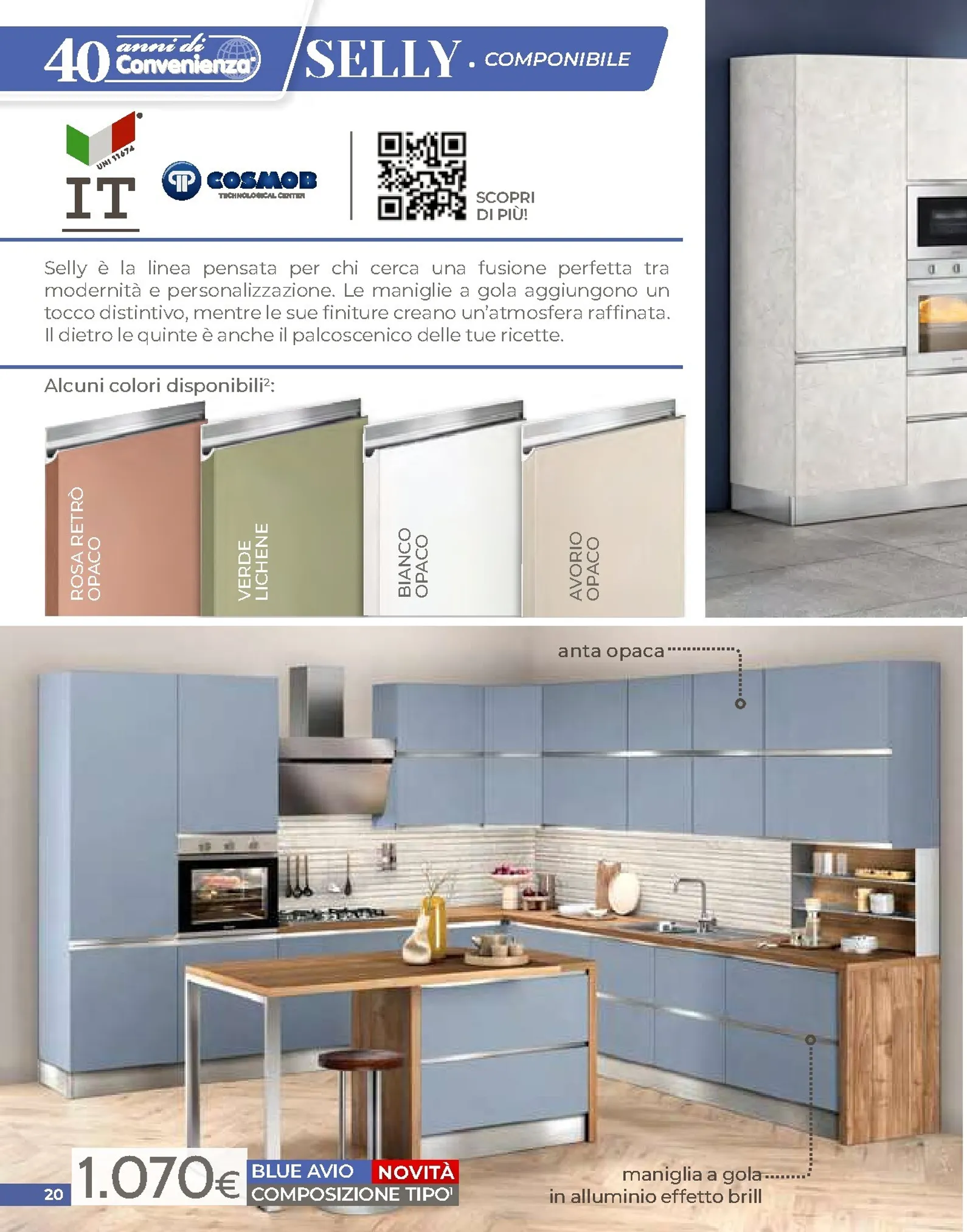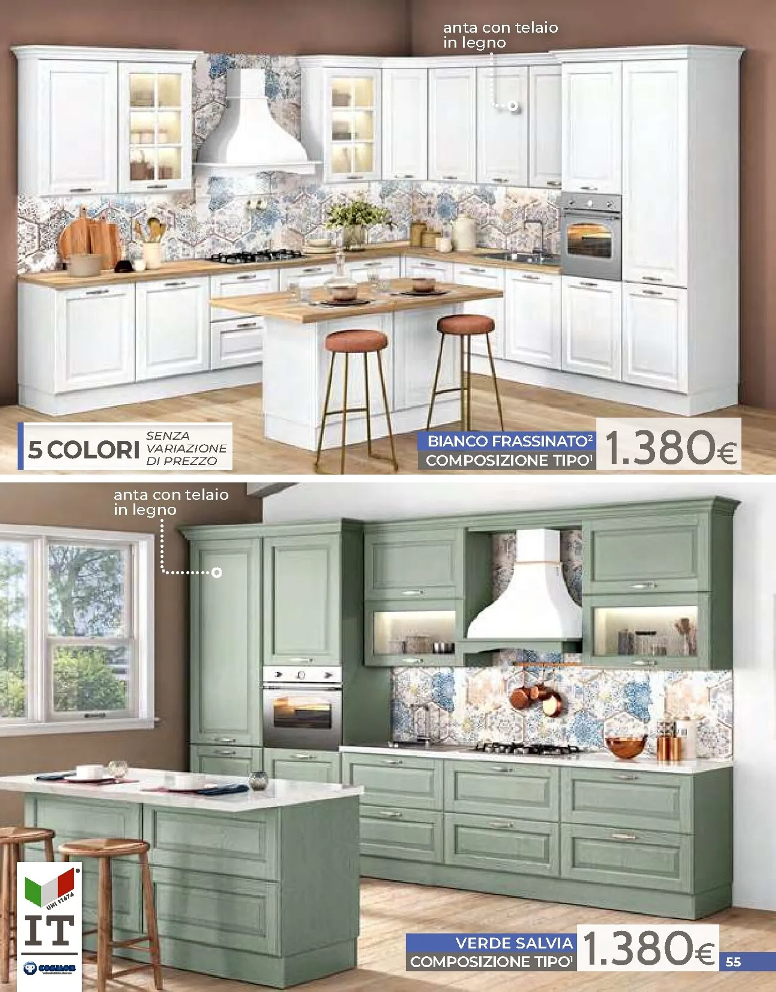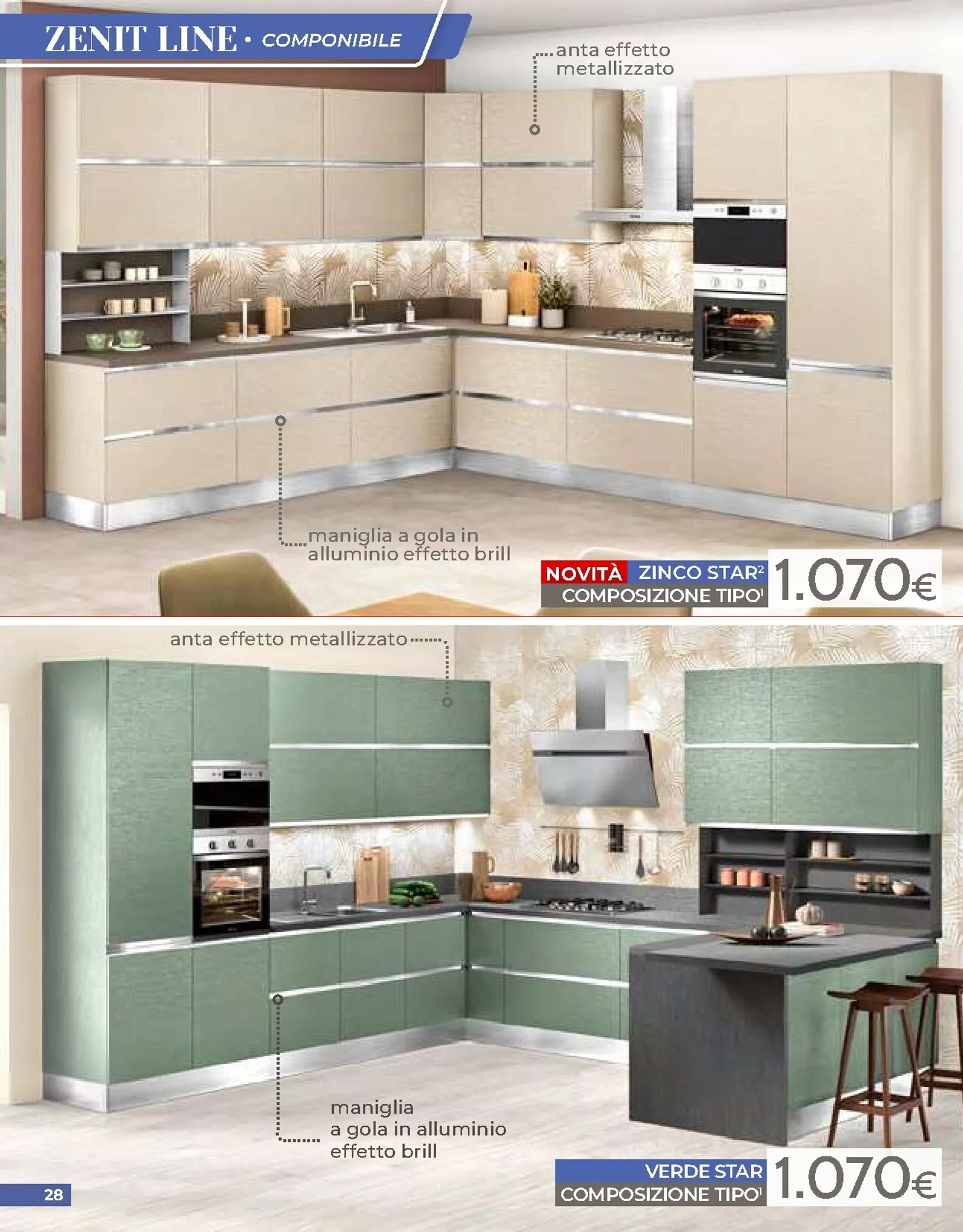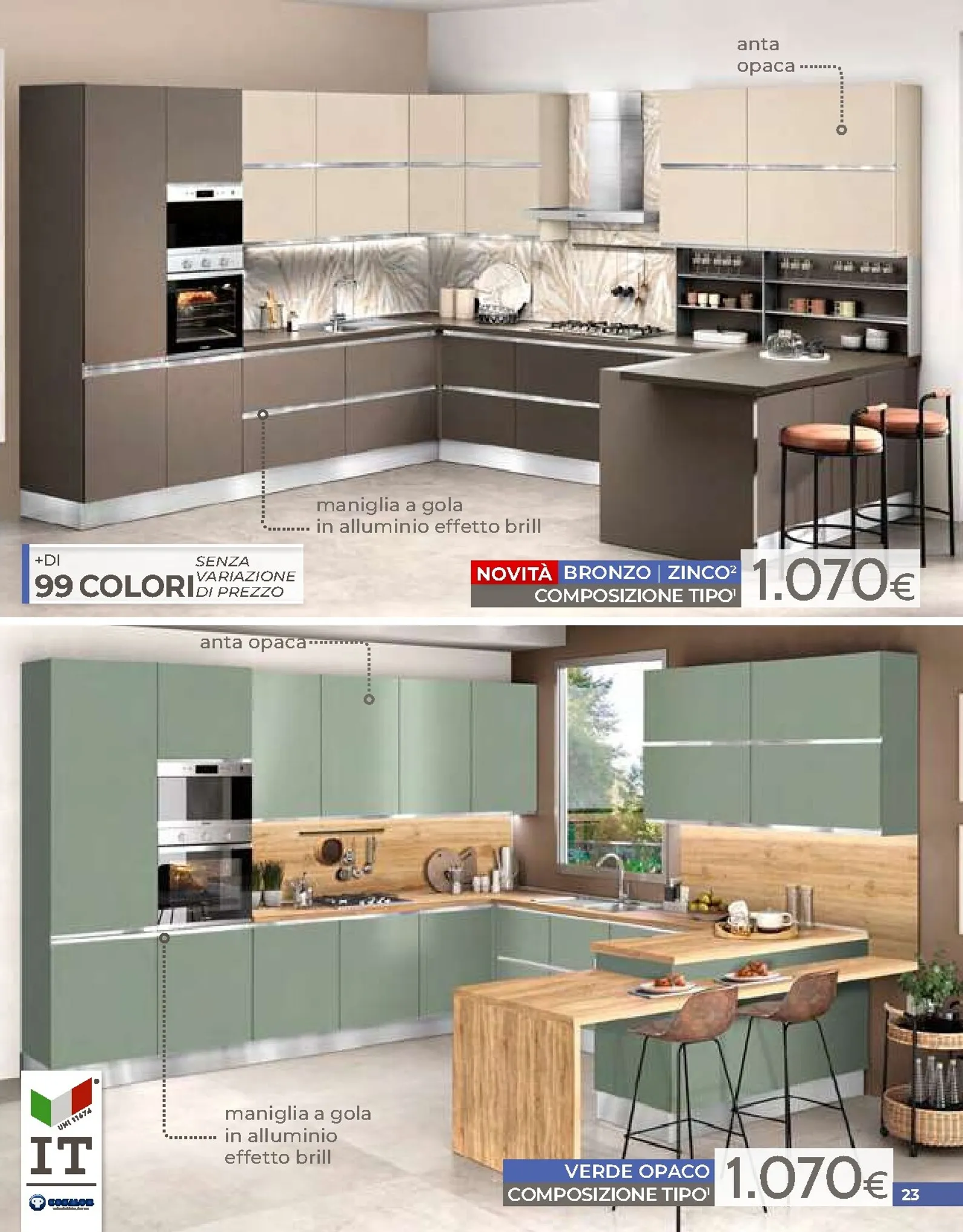 Tra le proposte spiccano modelli dal design contemporaneo e accattivante. La cucina Stella, nella sua elegante finitura Verde Opaco, è disponibile a soli 990€ per la composizione tipo, unendo estetica e funzionalità. Per chi cerca una novità assoluta, la cucina Selly in Rosa Retrò Opaco a 1.070€ offre un tocco di originalità e calore. Entrambe le soluzioni vantano la qualità e lo stile del design italiano, garantendo un ambiente accogliente, moderno e pratico per la vita di tutti i giorni.