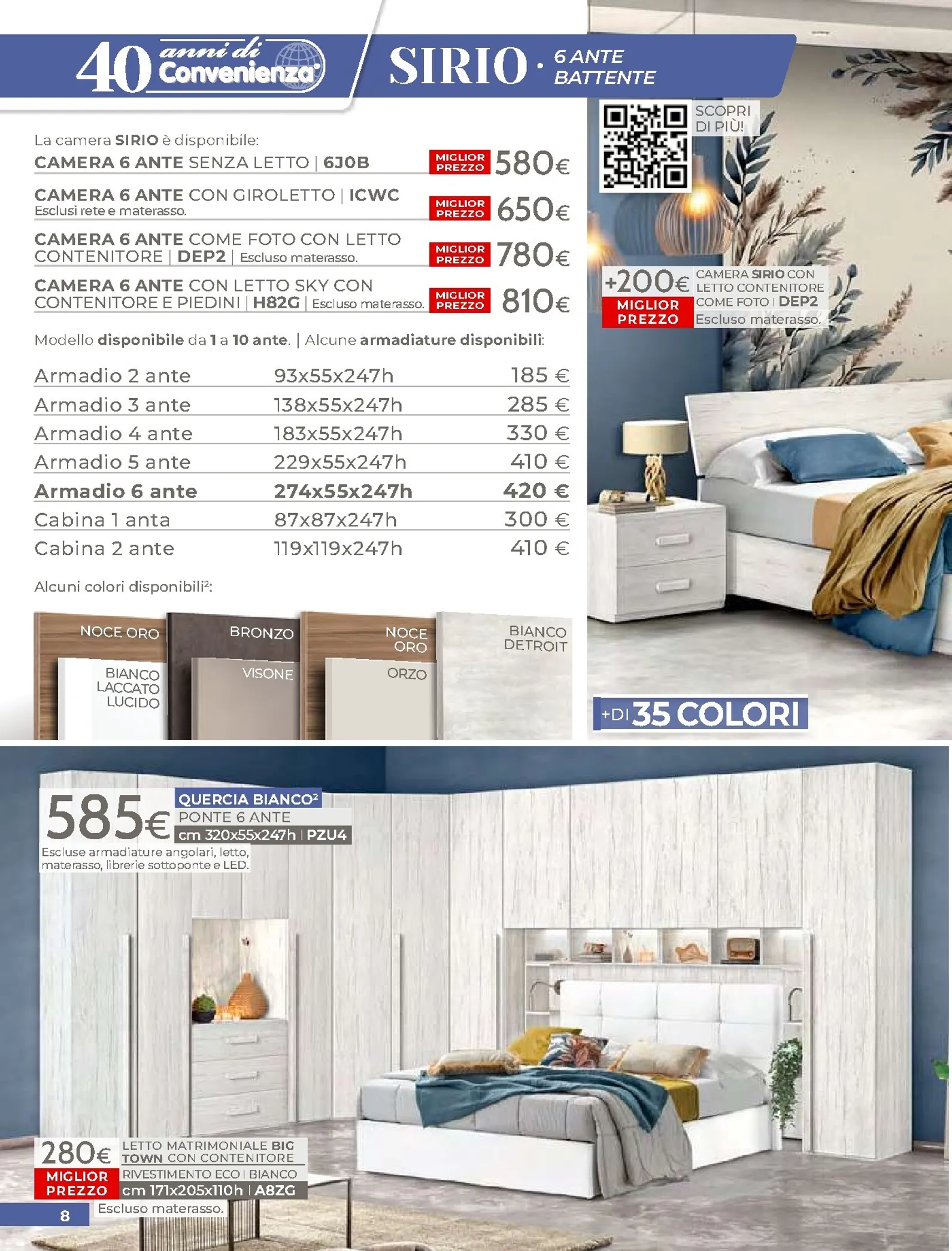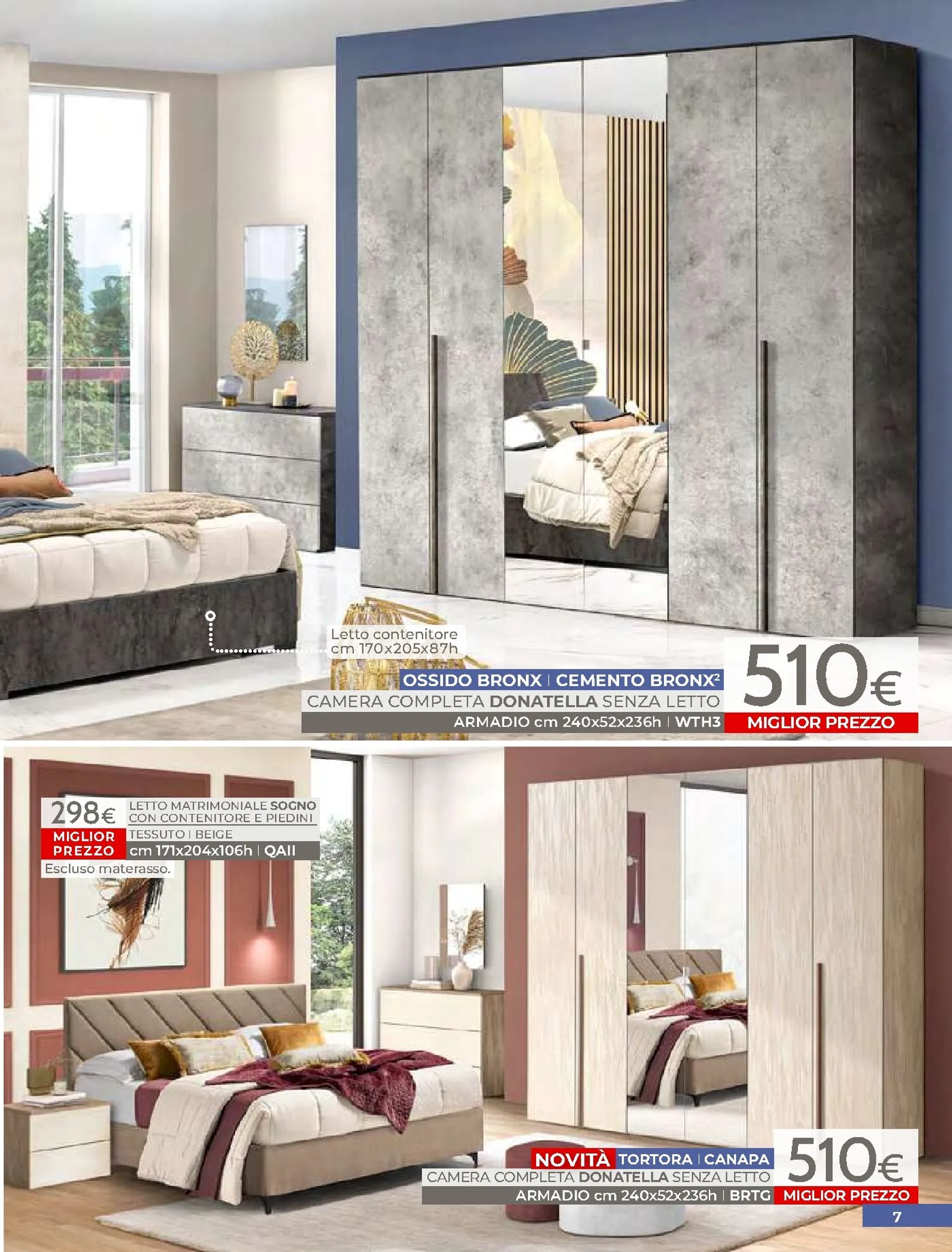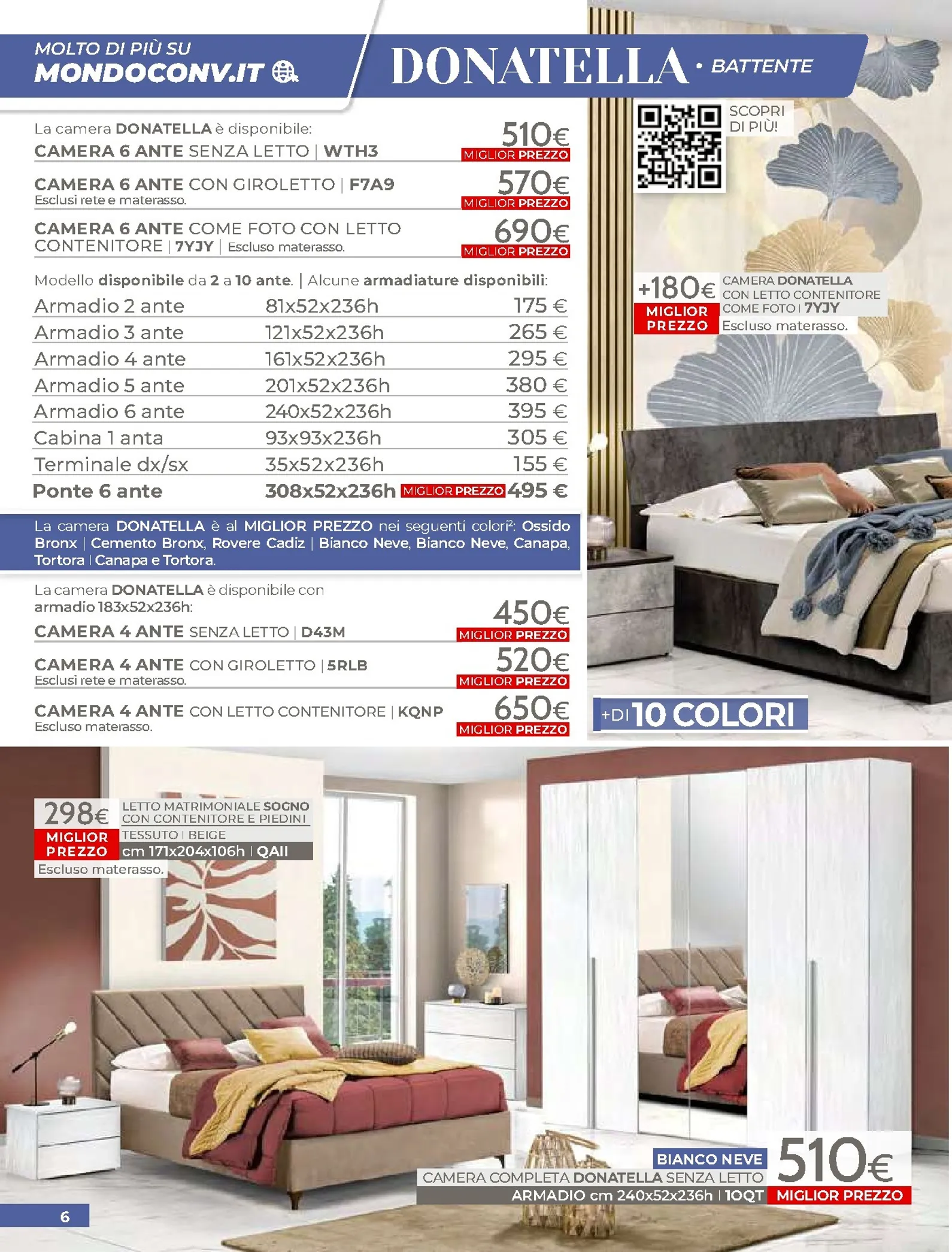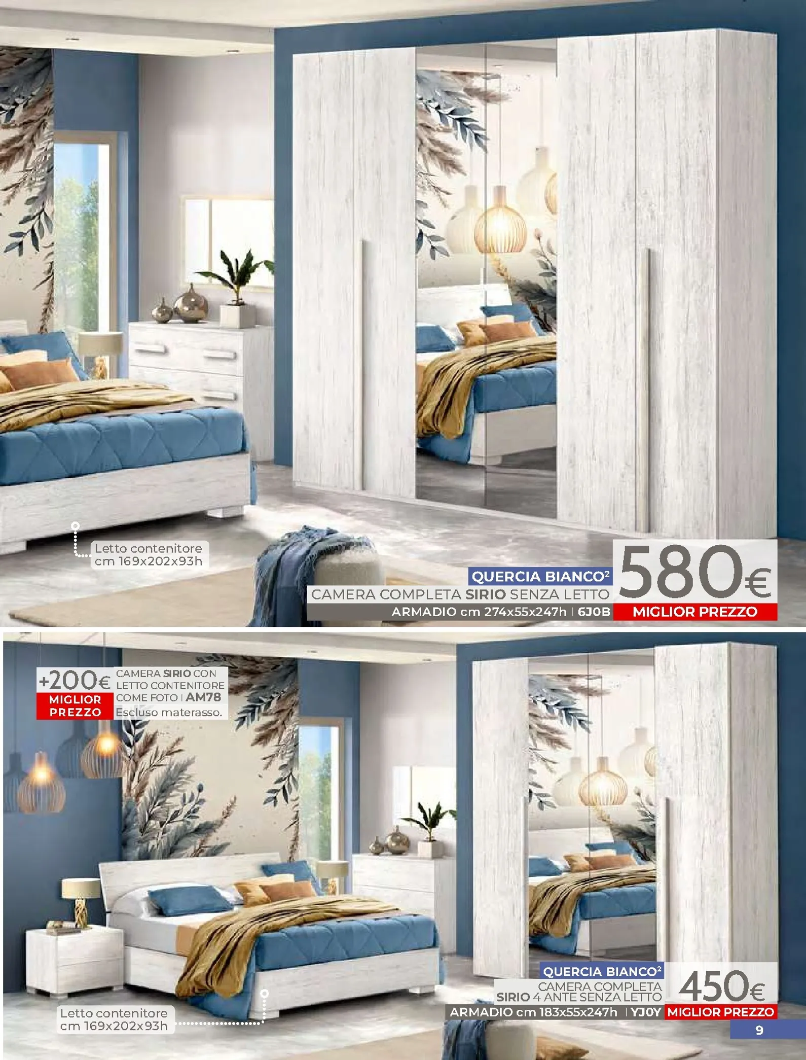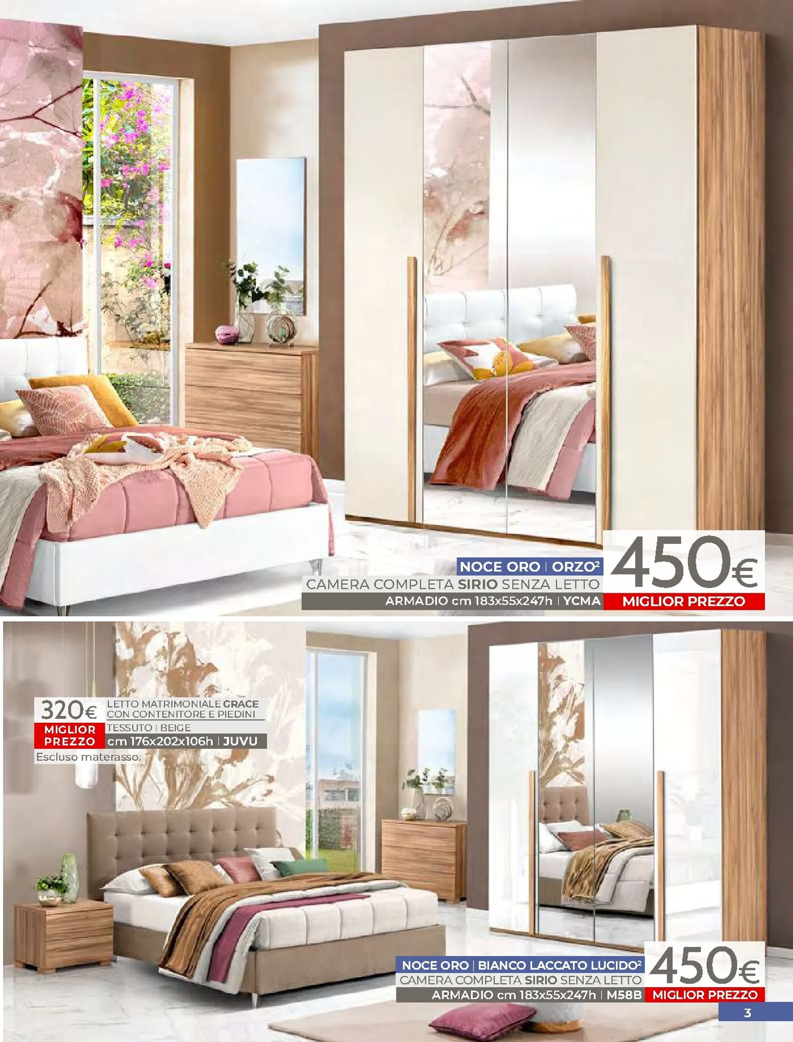 La zona notte è protagonista di queste nuovo offerte, con soluzioni per ogni gusto. Spicca il letto matrimoniale Grace con contenitore, disponibile a soli 320€, perfetto per chi cerca comfort e praticità. Per un rinnovo completo, la camera Sirio in finitura noce oro e bianco laccato lucido è proposta a 450€. Altrettanto interessante è il letto Sogno, offerto a 298€ per unire design e accessibilità.
