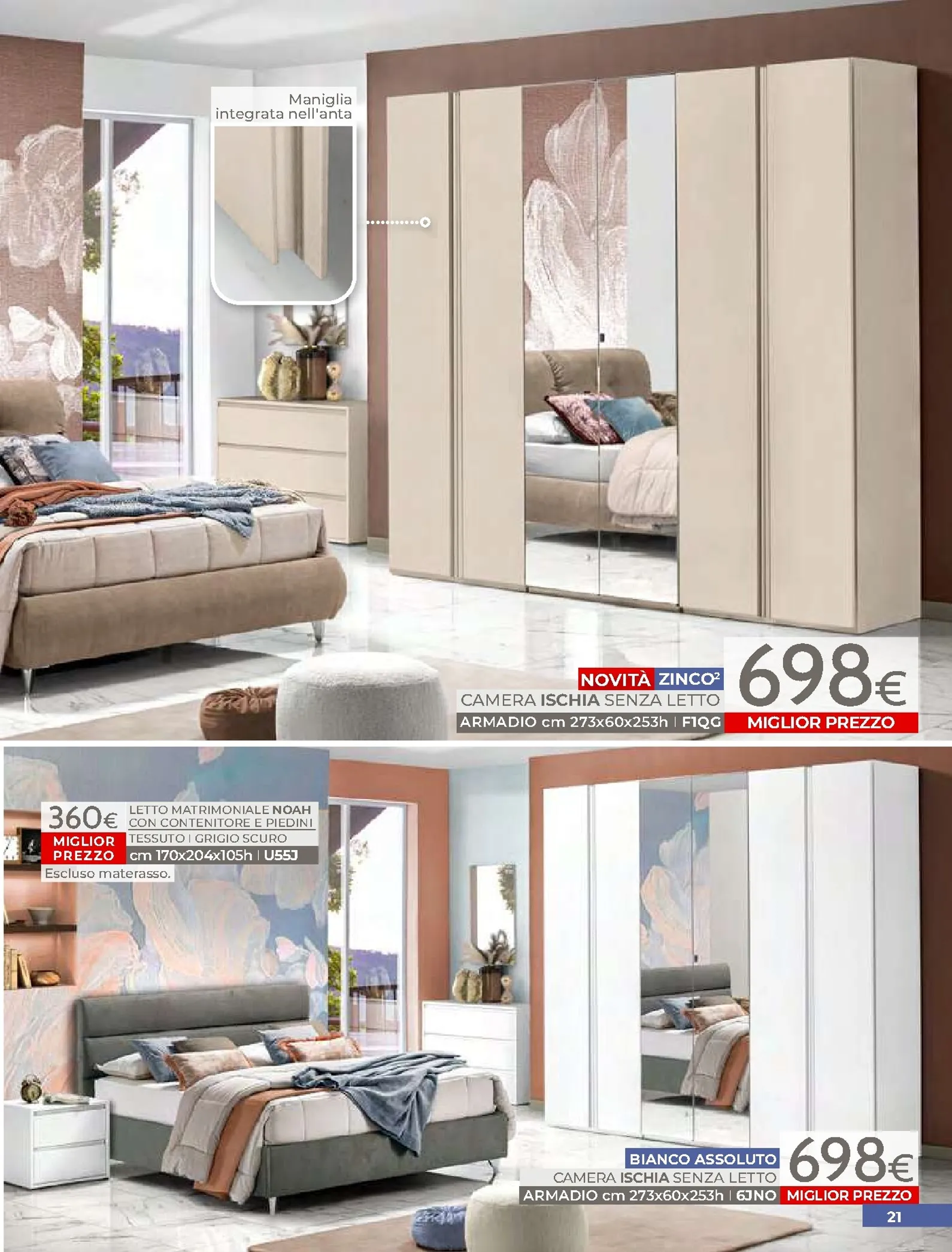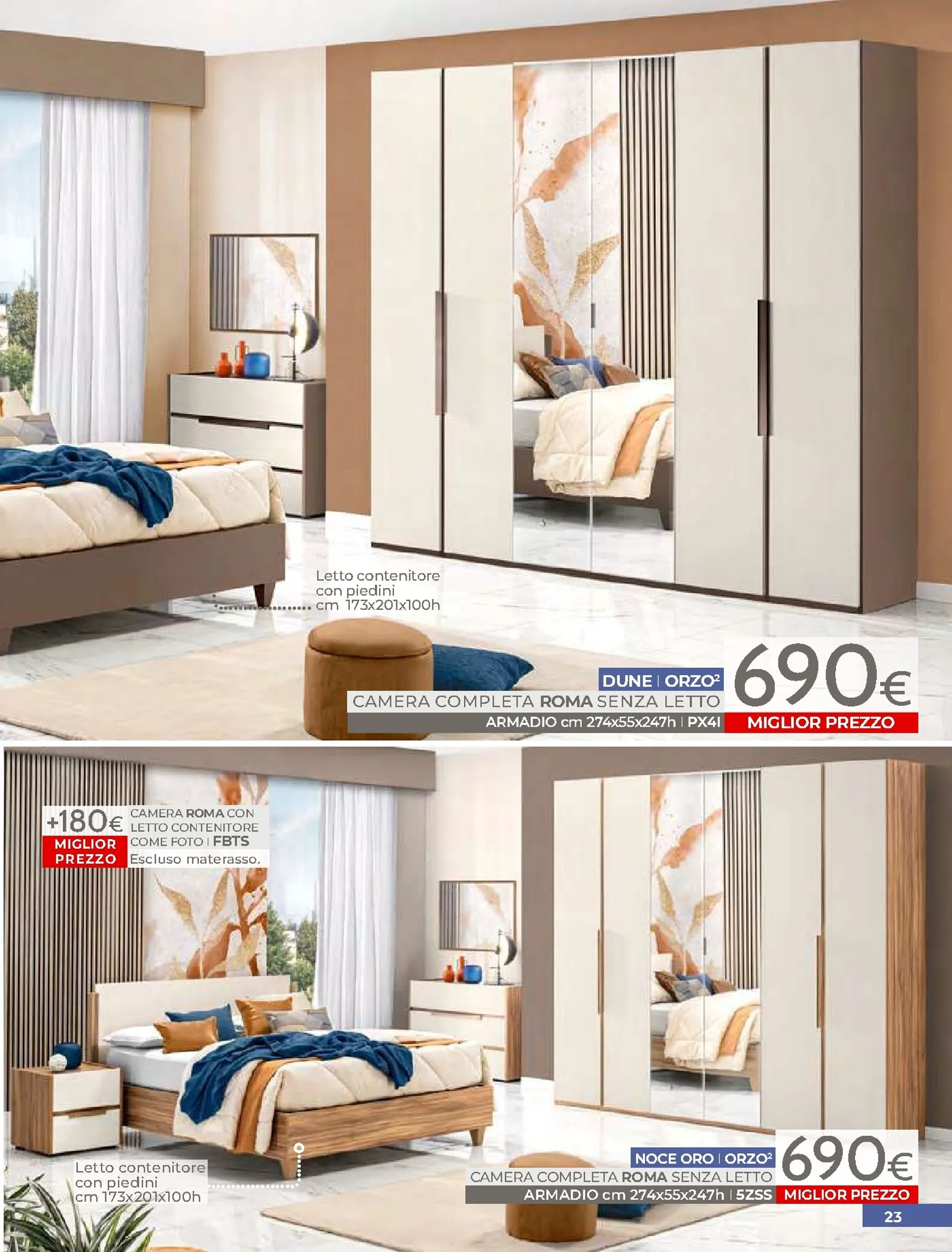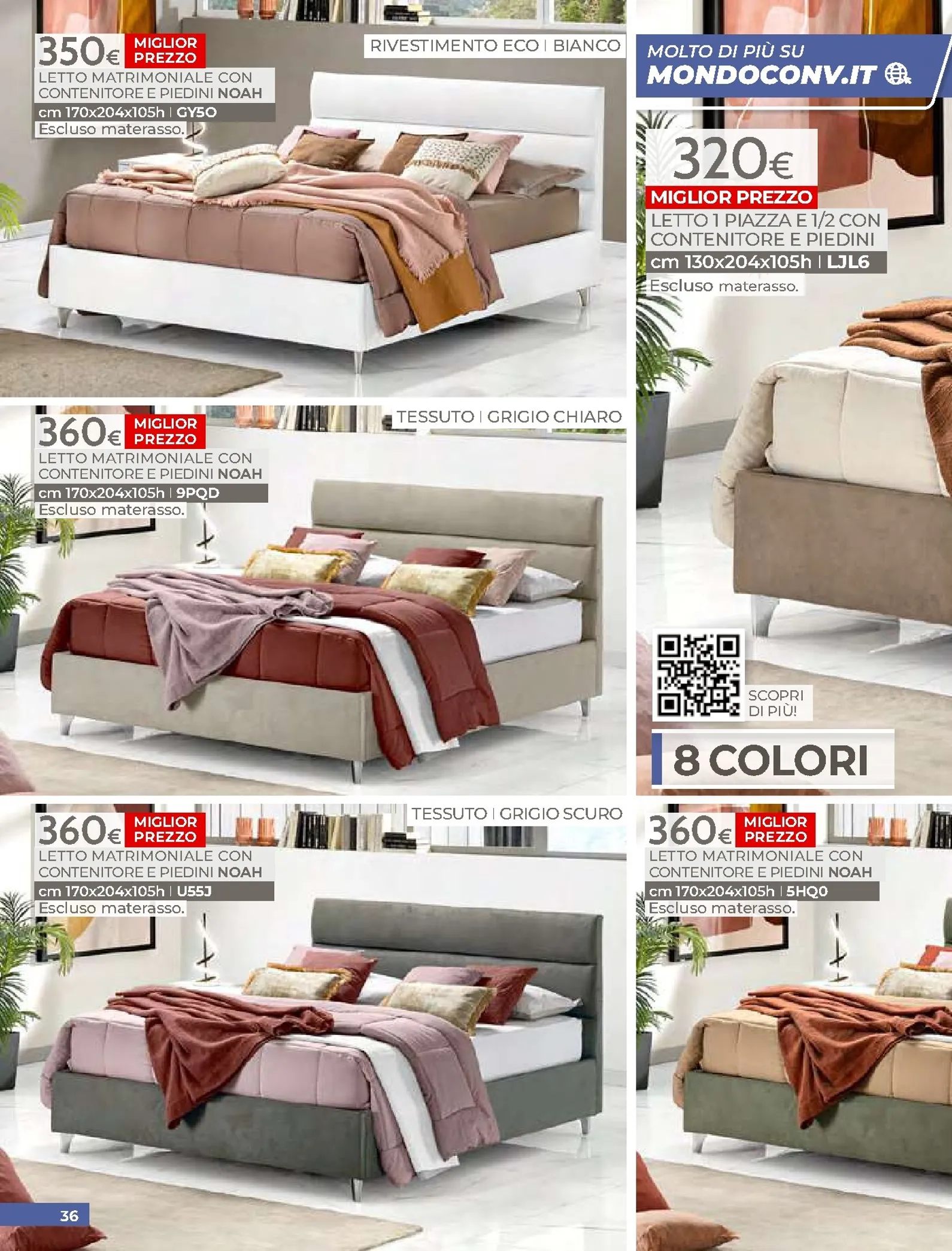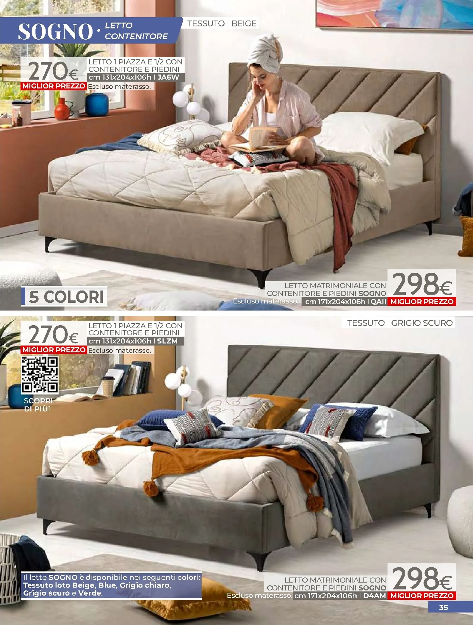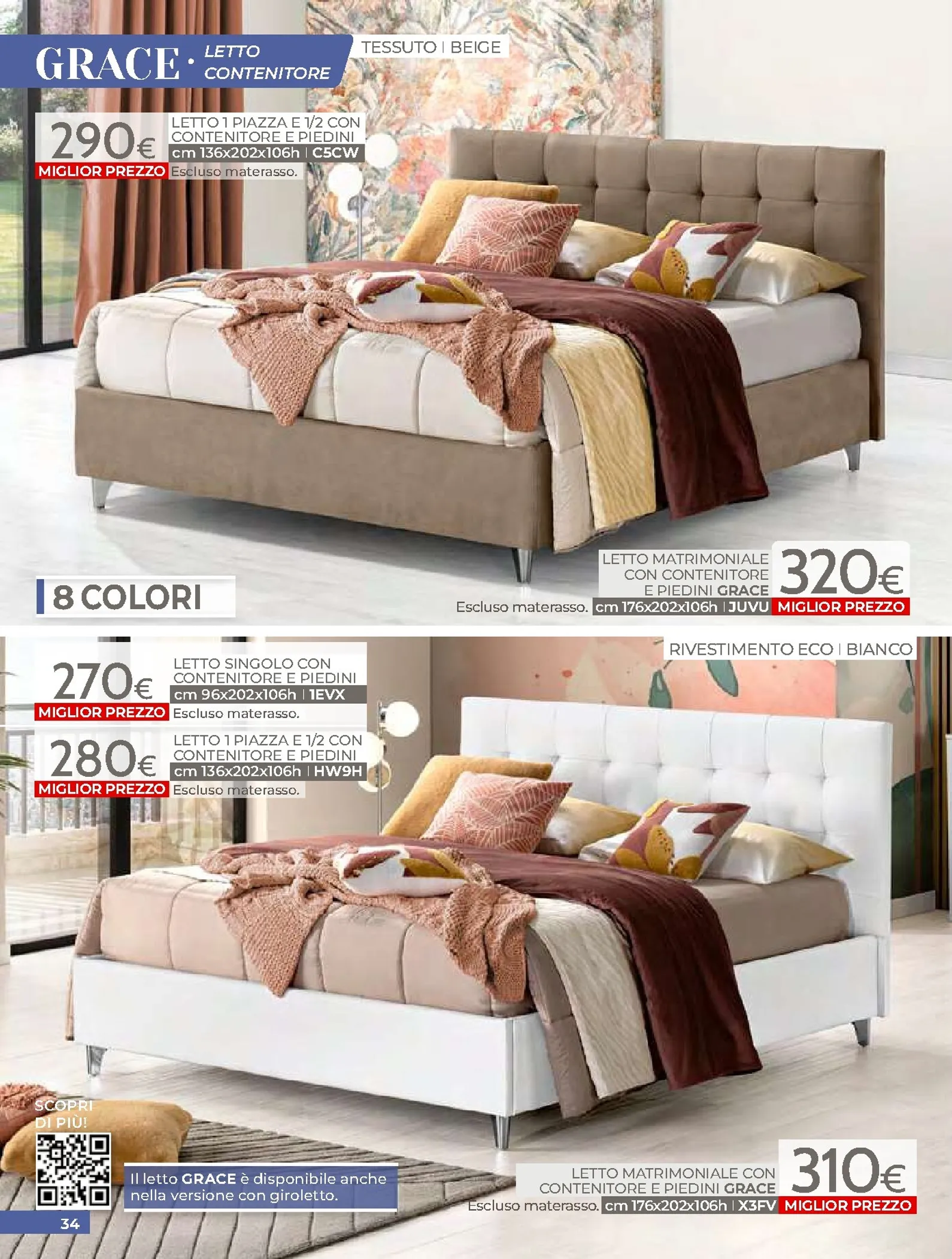 La zona notte è protagonista di queste nuovo offerte, con soluzioni per ogni gusto. Spicca il letto matrimoniale Grace con contenitore, disponibile a soli 320€, perfetto per chi cerca comfort e praticità. Per un rinnovo completo, la camera Sirio in finitura noce oro e bianco laccato lucido è proposta a 450€. Altrettanto interessante è il letto Sogno, offerto a 298€ per unire design e accessibilità.