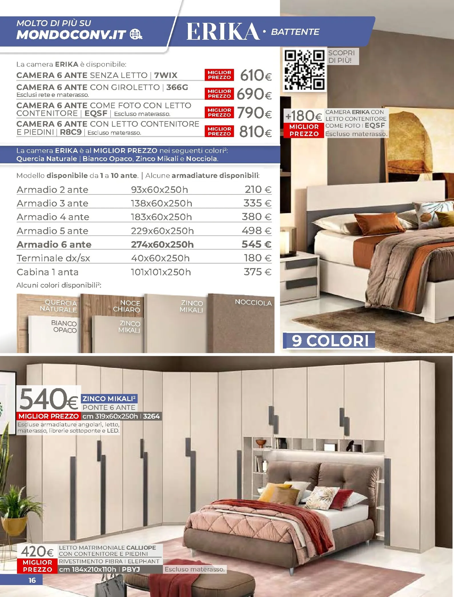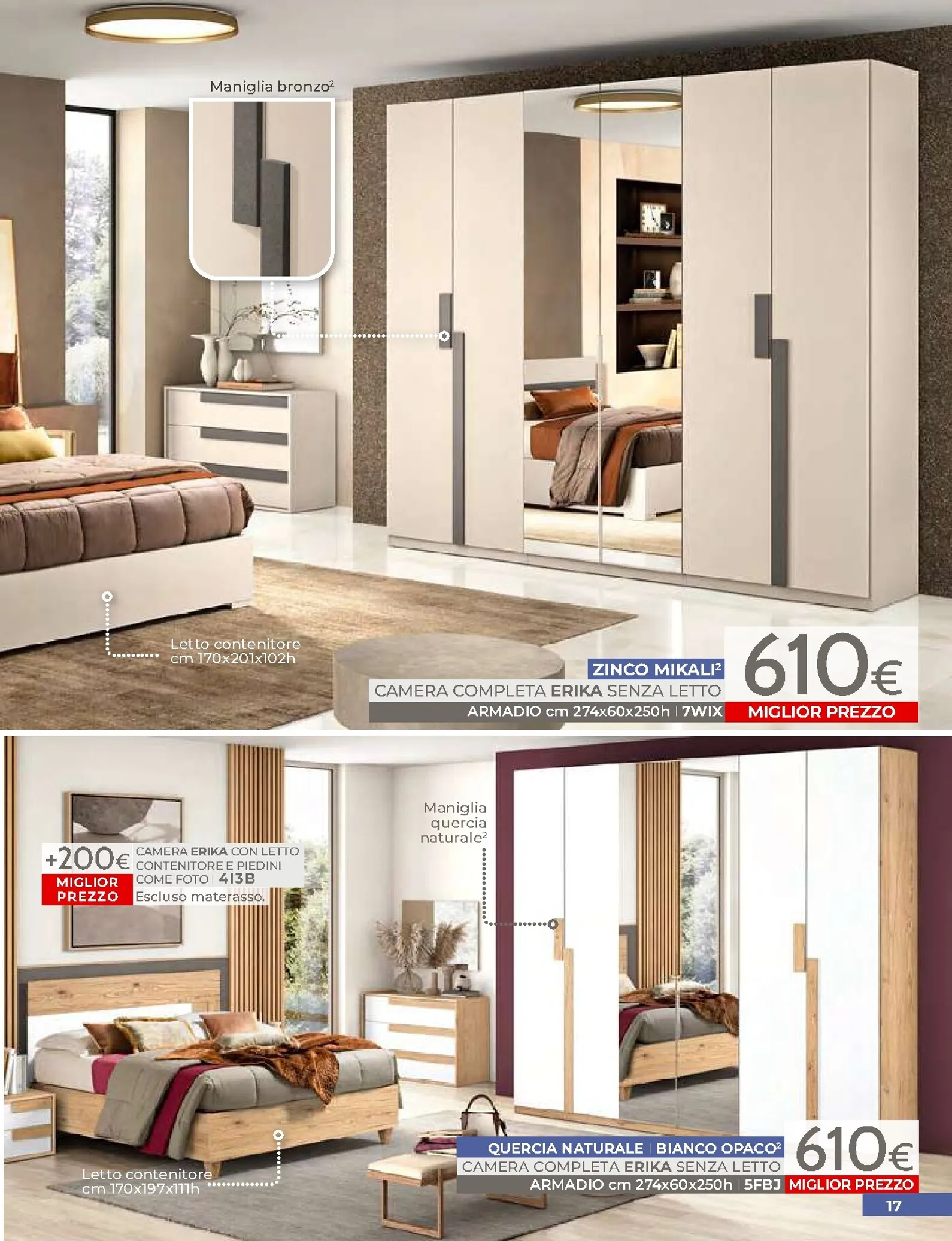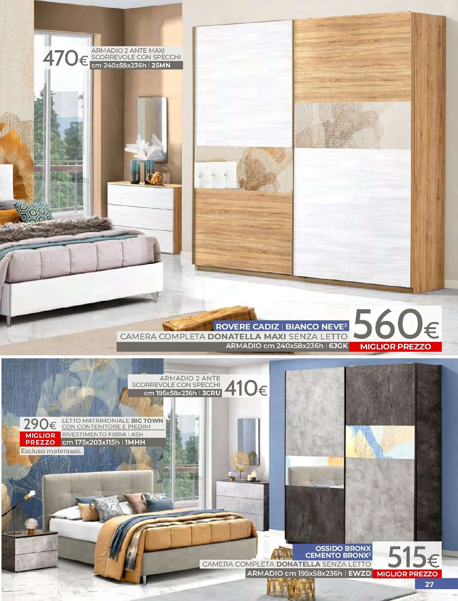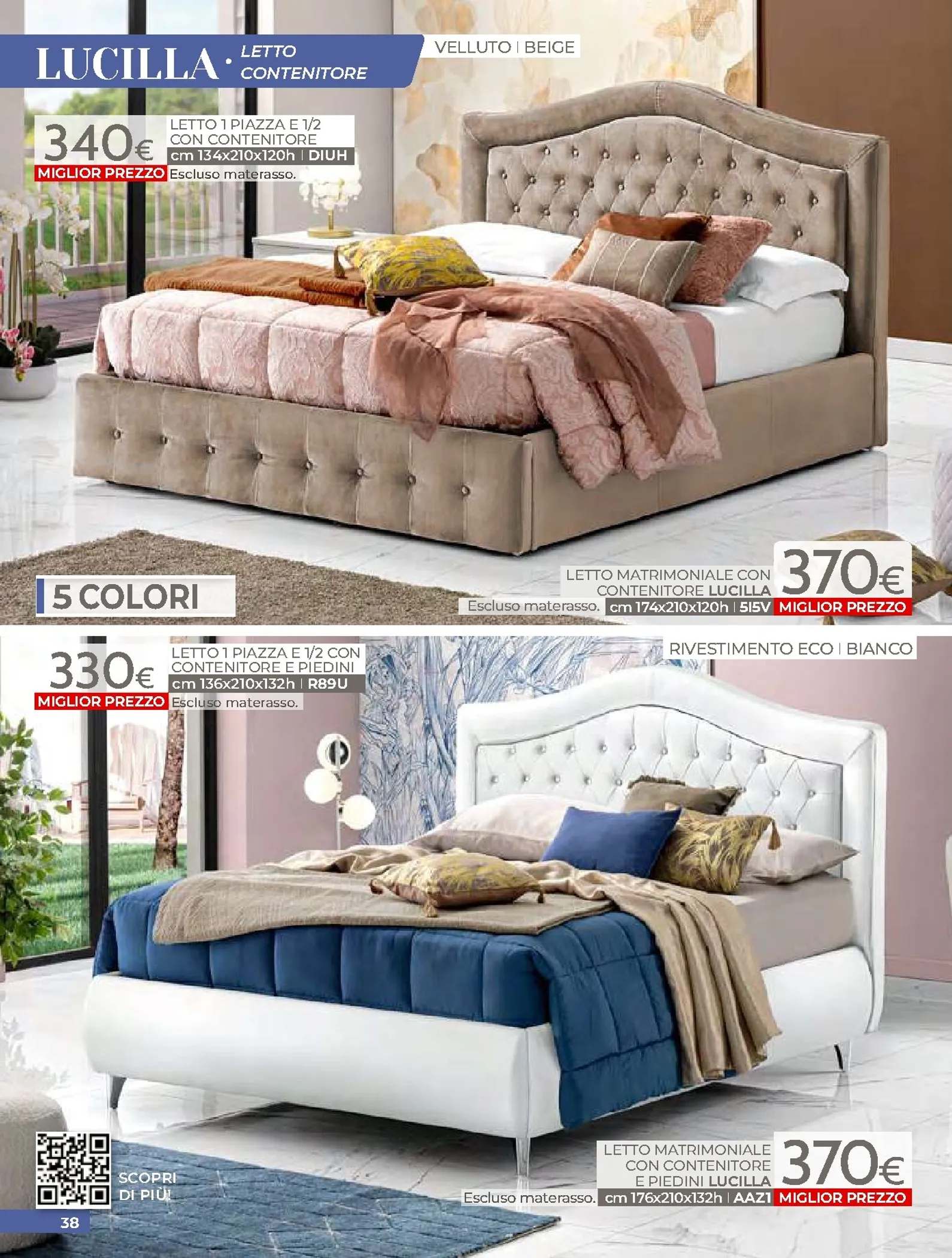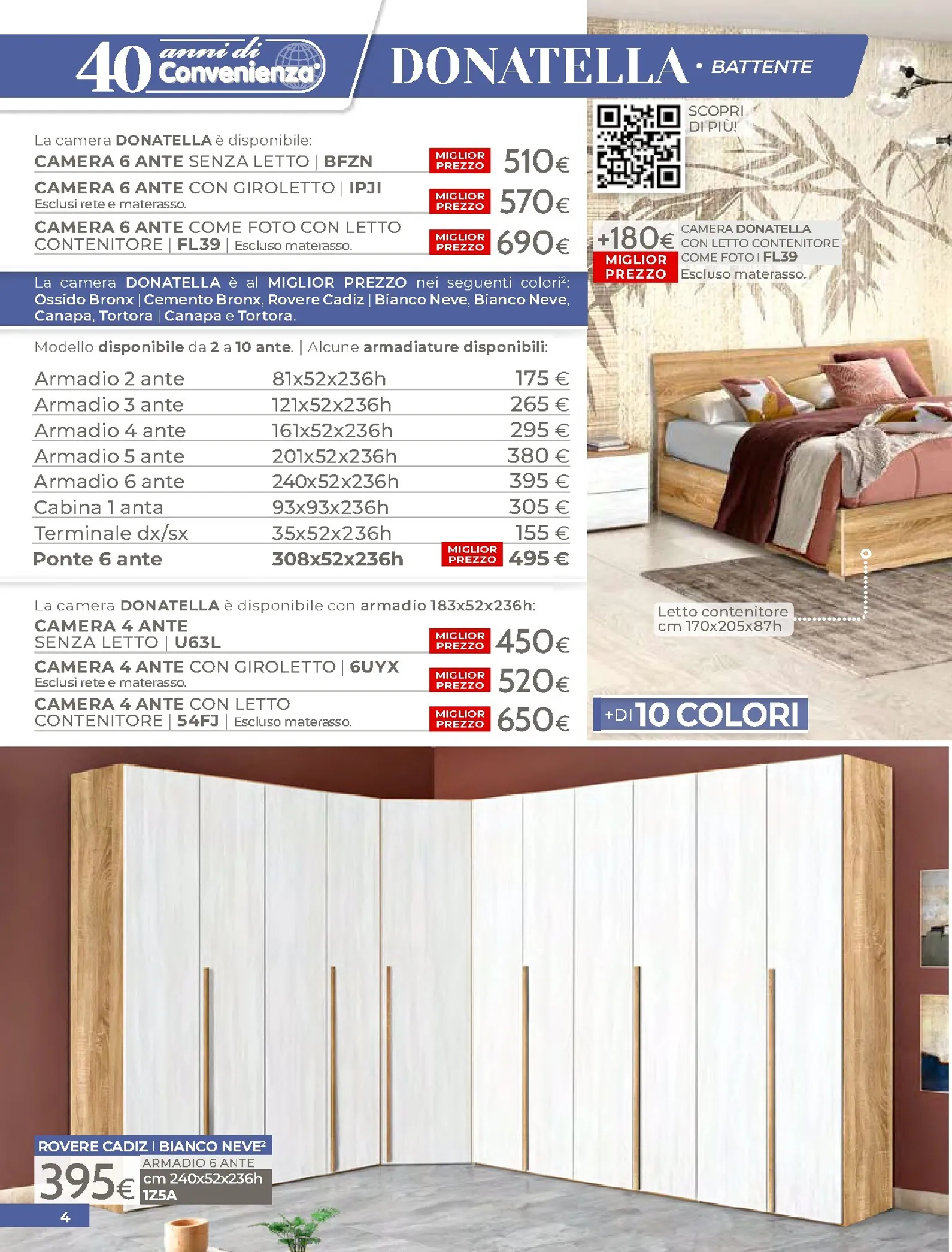 La zona notte è protagonista di queste nuovo offerte, con soluzioni per ogni gusto. Spicca il letto matrimoniale Grace con contenitore, disponibile a soli 320€, perfetto per chi cerca comfort e praticità. Per un rinnovo completo, la camera Sirio in finitura noce oro e bianco laccato lucido è proposta a 450€. Altrettanto interessante è il letto Sogno, offerto a 298€ per unire design e accessibilità.