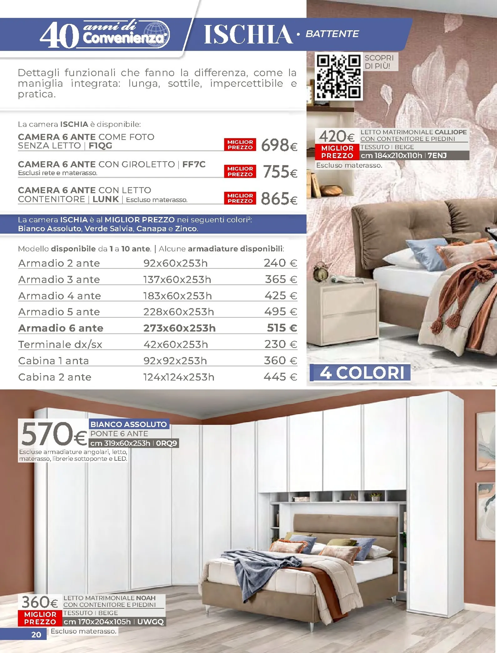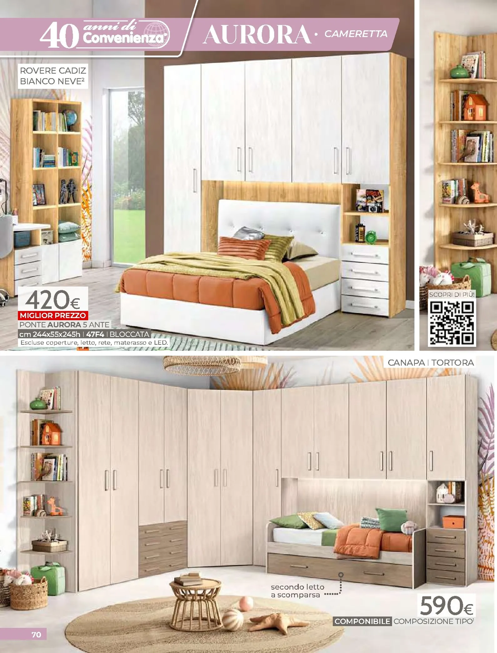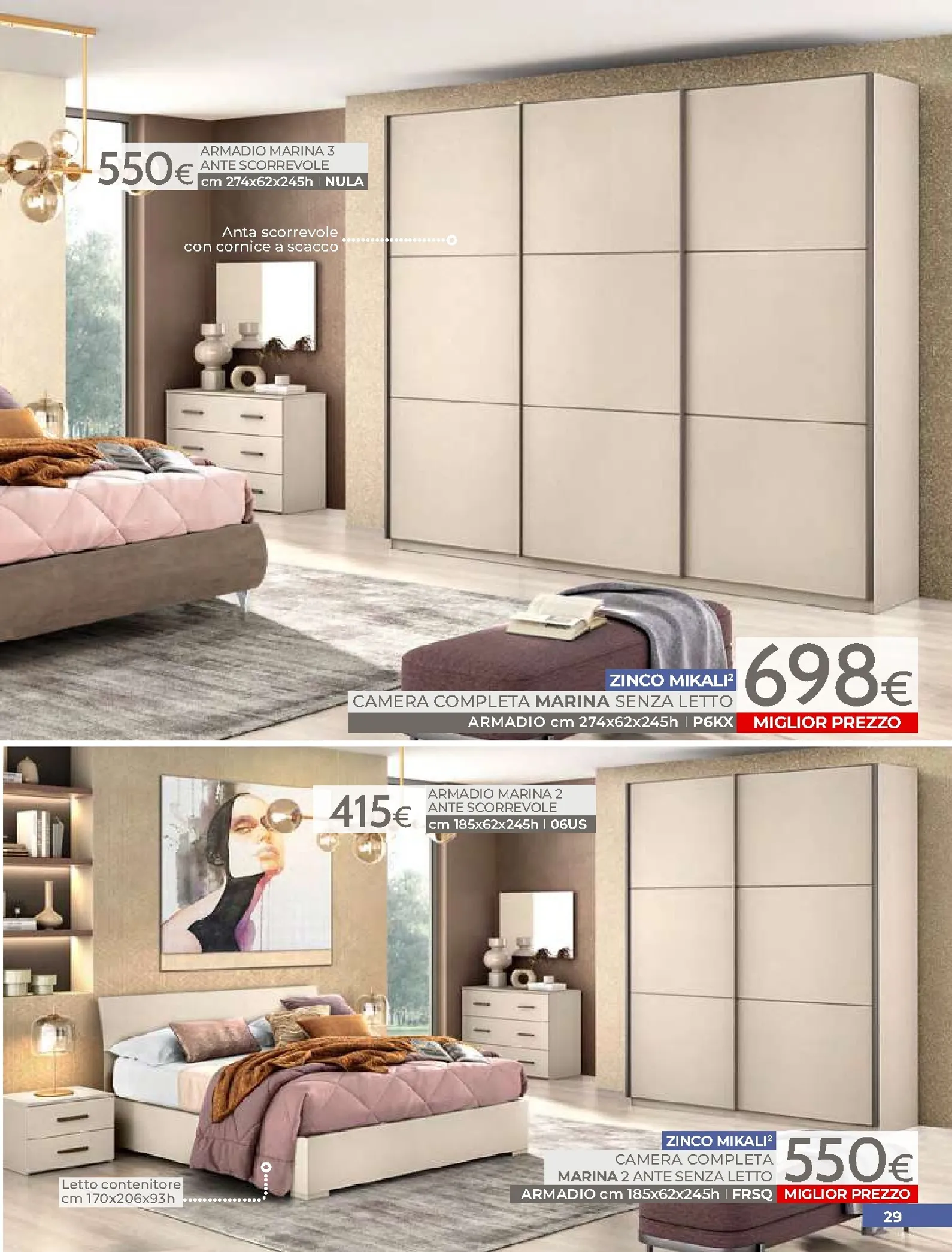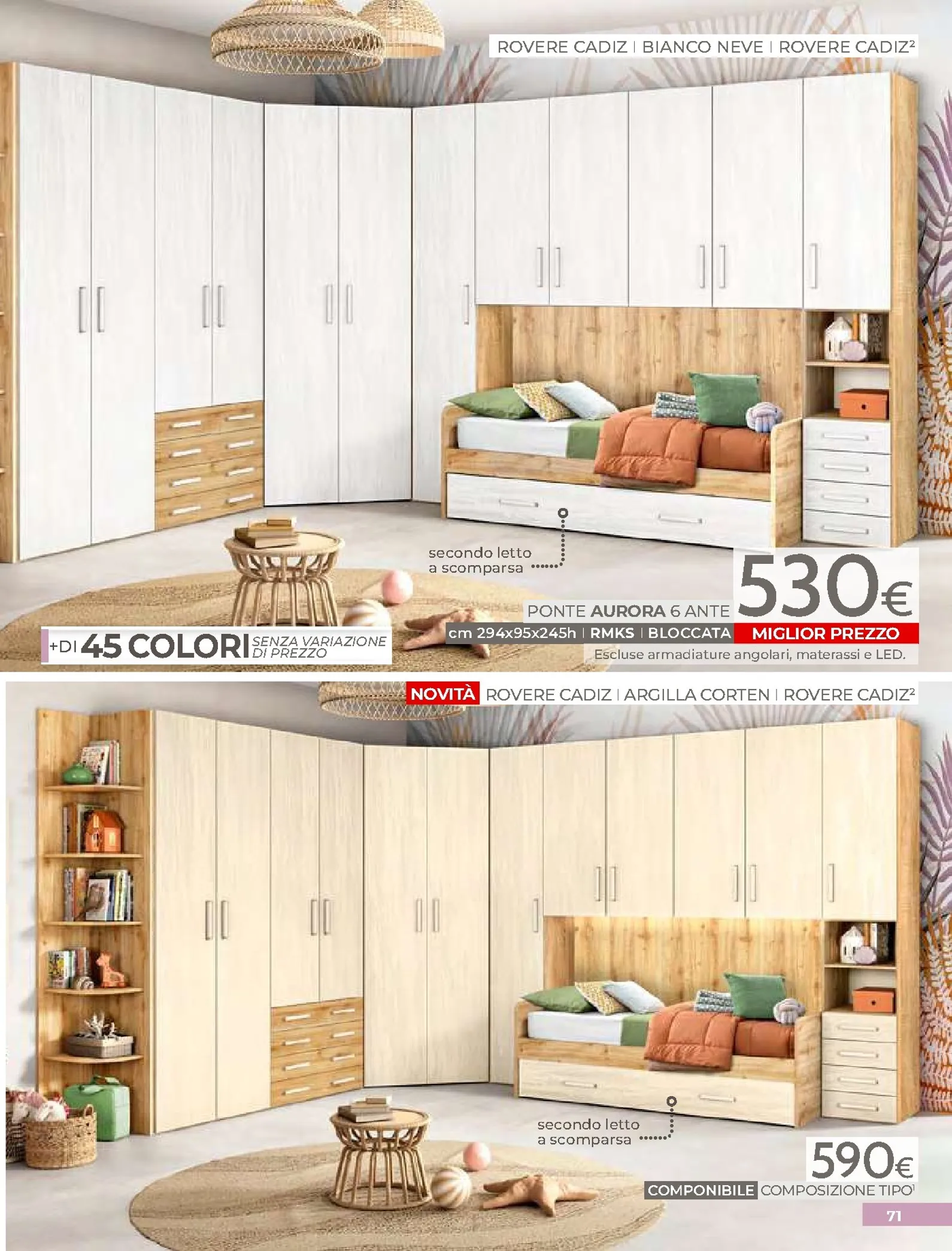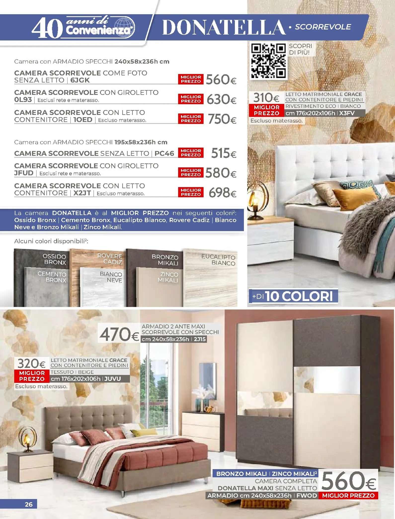 La zona notte è protagonista di queste nuovo offerte, con soluzioni per ogni gusto. Spicca il letto matrimoniale Grace con contenitore, disponibile a soli 320€, perfetto per chi cerca comfort e praticità. Per un rinnovo completo, la camera Sirio in finitura noce oro e bianco laccato lucido è proposta a 450€. Altrettanto interessante è il letto Sogno, offerto a 298€ per unire design e accessibilità.