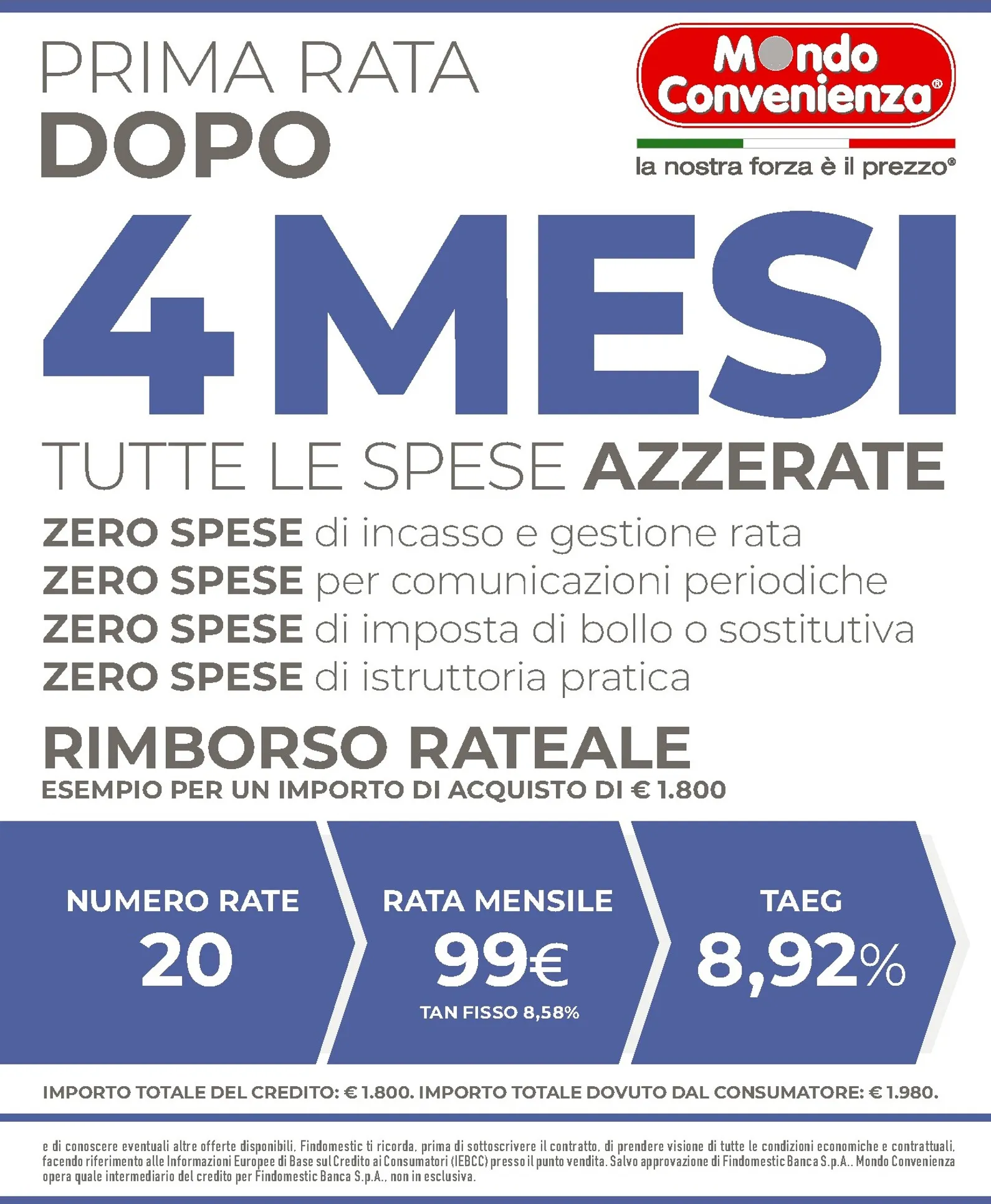 Per rendere l’acquisto ancora più semplice, Mondo Convenienza offre una soluzione di finanziamento flessibile. Con la formula “Pagamento Rateale a Zero Spese”, si può acquistare subito e iniziare a pagare la prima rata dopo ben quattro mesi. Questa opzione, in collaborazione con Findomestic, elimina costi di gestione e istruttoria, garantendo massima trasparenza. Un modo intelligente per programmare le spese senza rinunciare a nulla.