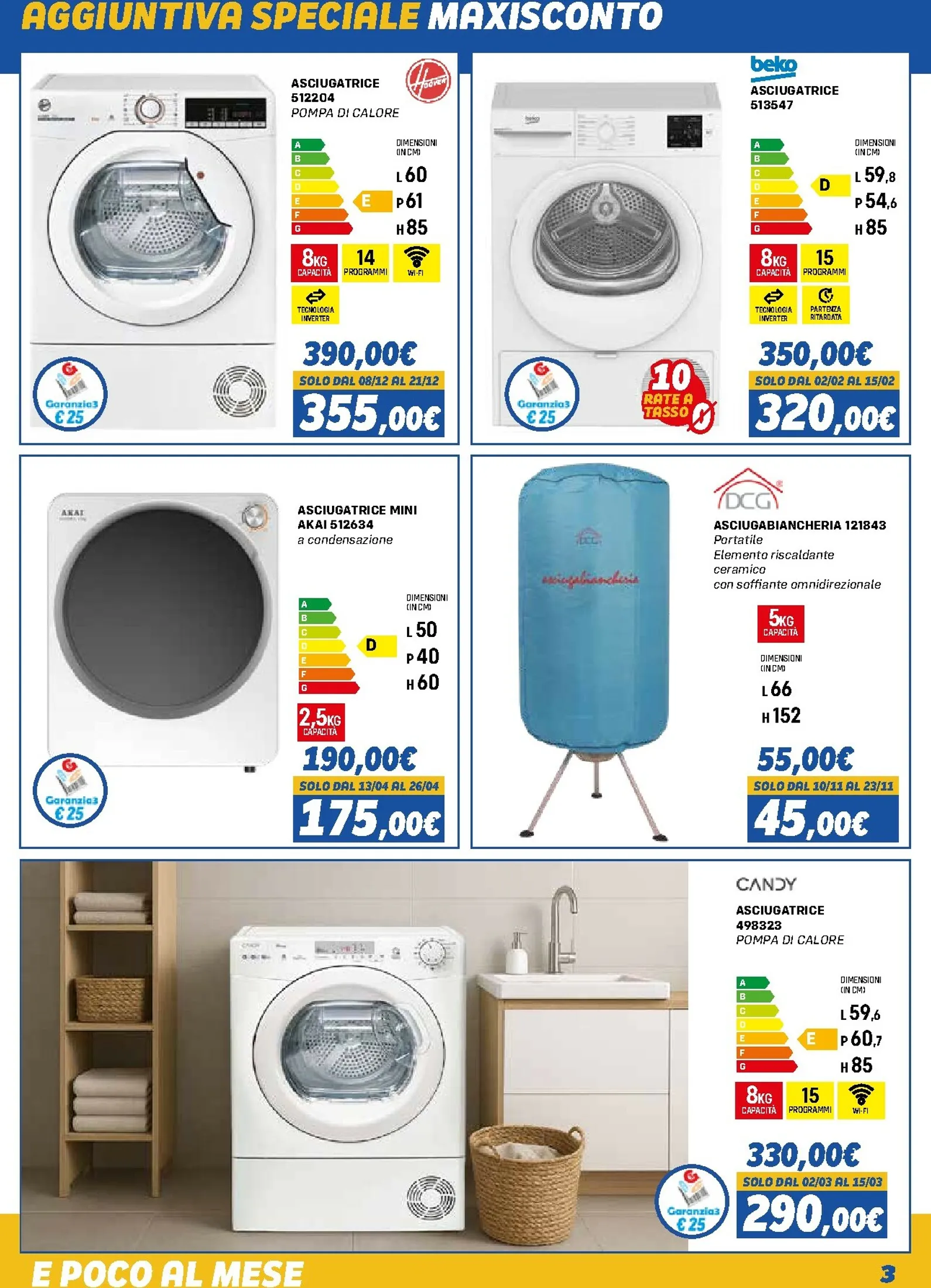 La sezione dedicata alle asciugatrici è particolarmente ricca, con modelli per ogni budget di marchi come Candy e Beko. Troverai capacità da 8 a 10 kg e tecnologia a pompa di calore per grande efficienza. I prezzi sono competitivi, con offerte che rendono accessibile il comfort di un bucato sempre asciutto. Spicca l’asciugatrice mini AKAI a un prezzo imbattibile, perfetta per chi ha poco spazio ma cerca la massima praticità.