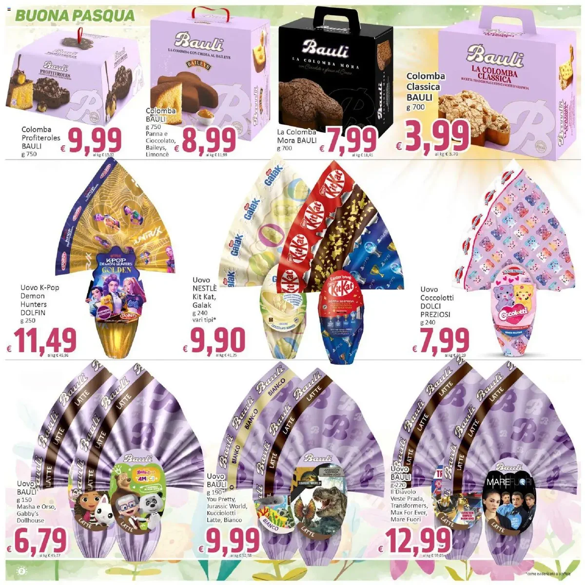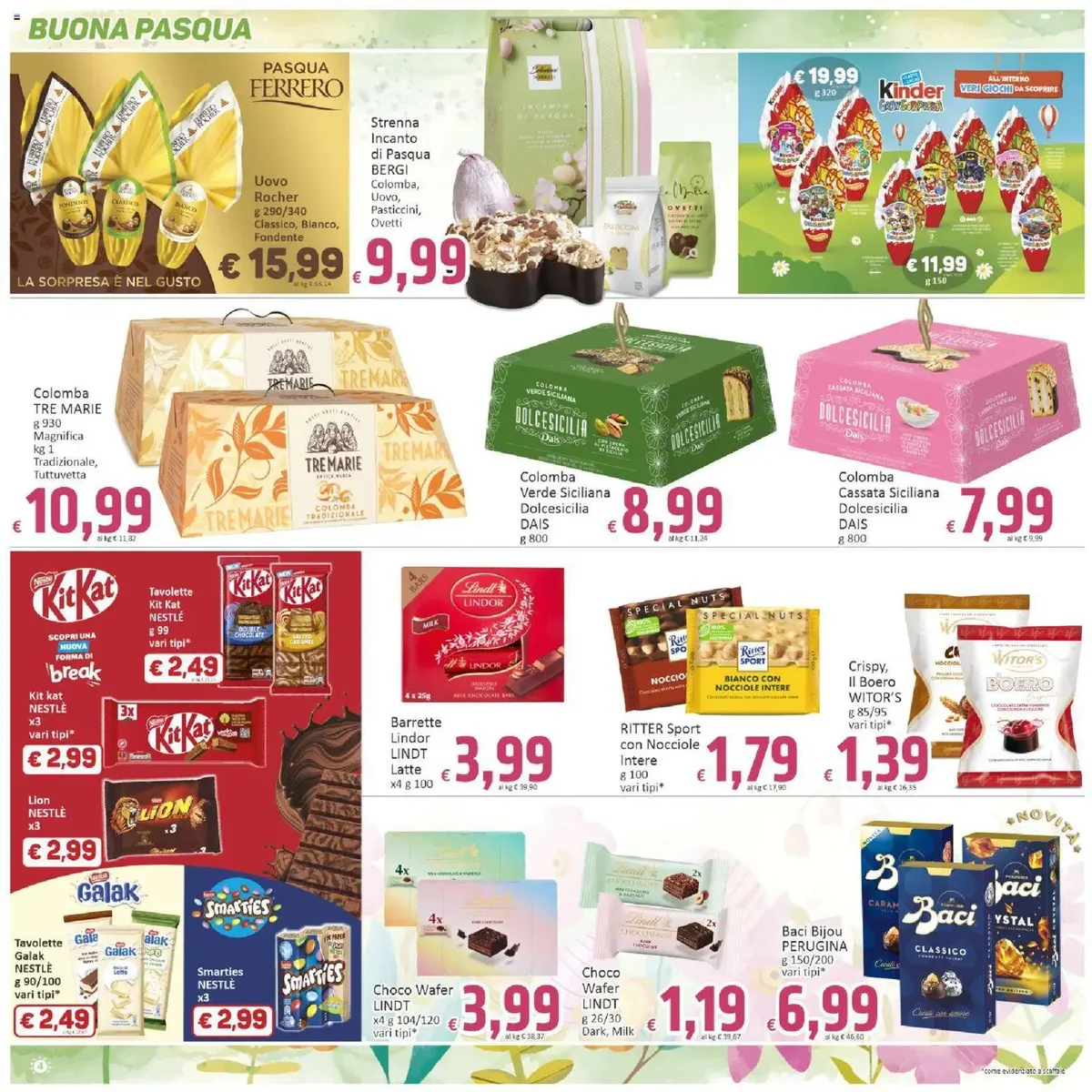 Tra le proposte più allettanti, spiccano le offerte dedicate alla Pasqua, con una vasta scelta di uova e colombe. Troverai l'Uovo Le Specialità PERUGINA da 245g a soli €7,99, o l'Uovo NESTLÉ Kit Kat o Galak da 240g a €9,90. Non mancano le colombe, come la Colomba Classica BAULI da 700g a €3,99, o la Colomba Profiteroles BAULI da 750g a €9,99. Per la tua dispensa, non perdere l'Olio Extra Vergine di Oliva PANTALEO da 1 litro a €4,99, la Pasta POIATTI da 1 kg a soli €0,95 e la Mozzarella SANTA LUCIA 3x100g a €1,79. La Birra PERONI Nastro Azzurro 6x62cl è disponibile a €4,98. Per la casa, la LASAGNERA ALTA IN ALLUMINIO, CM. 35X27X6 a €3,99.