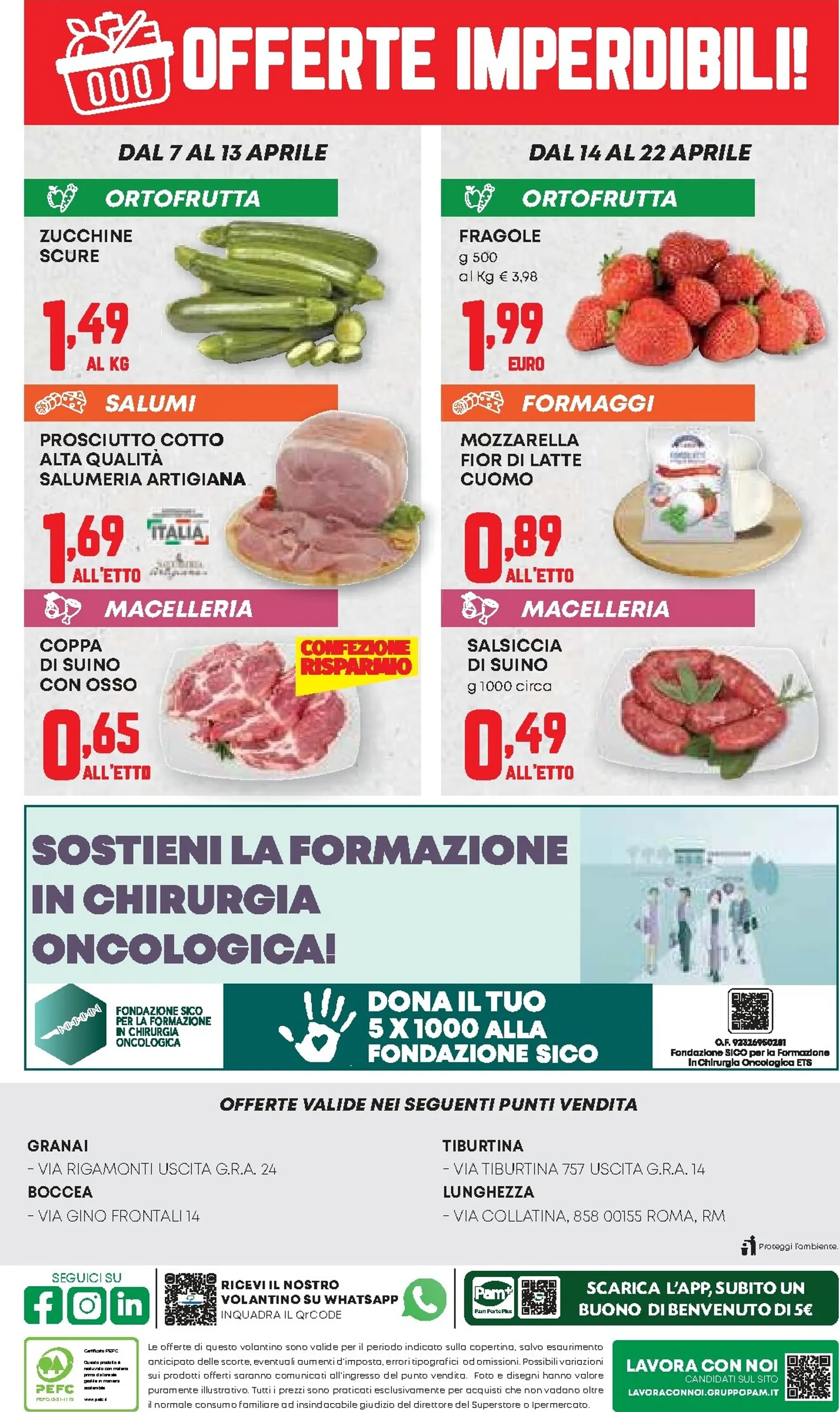 La convenienza continua nel reparto freschi con offerte a periodi alterni. Dal 7 al 13 aprile trovate le zucchine scure a 1,49 €/kg e la salsiccia di suino a 0,49 € l’etto. Dal 14 al 22 aprile, invece, le fragole saranno in promozione a 1,99 € per 500g e la mozzarella fiordilatte Cuomo a 0,89 € l’etto. Questo catalogo garantisce prodotti di stagione e carni selezionate a prezzi competitivi.