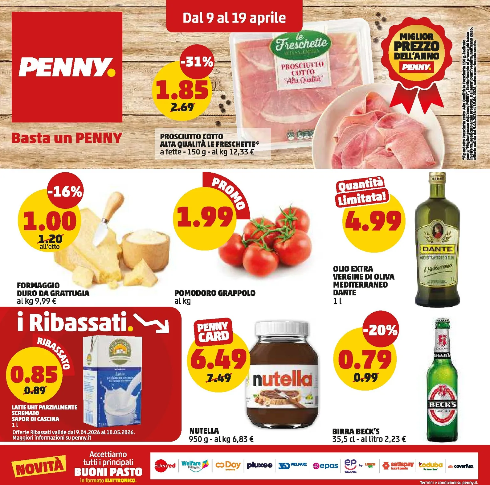 Il nuovo catalogo Penny, valido dal 9 al 19 Aprile, lancia la promozione “Miglior Prezzo dell’Anno”. Tra le offerte di punta troviamo il Prosciutto Cotto Le Freschette a 1,85€ e l’Olio Extra Vergine Dante a 4,99€. Queste occasioni sono selezionate per garantire qualità a prezzi imbattibili. Per scoprire ogni dettaglio, il nostro Penny Volantino dal 09/04/2026 vi guida attraverso le migliori catalogo e offerte, aiutandovi a pianificare una spesa intelligente.