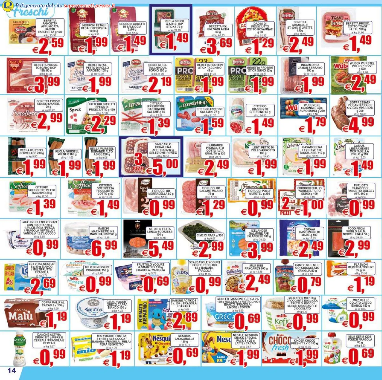 Pewex conferma la sua eccellenza nei reparti freschi. La macelleria offre un vasto assortimento di scottona, vitella e pollame, garantendo tagli di prima scelta. La pescheria propone offerte allettanti come le vongole lupino grandi a 6,99 € al kg e le trote fresche allo stesso prezzo, entrambe “Prodotto Italiano”. Queste catalogo e offerte permettono di portare in tavola piatti sani e saporiti, basati su materie prime selezionate.