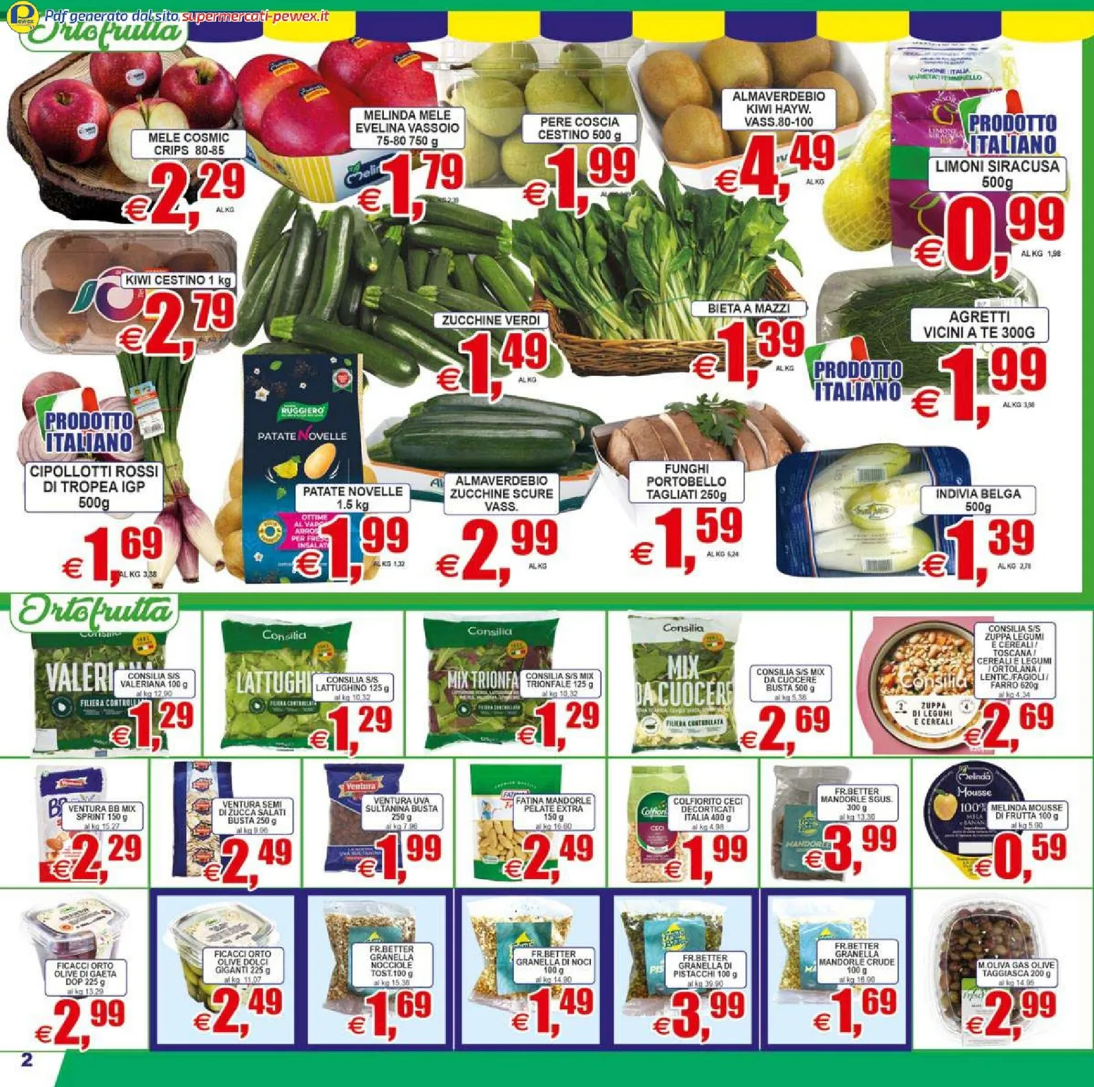 Il reparto ortofrutta si riempie dei colori della primavera. Le fragole Bauletto sono proposte a 4,99 € al kg, ideali per dessert salutari. Accanto, troviamo le mele Melinda a 1,79 € e le zucchine verdi a 1,49 € al kg, perfette per contorni leggeri. Questo catalogo valorizza il “Prodotto Italiano”, come le cipolle di Tropea IGP a 1,69 €, garantendo freschezza in ogni ricetta.