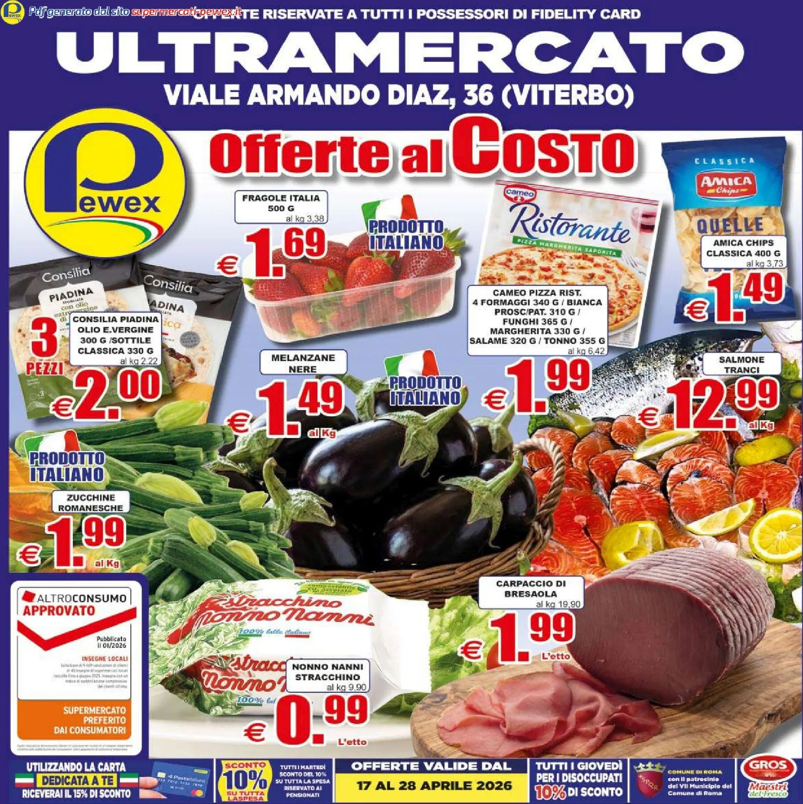 A Viterbo arrivano le nuove “Offerte al Costo” di Pewex, valide dal 17 al 28 aprile 2026. Il volantino si apre con la freschezza delle fragole italiane a 1,69 € e delle melanzane nere a 1,49 € al kg. Queste nuovo offerte esclusive, dedicate ai possessori di Fidelity Card, rendono la spesa conveniente e di qualità. Sfruttare Pewex Volantino dal 17/04/2026 permette di organizzare al meglio gli acquisti settimanali.
