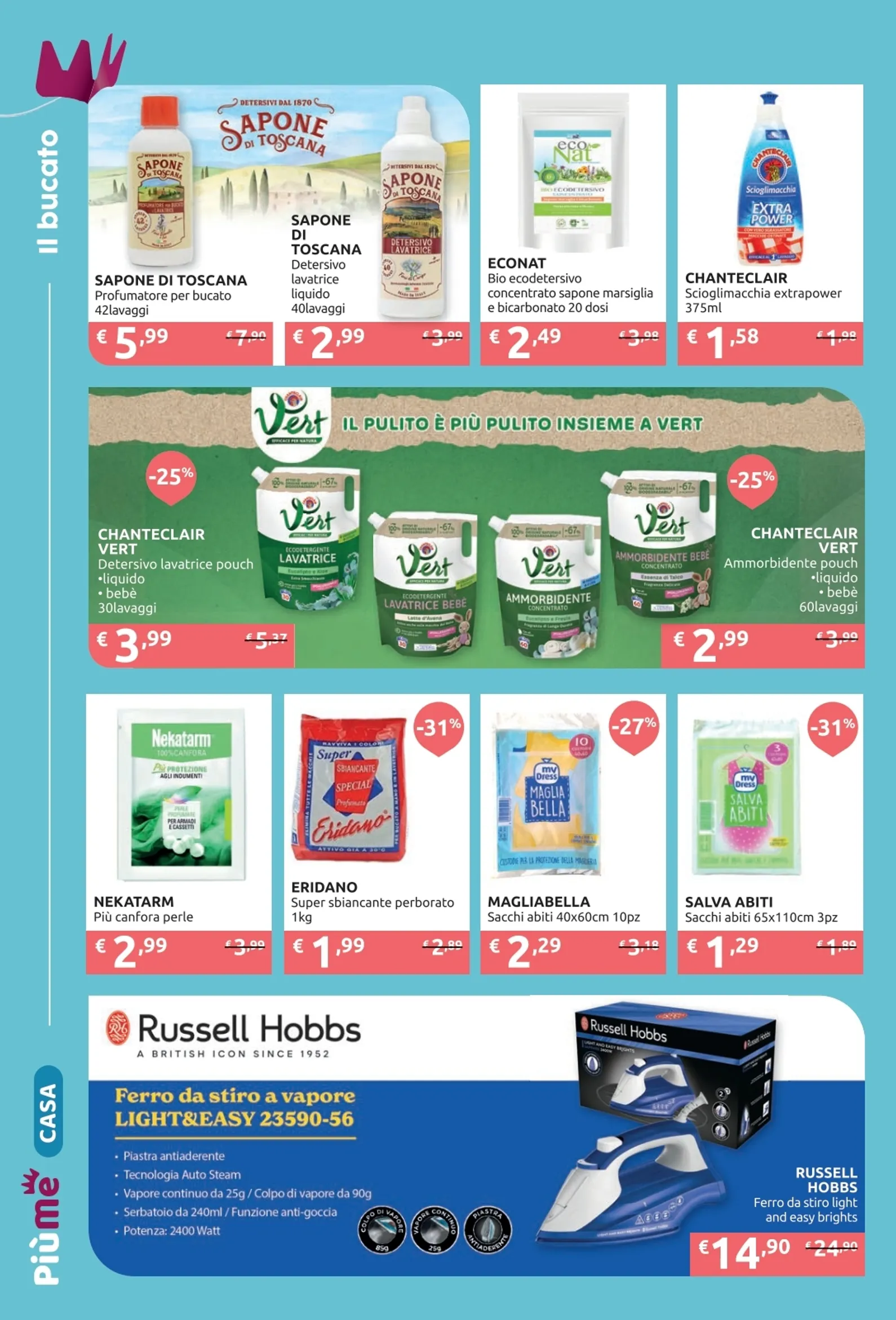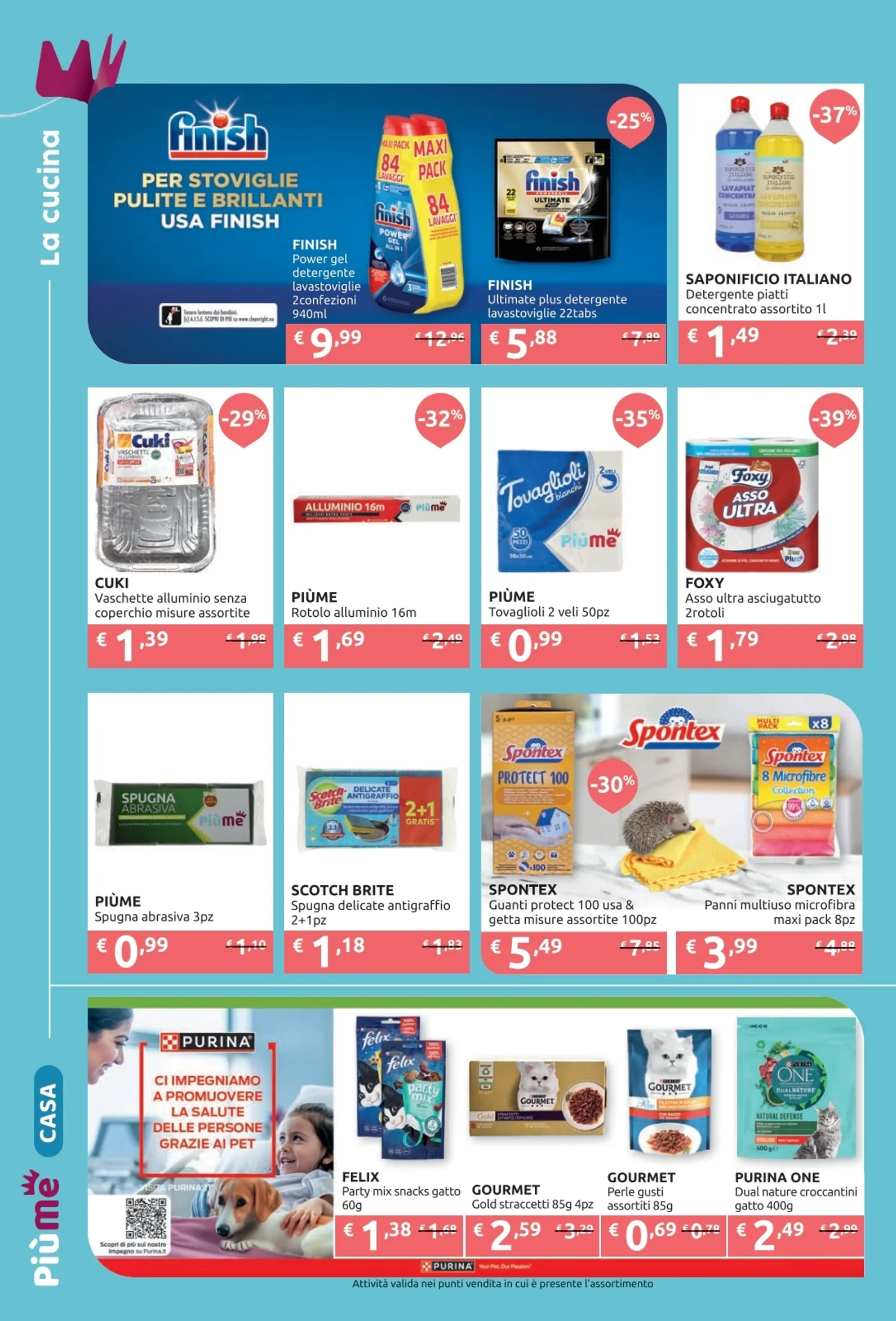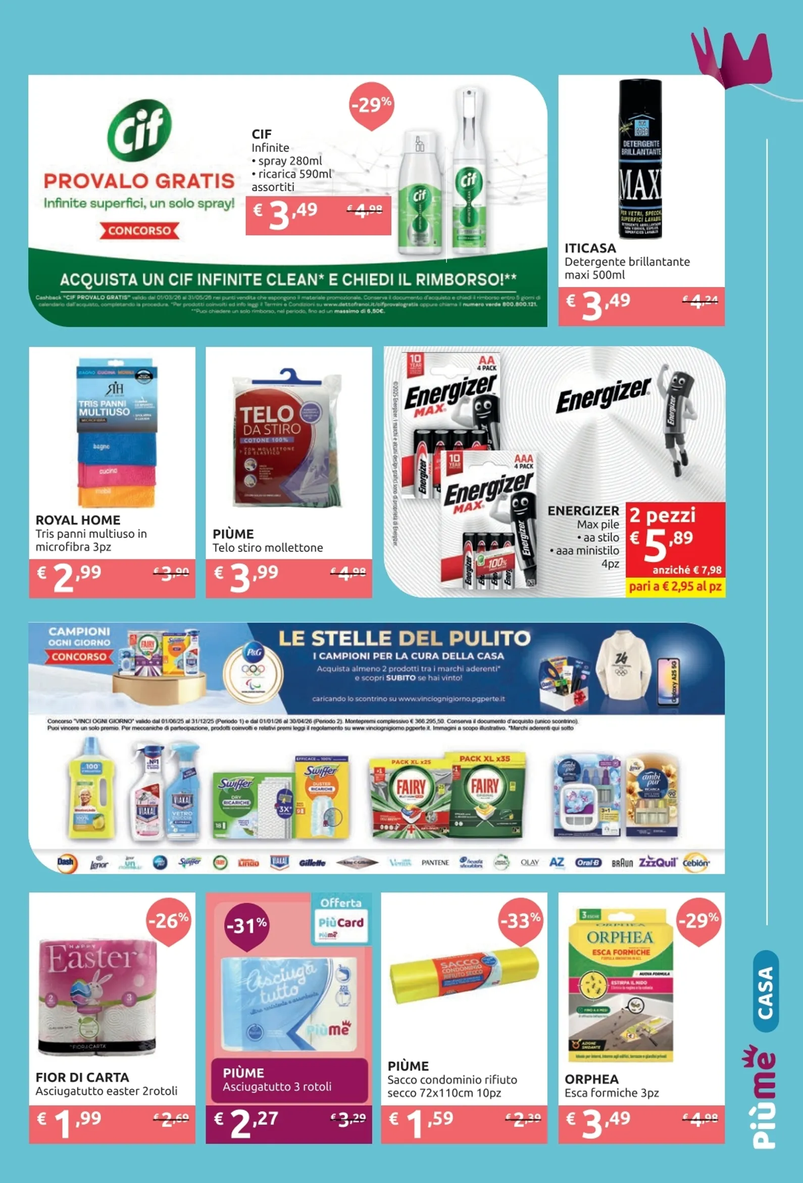 Le nuove offerte del volantino PiùMe portano grande convenienza per la cura della casa. Il catalogo è ricco di nuovo offerte sulla linea esclusiva PiùMe, con prodotti a prezzi ribassati. Per la pulizia profonda, spicca la pasta detergente in collaborazione con Scrub Daddy. Non mancano opportunità su marchi noti come Chanteclair Vert e Vanish. Approfittare di Piume Volantino dal 30/03/2026 è il modo migliore per garantire igiene e risparmio.