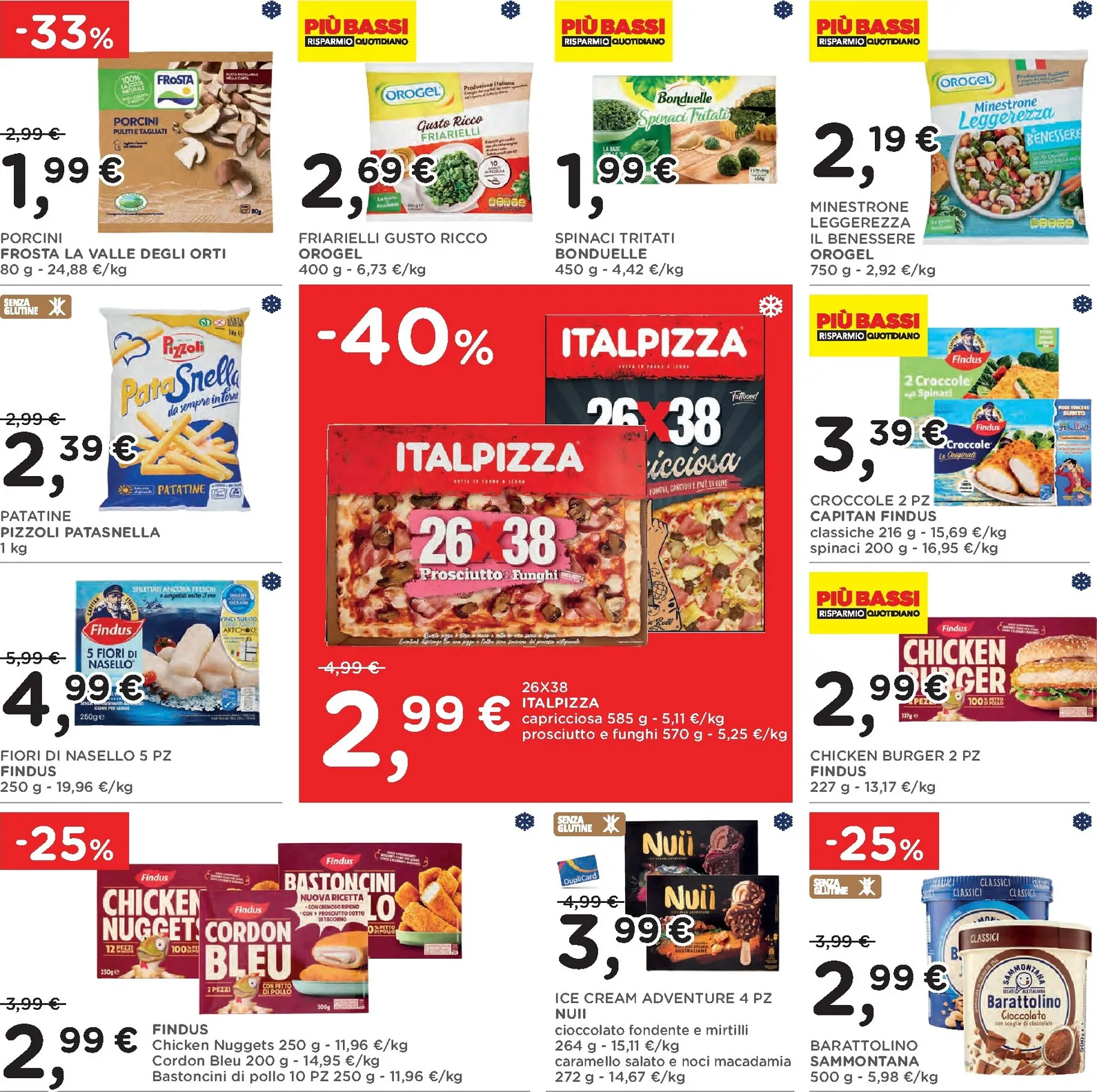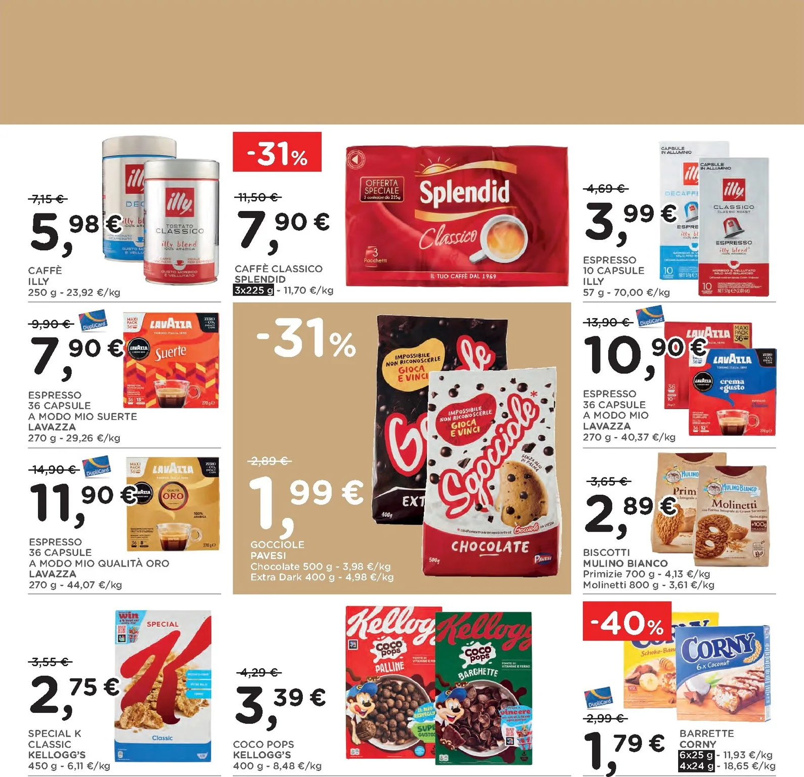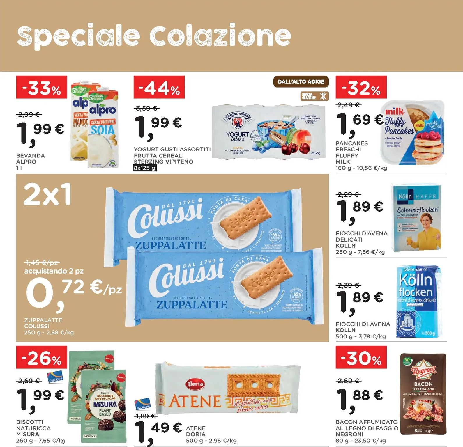 La scelta di prodotti tipici continua con sconti significativi su salumi e formaggi. Il prosciutto Praga Recla e il lardo Adamello Val Rendena sono proposti a prezzi vantaggiosi. Non mancano le offerte sui latticini, come la Tosella fresca del Gruppo Formaggi del Trentino con il 25% di sconto e il burro di montagna Sciaves ridotto del 30%. Ogni nuovo acquisto diventa un’occasione per assaporare la qualità artigianale a un costo conveniente.
