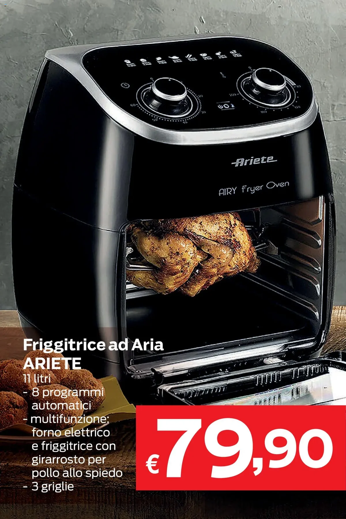 Il Volantino Prix dal 27.03.2026 pensa anche alla tua dispensa con l'Olio Extra Vergine di Oliva BERTOLLI Classico da 750 ml a €3,99, scontato del 27%, un must per ogni ricetta. Per i tuoi brindisi pasquali, lo Spumante Blanc de Blancs IL FEUDO Extra Dry da 750 ml è disponibile a soli €1,99. Non mancano le offerte per la dispensa, come il Tonno MARUZZELLA all'Olio di Oliva in confezione da 6 x 70g a €3,99. E per chi ama la tecnologia in cucina, la Friggitrice ad Aria ARIETE è proposta a €79,90. Anche la frutta e verdura fresca è protagonista, con i Limoni di Siracusa IGP da 500g a €0,99 con uno sconto del 33%.
