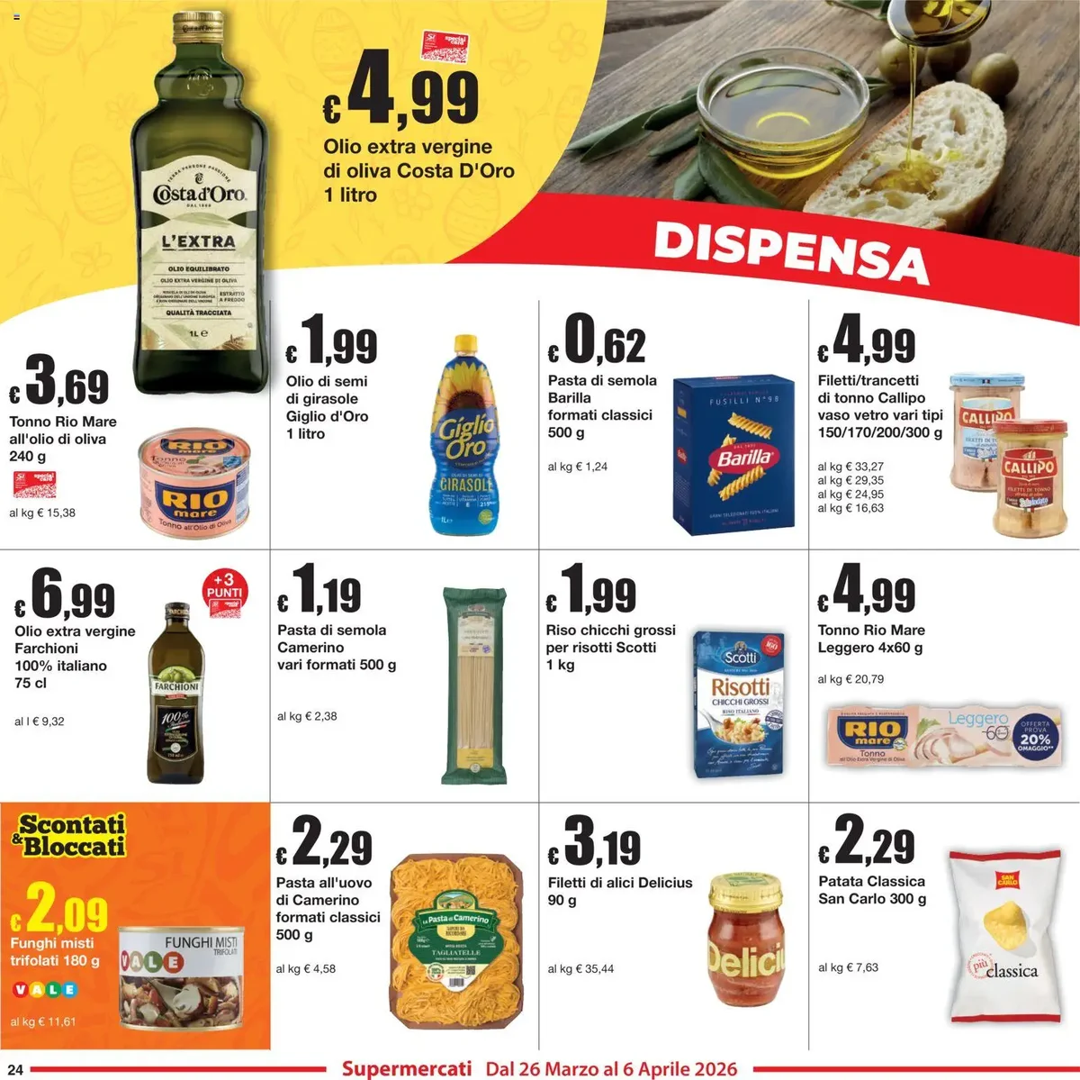 Per arricchire il tuo menù pasquale, il Volantino Si Con Te dal 26.03.2026 propone anche la classica Colomba Bauli Classica/Verona 1 kg a un prezzo incredibile di € 3,99, simbolo della tradizione. Gli amanti dei sapori autentici non potranno resistere al Parmigiano Reggiano DOP 24 mesi a € 1,59, un vero jolly in cucina. Per la spesa di tutti i giorni, troverai la Mela Val di Non DOP Golden Delicious Melinda 2,3 kg a € 1,59 e il saporito Pomodoro di Pachino IGP 500 g a € 2,29. Non dimenticare le Patate saporite al forno e vapore Antonio Ruggiero 1,5 kg a € 1,49, perfette per contorni veloci e gustosi.