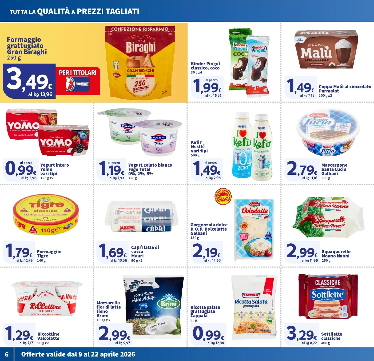 La convenienza continua con l’offerta “Ogni Giorno” sul Brie a 1,19€ l’etto e con altre specialità come l’Erborinato di capra. Per una visione completa di tutte le catalogo e offerte, il Sigma Volantino è lo strumento ideale da consultare. Utilizzare il Sigma Volantino dal 09/04/2026 vi aiuterà a pianificare gli acquisti e a massimizzare il risparmio, trasformando la spesa in un’opportunità di convenienza.
