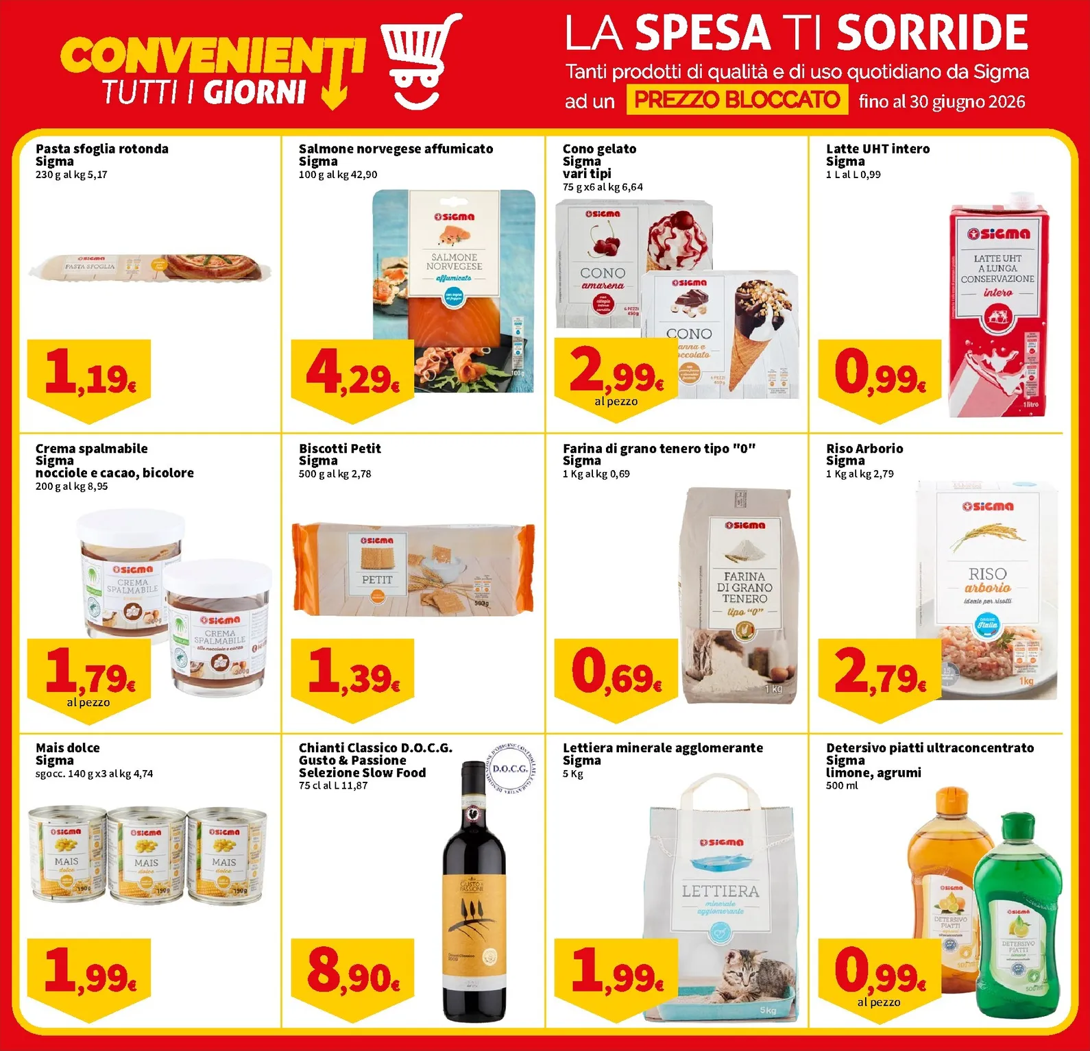 Le nuovo offerte continuano con formaggi pregiati come il Gruyere A.O.P. e il Provolone dolce Soresina. Queste offerte rappresentano l’occasione giusta per arricchire la tavola. Per non perdere nessuna opportunità, ricordate di visionare il Sigma Volantino dal 09/04/2026 prima della spesa. Tutte le migliori e nuove nuovo offerte si trovano nel Sigma Volantino, la guida completa al risparmio.